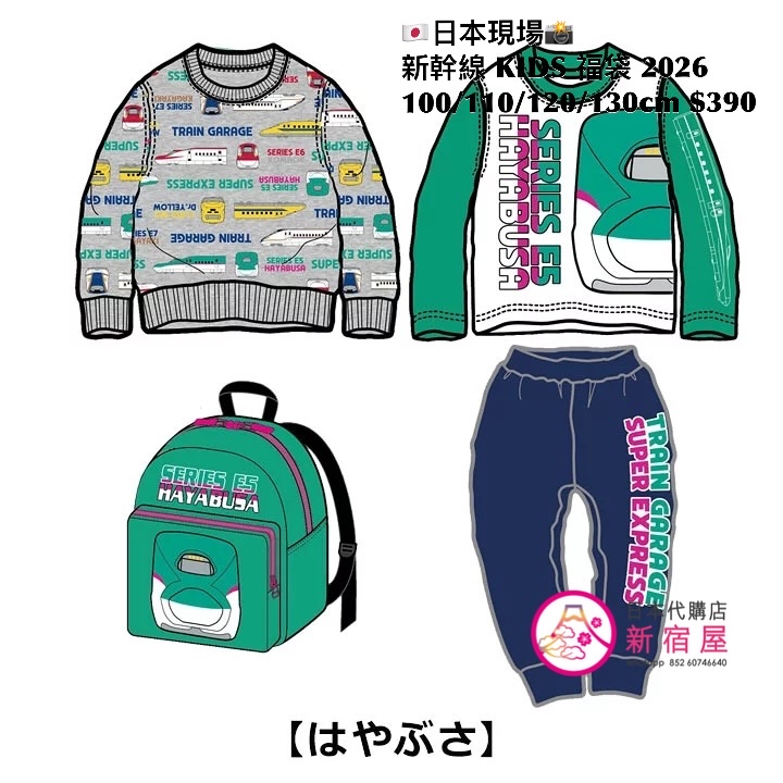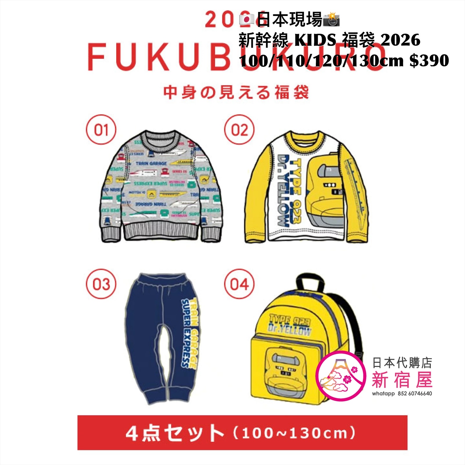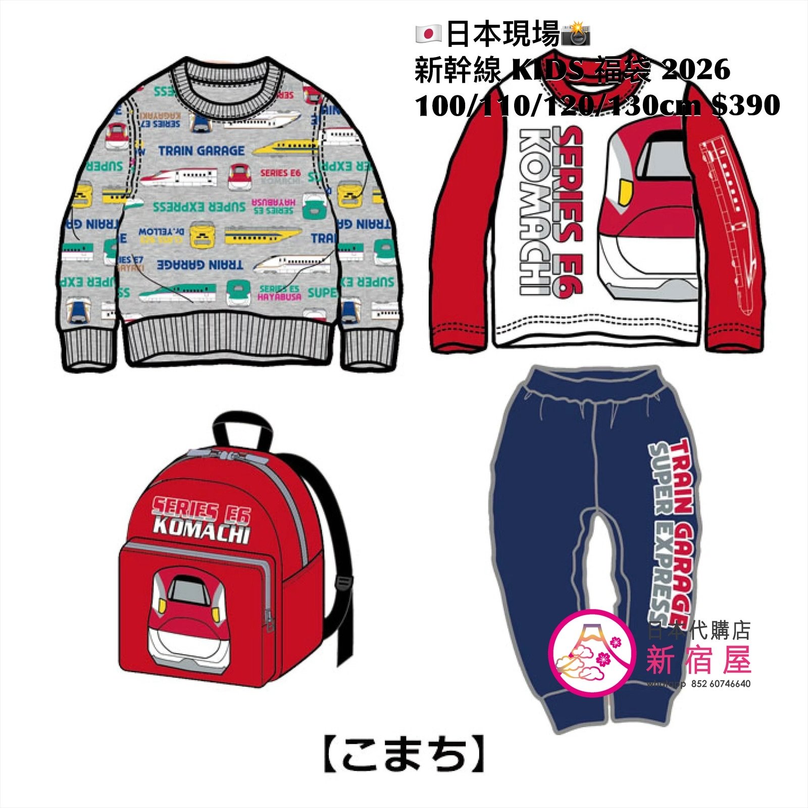 新幹線 KIDS 福袋 2026 100/110/120/130cm,RED/ BLUE/ GREEN/ YELLOW/ PURPLE,$390