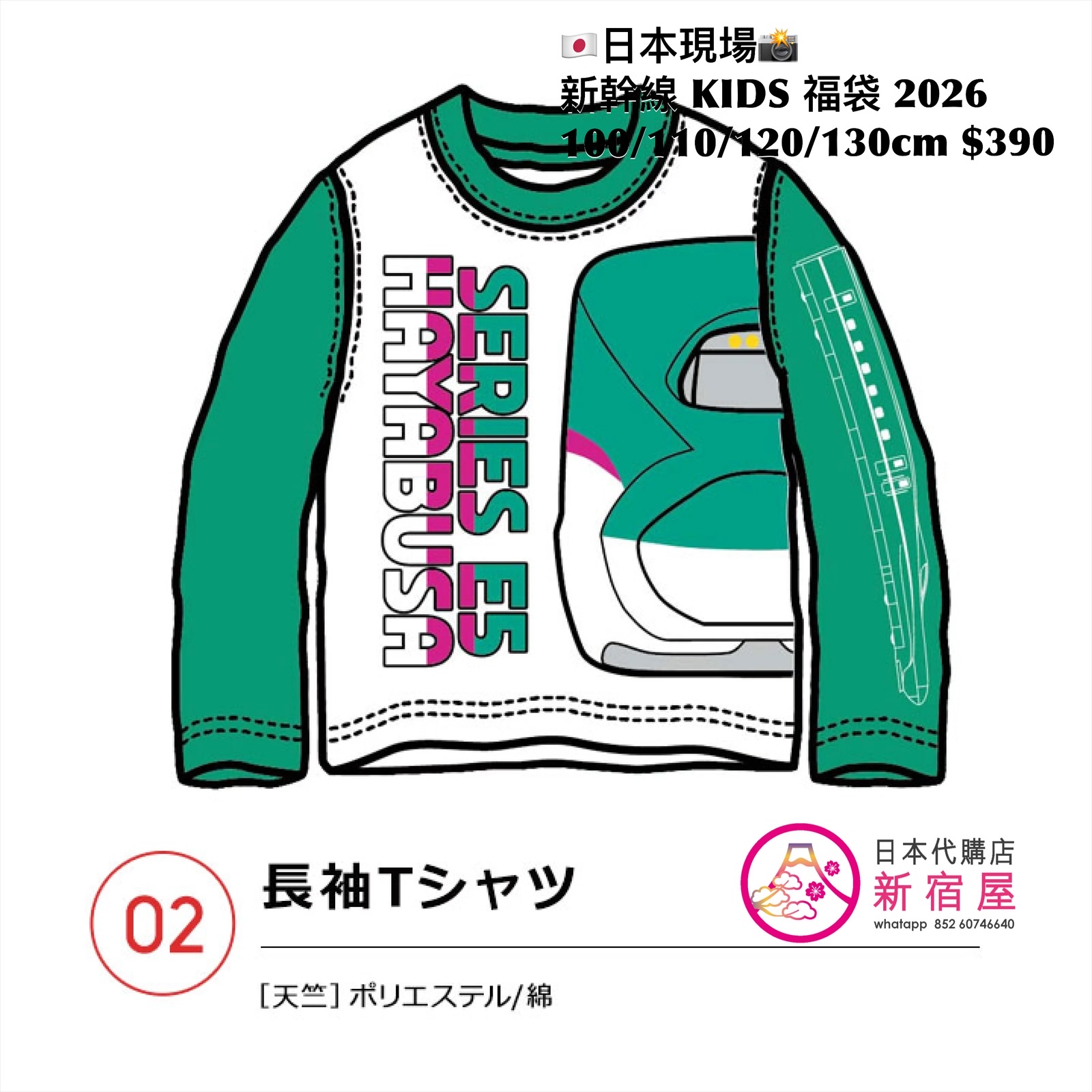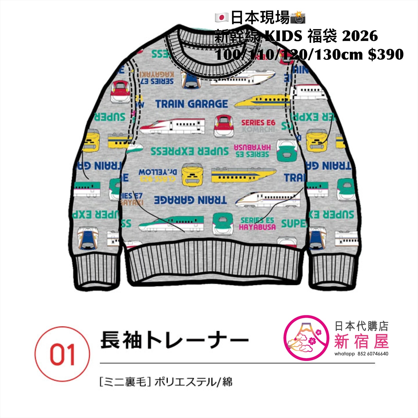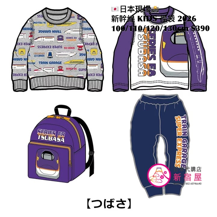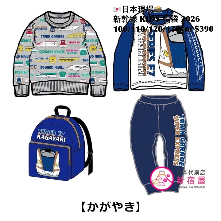 新幹線 KIDS 福袋 2026 100/110/120/130cm,RED/ BLUE/ GREEN/ YELLOW/ PURPLE,$390