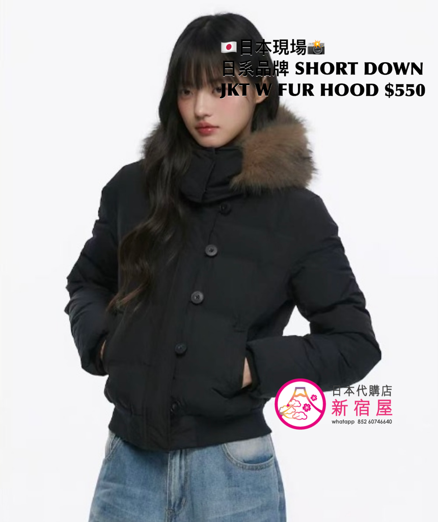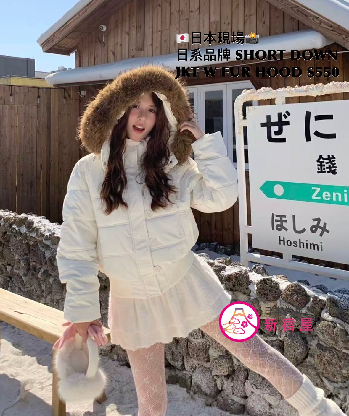 日系品牌 SHORT DOWN JACKET WITH FUR HOOD