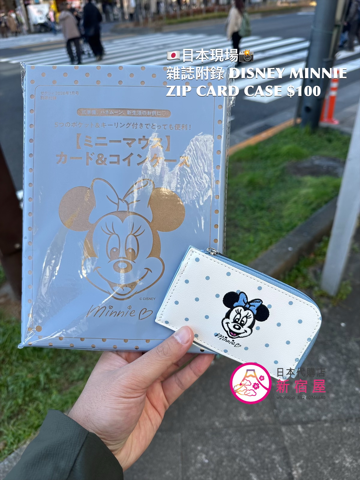 雜誌附錄 DISNEY MINNIE ZIP CARD CASE 13.5x1x8cm,日本地域限定,$100