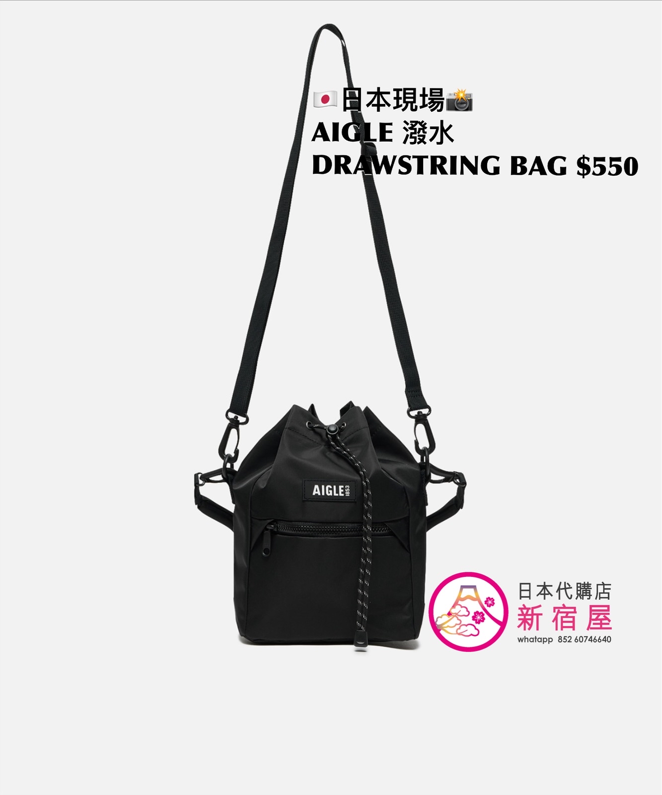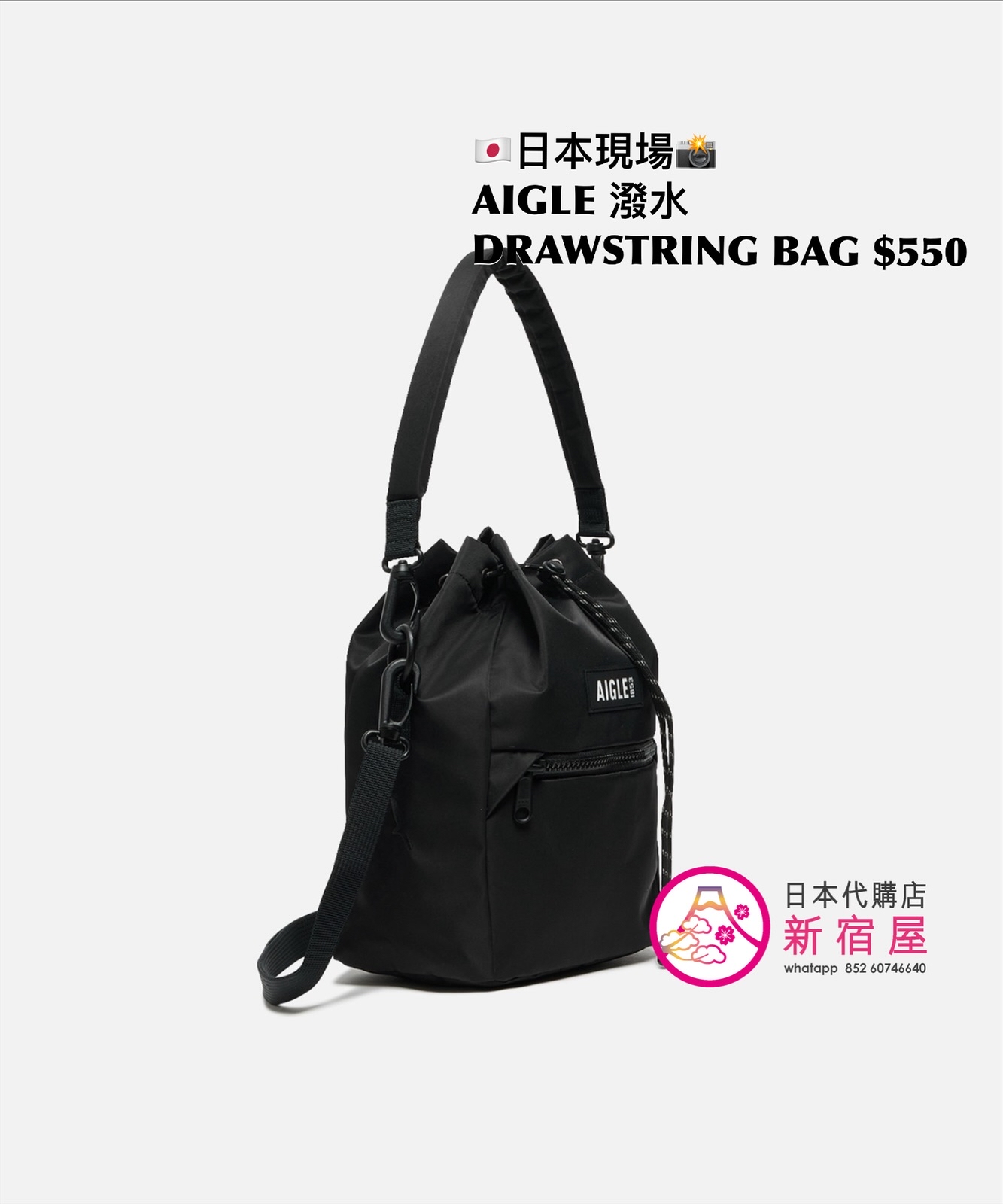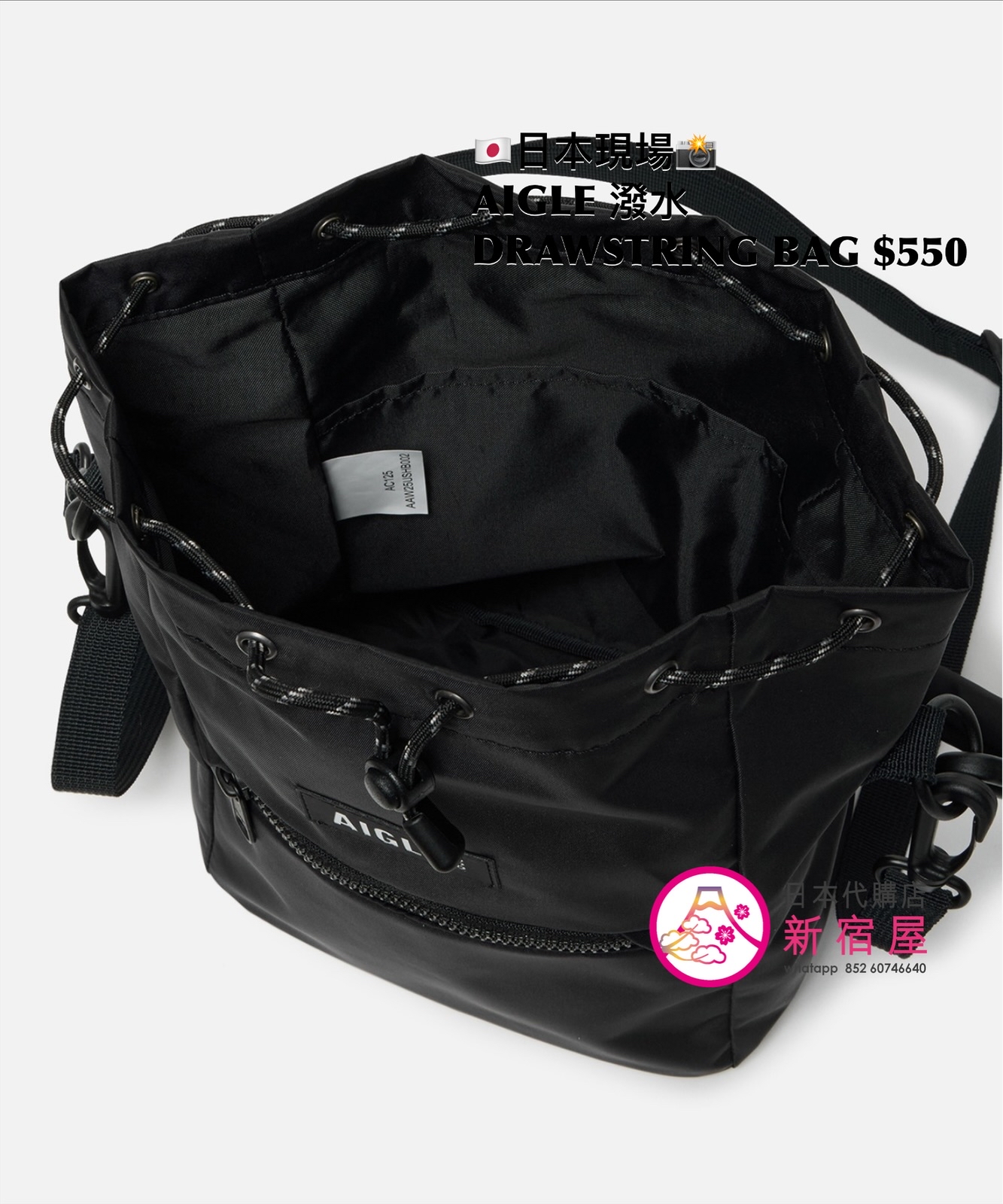 AIGLE 潑水 DRAWSTRING BAG 18x12x25.5cm,BLACK/ KHAKI,$550