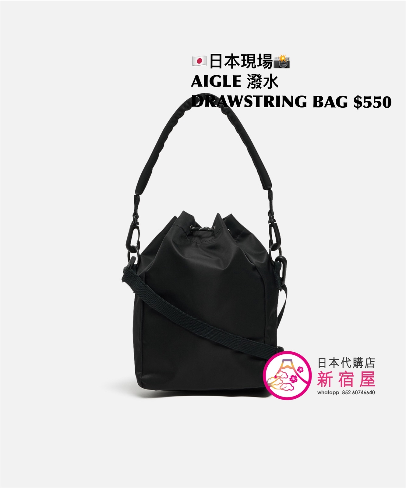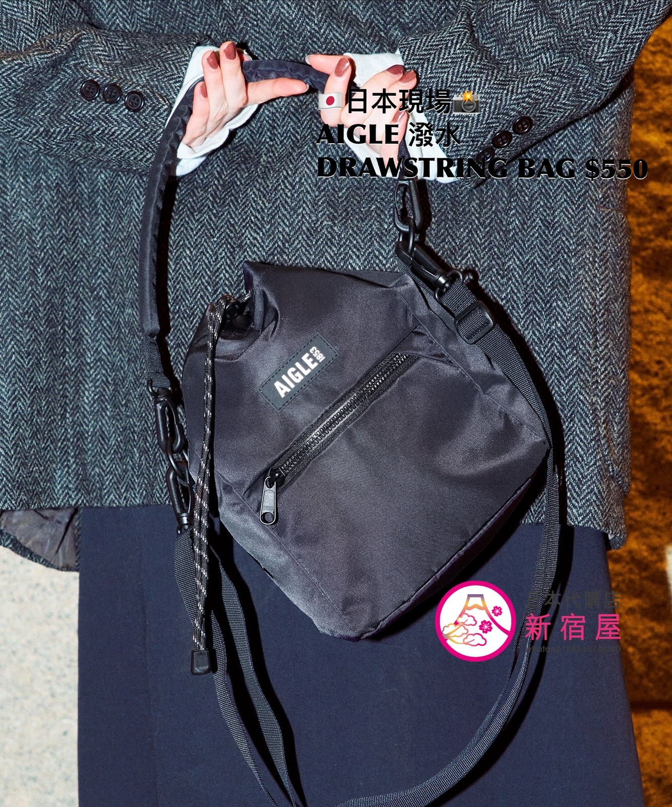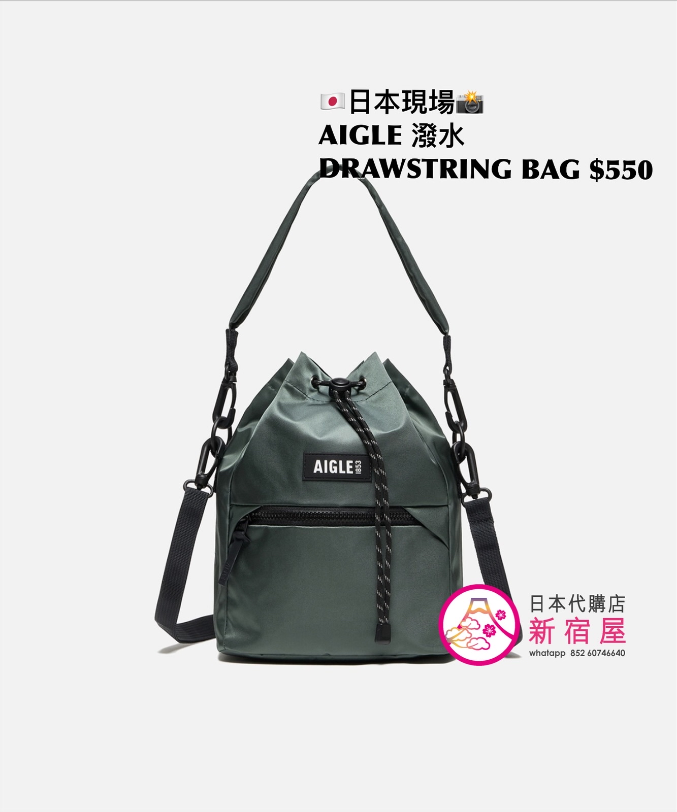 AIGLE 潑水 DRAWSTRING BAG 18x12x25.5cm,BLACK/ KHAKI,$550