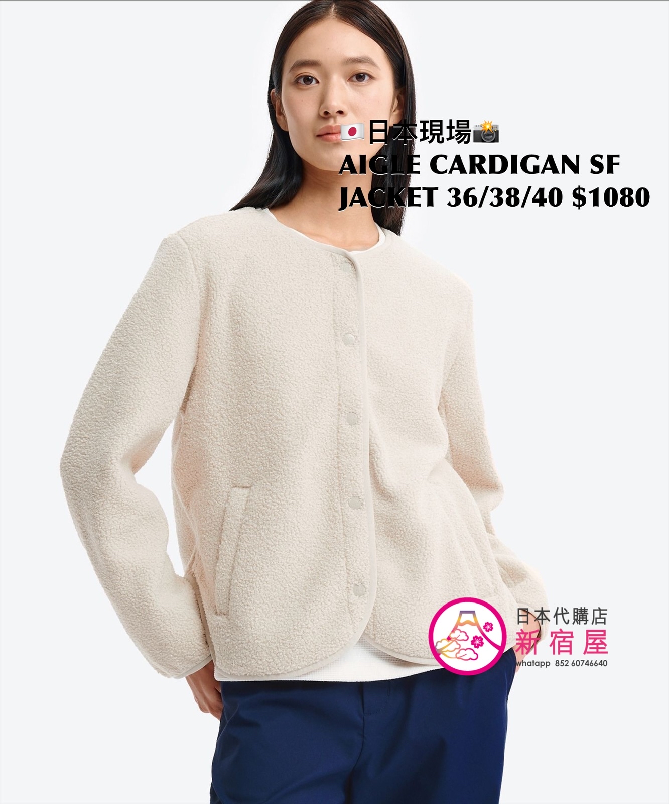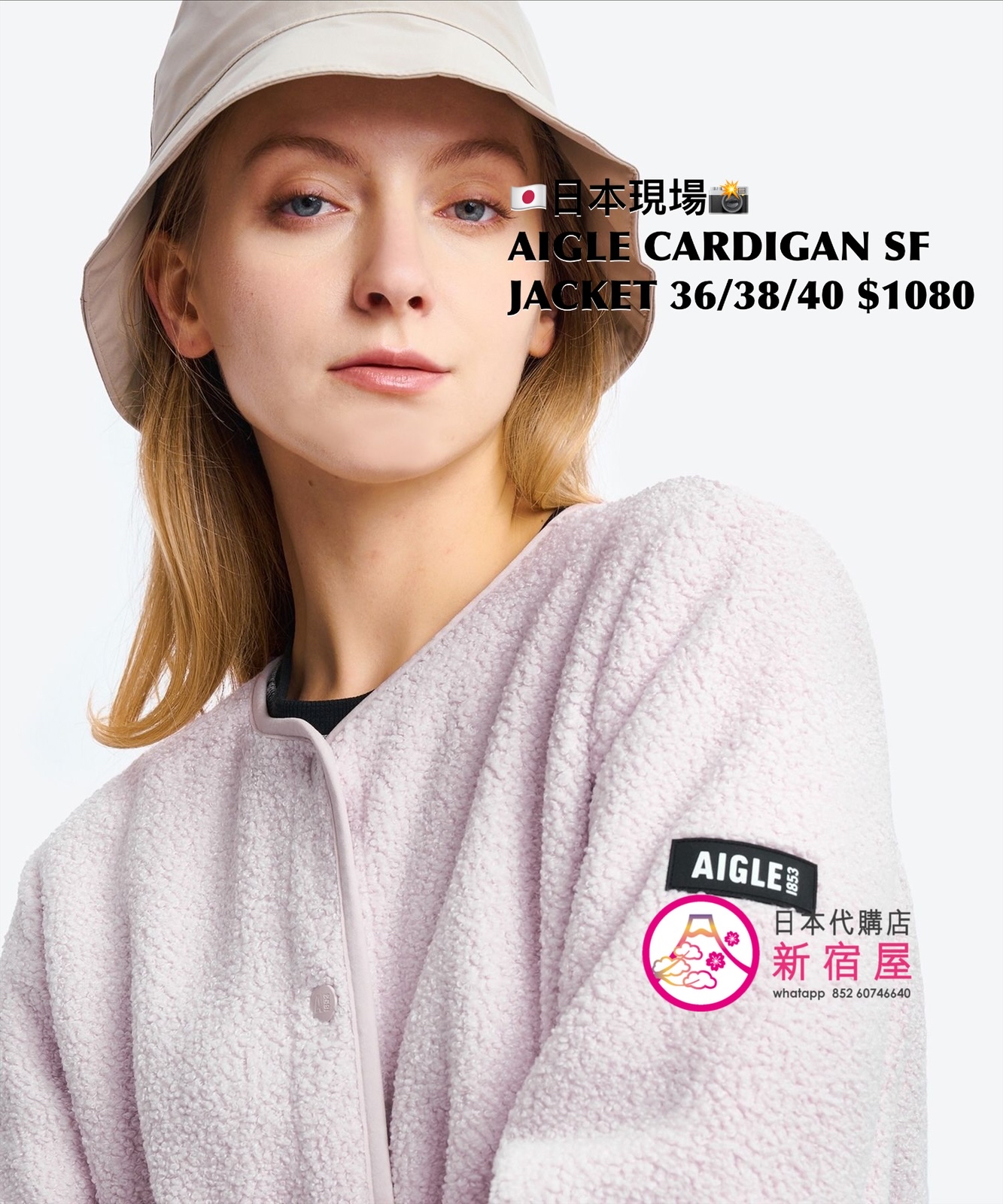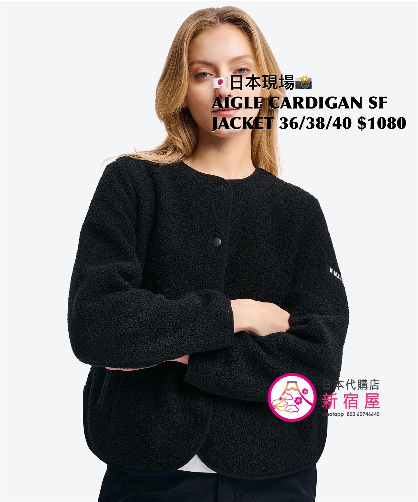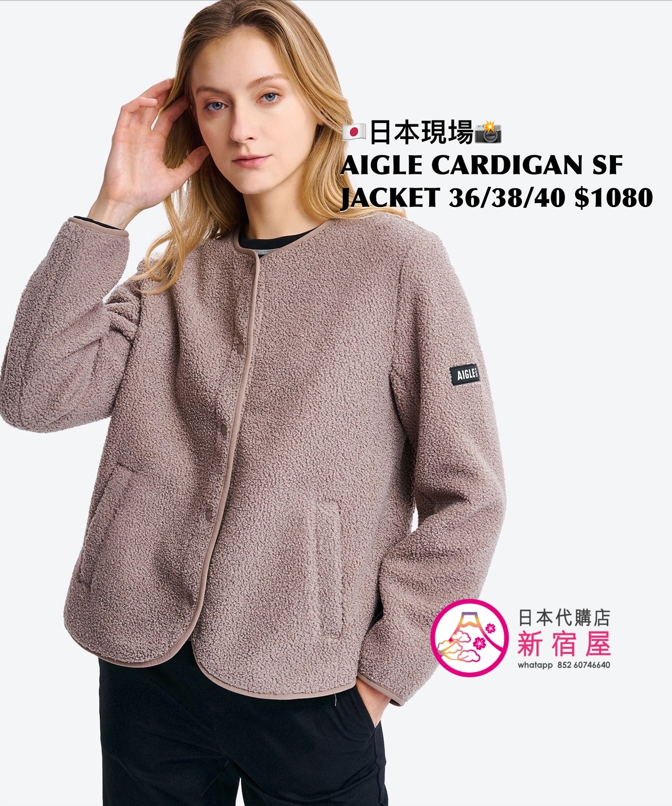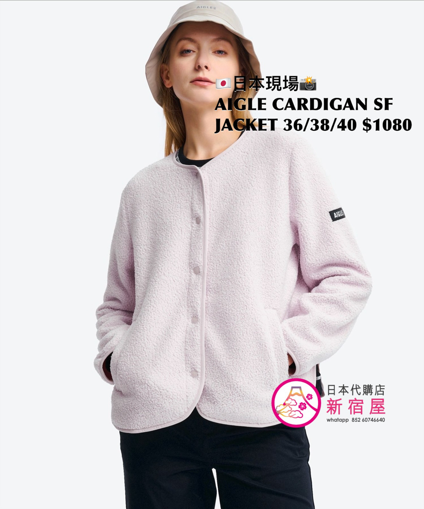 AIGLE CARDIGAN SHERPA FLEECE JACKET SIZE 36/38/40,BLACK/ LIGHT PINK/ GRAY/ LIGHT GRAY,$1080 👚參考尺寸 SIZE 36: 身幅 51 著丈 56.5cm SIZE 38: 身幅 53.5 總丈 60cm SIZE 40: 身幅 58 總丈 60cm