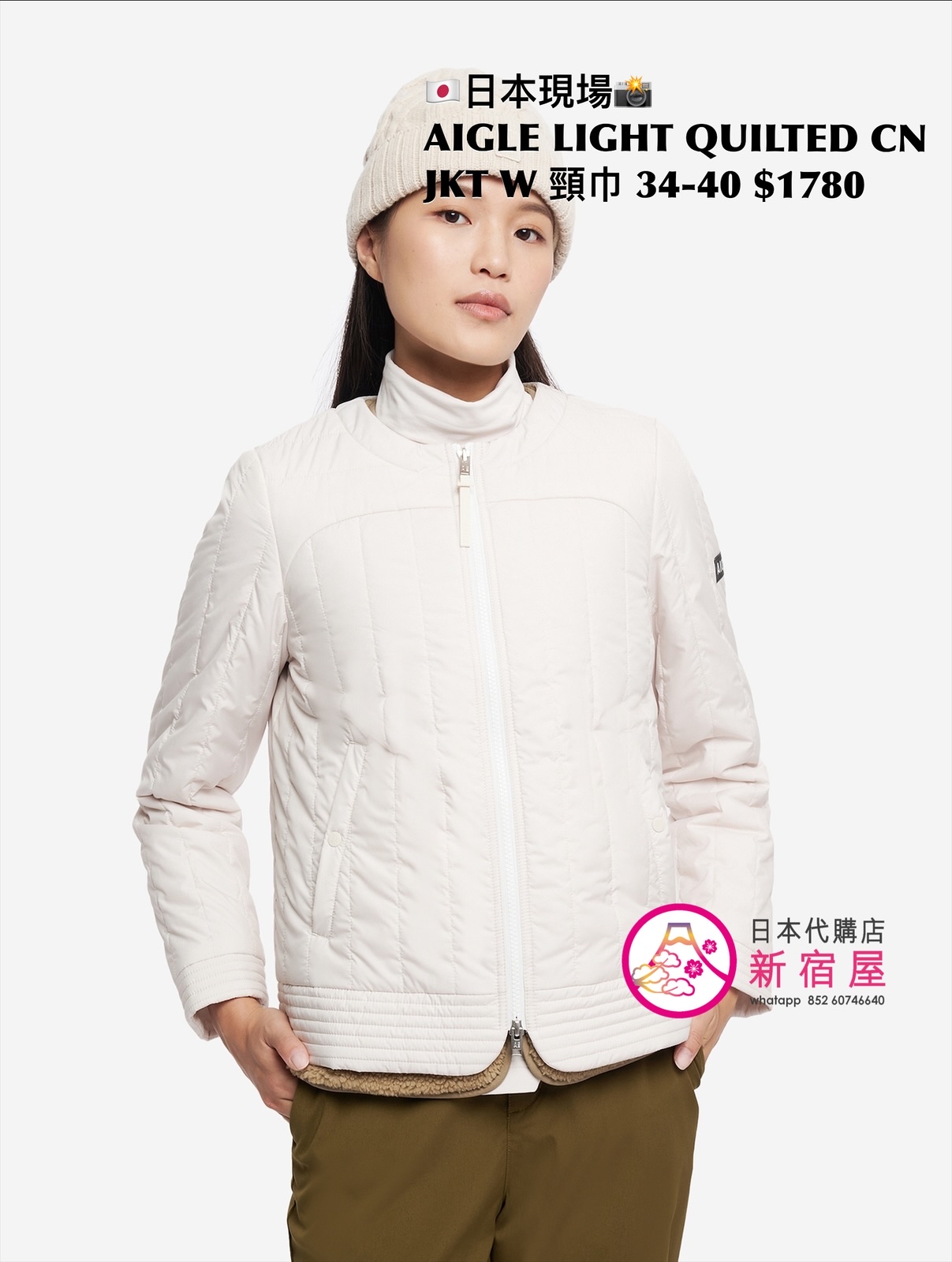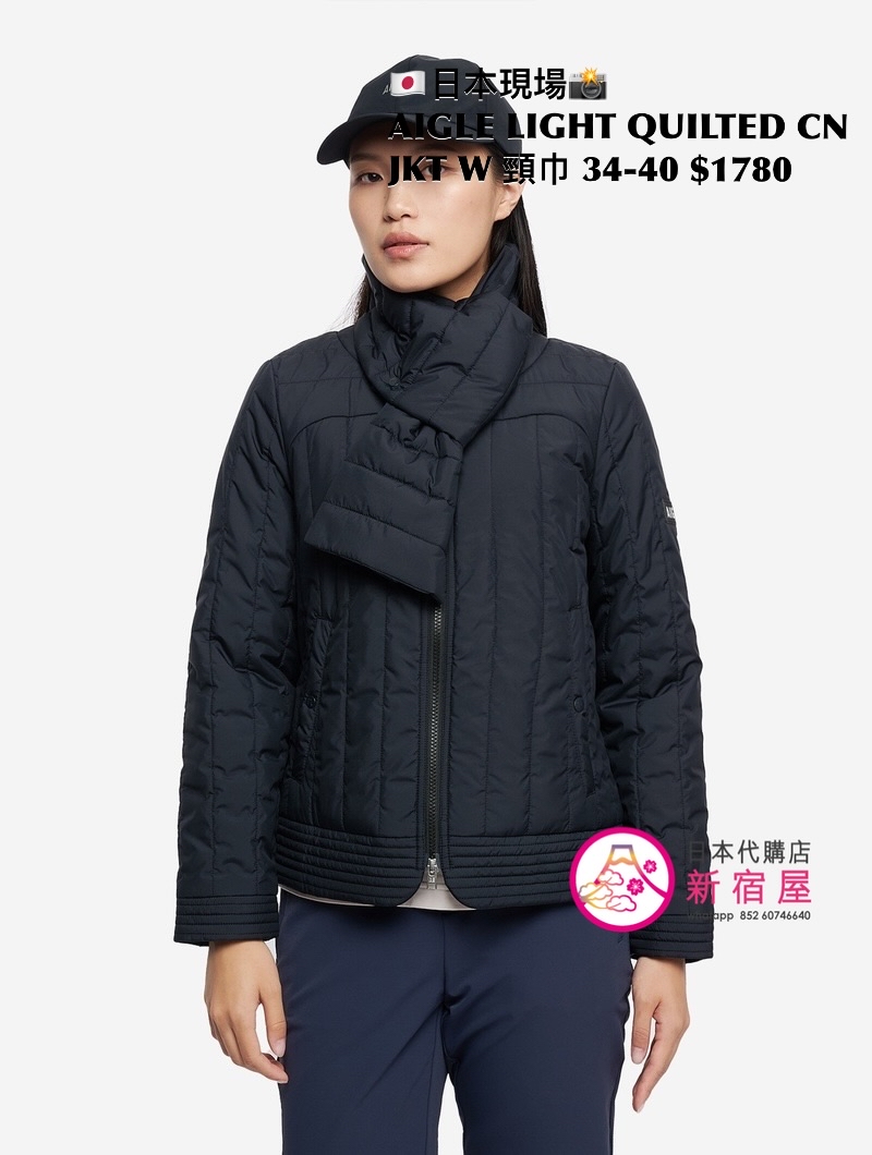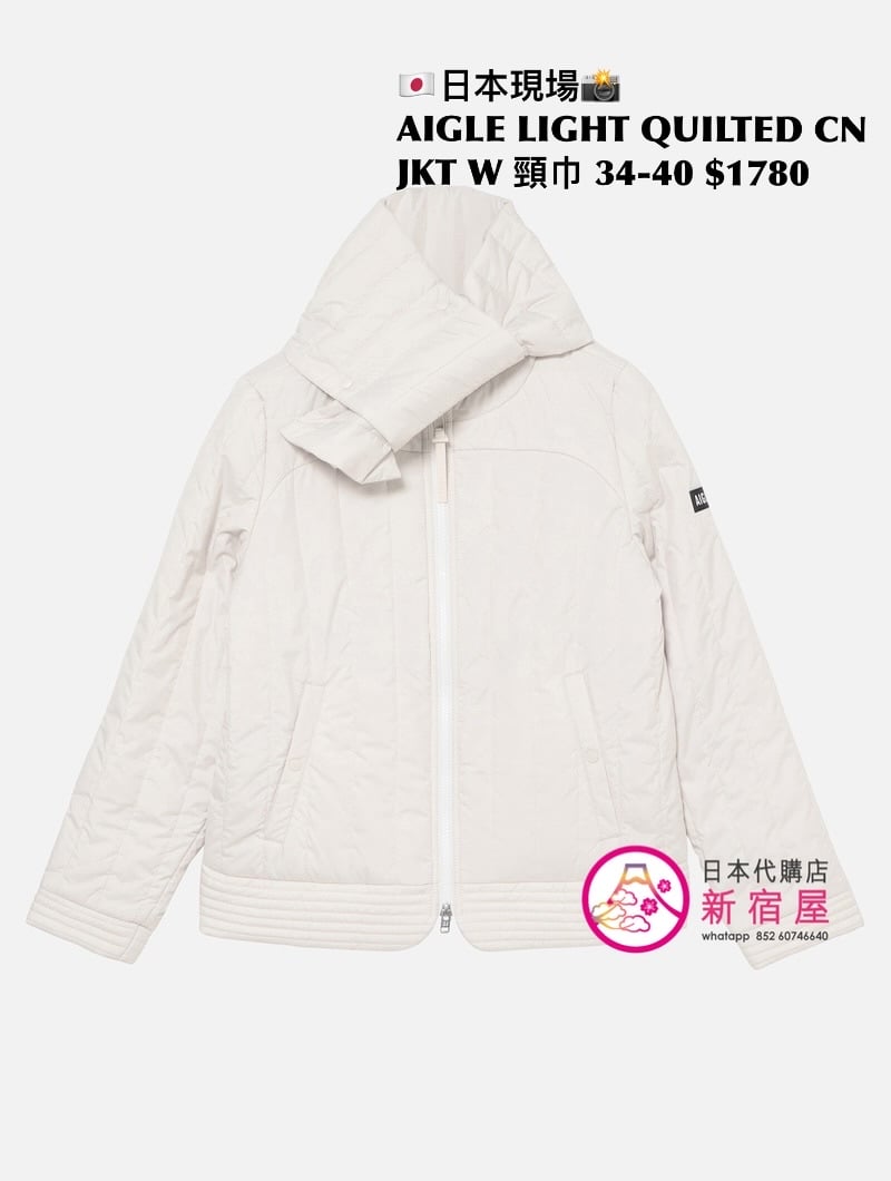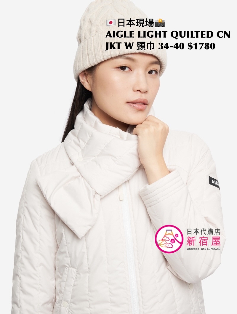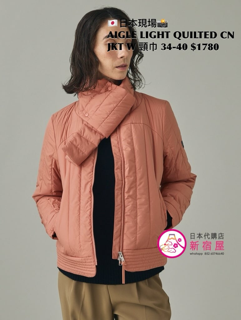 AIGLE LIGHT QUILTED CREW NECK DOWN JACKET WITH SCARF 撥水 SIZE 34/36/38/40,BLACK/ WHITE/ CORAL PINK,$1780 👚參考尺寸 SIZE XS: 身幅 48 著丈 58cm SIZE S: 身幅 51 著丈 60cm SIZE M: 身幅 54 著丈 62cm SIZE L: 身幅 57 著丈 64cm