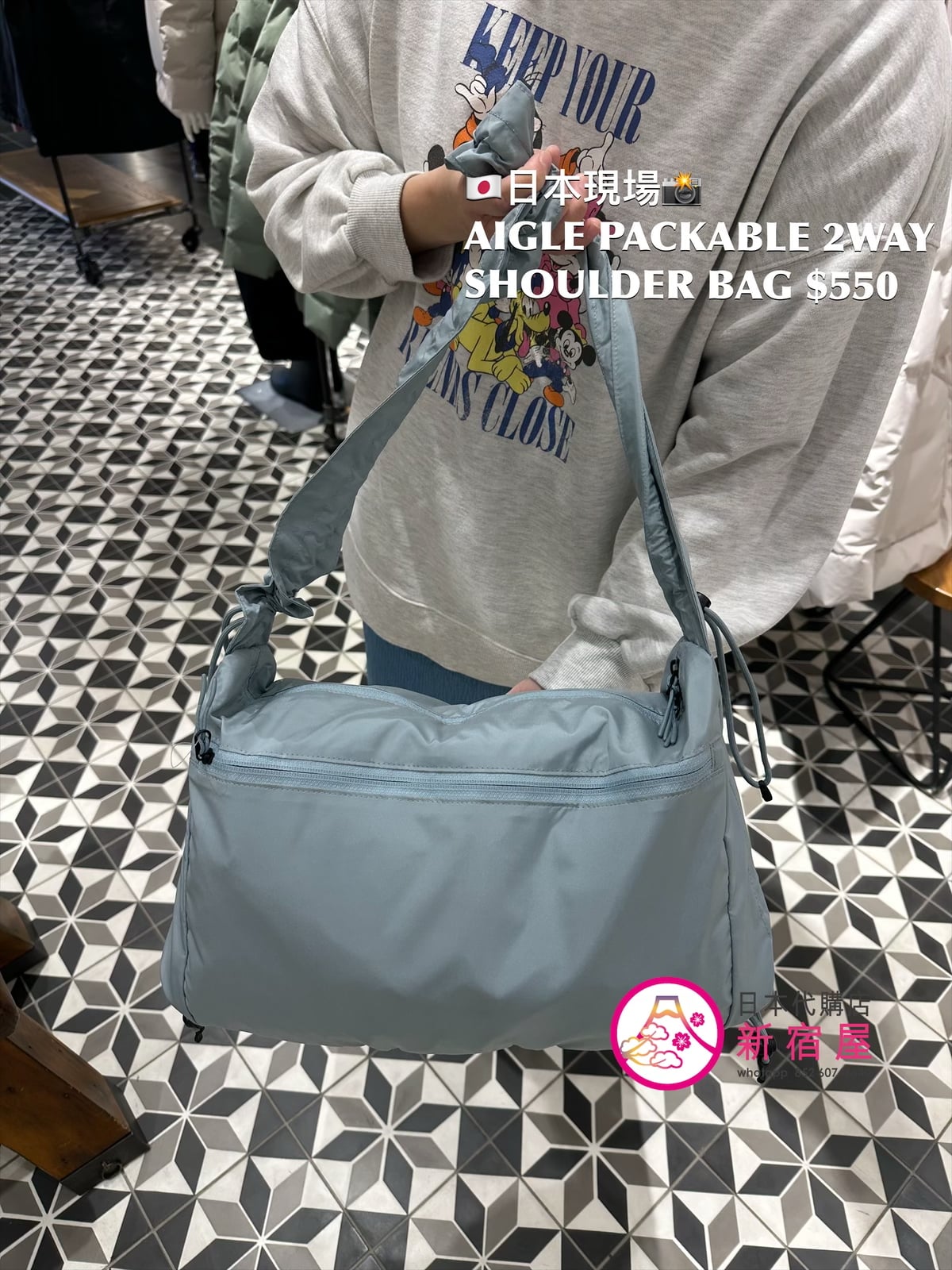 AIGLE PACKABLE 2WAY SHOULDER BAG 34x14x26cm,BLACK/ MISTY BLUE/ LIGHT GRAY,$550