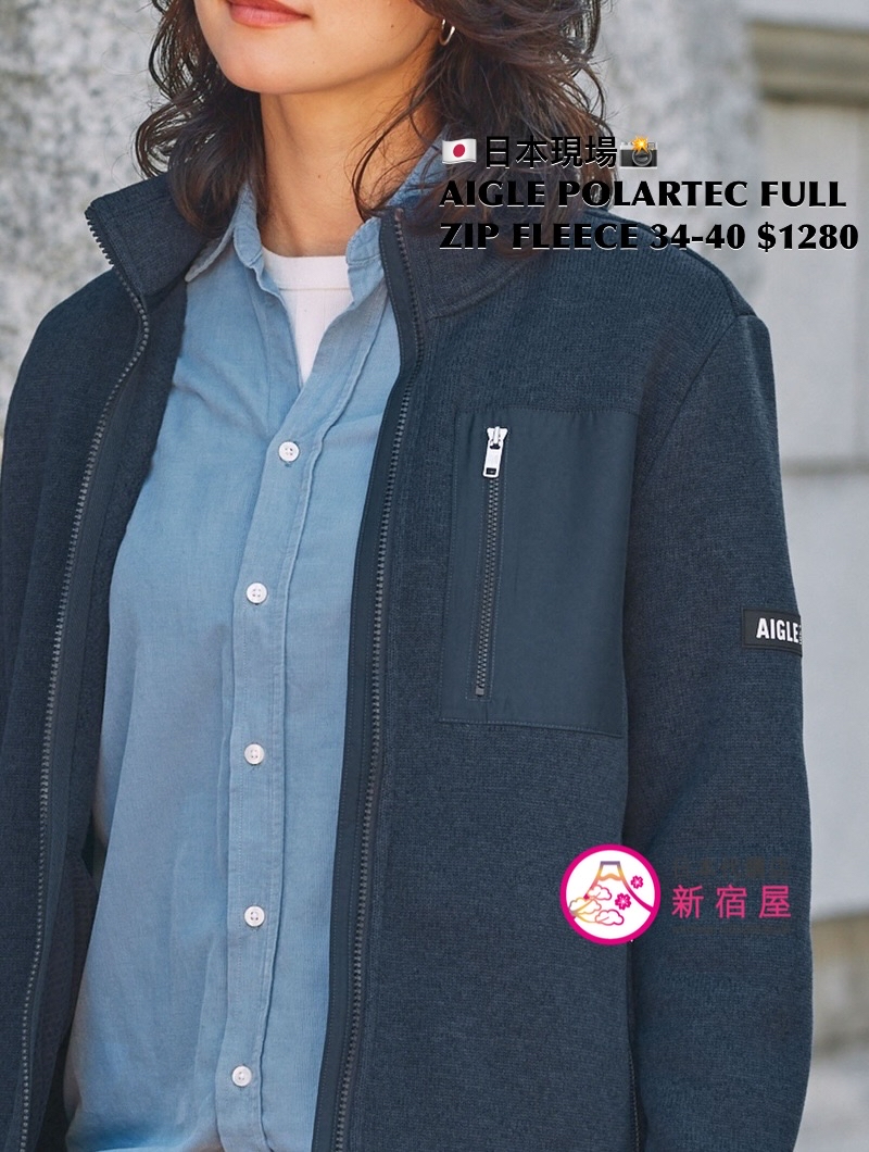AIGLE POLARTEC FULL ZIP FLEECE SIZE 34/36/38/40,NAVY/ BEIGE,$1280 👚參考尺寸 SIZE 34: 身幅 45 著丈 57cm SIZE 36: 身幅 48 著丈 59cm SIZE 38: 身幅 51 著丈 59cm SIZE 40: 身幅 54 著丈 61cm