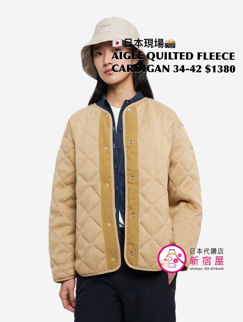 AIGLE QUILTED FLEECE CARDIGAN SIZE 34-42,BEIGE/ NAVY,$1380 👚參考尺寸 SIZE 34: 身幅 51 著丈 61cm SIZE 36: 身幅 54 著丈 63cm SIZE 38: 身幅 57 著丈 65cm SIZE 40: 身幅 60 著丈 67cm SIZE 42: 身幅 63 著丈 69cm