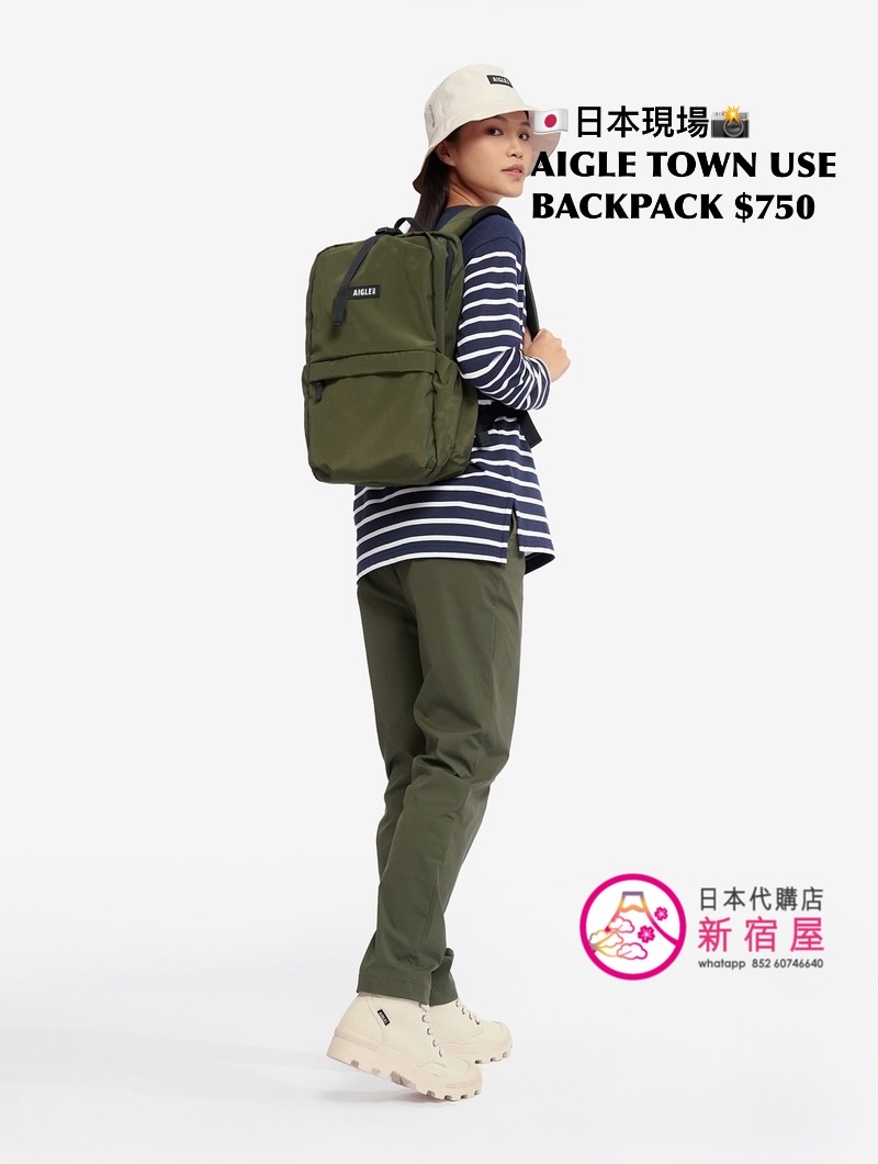 AIGLE TOWN USE BACKPACK 25x12x42cm,KHAKI,$750