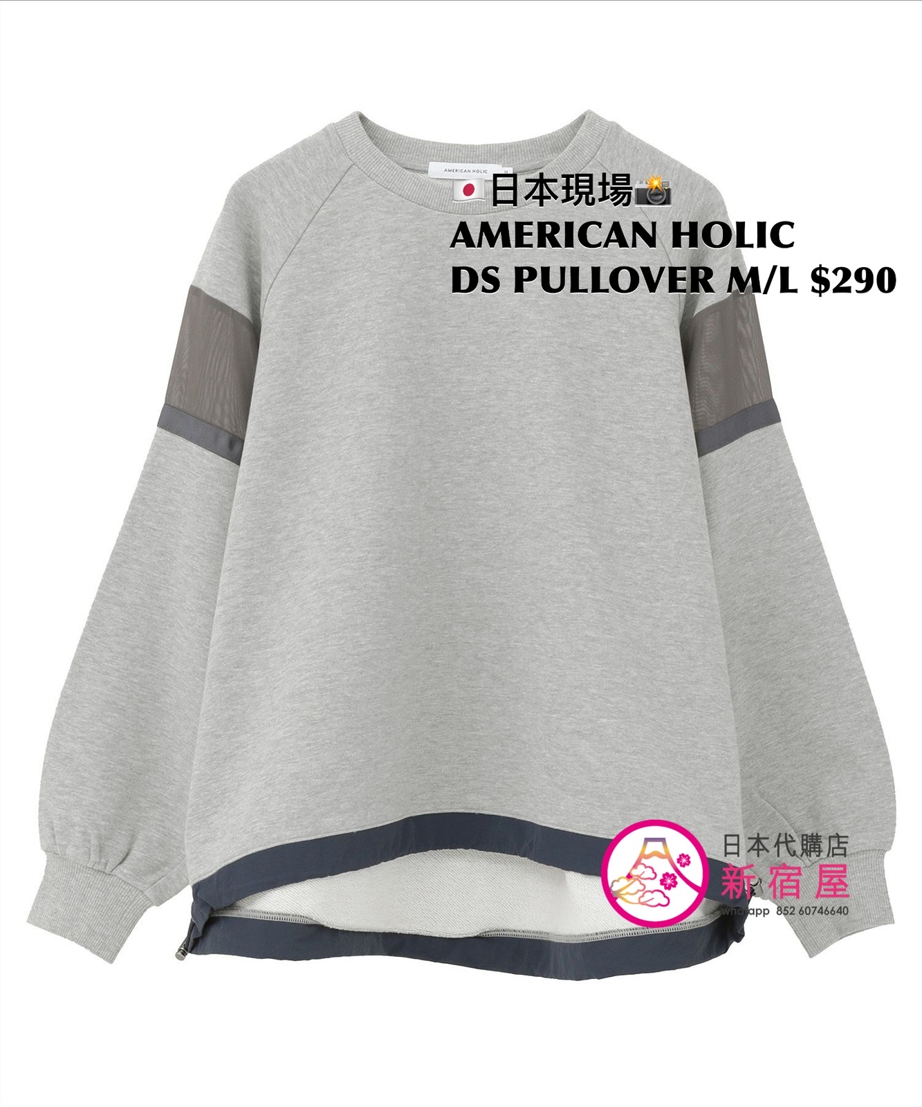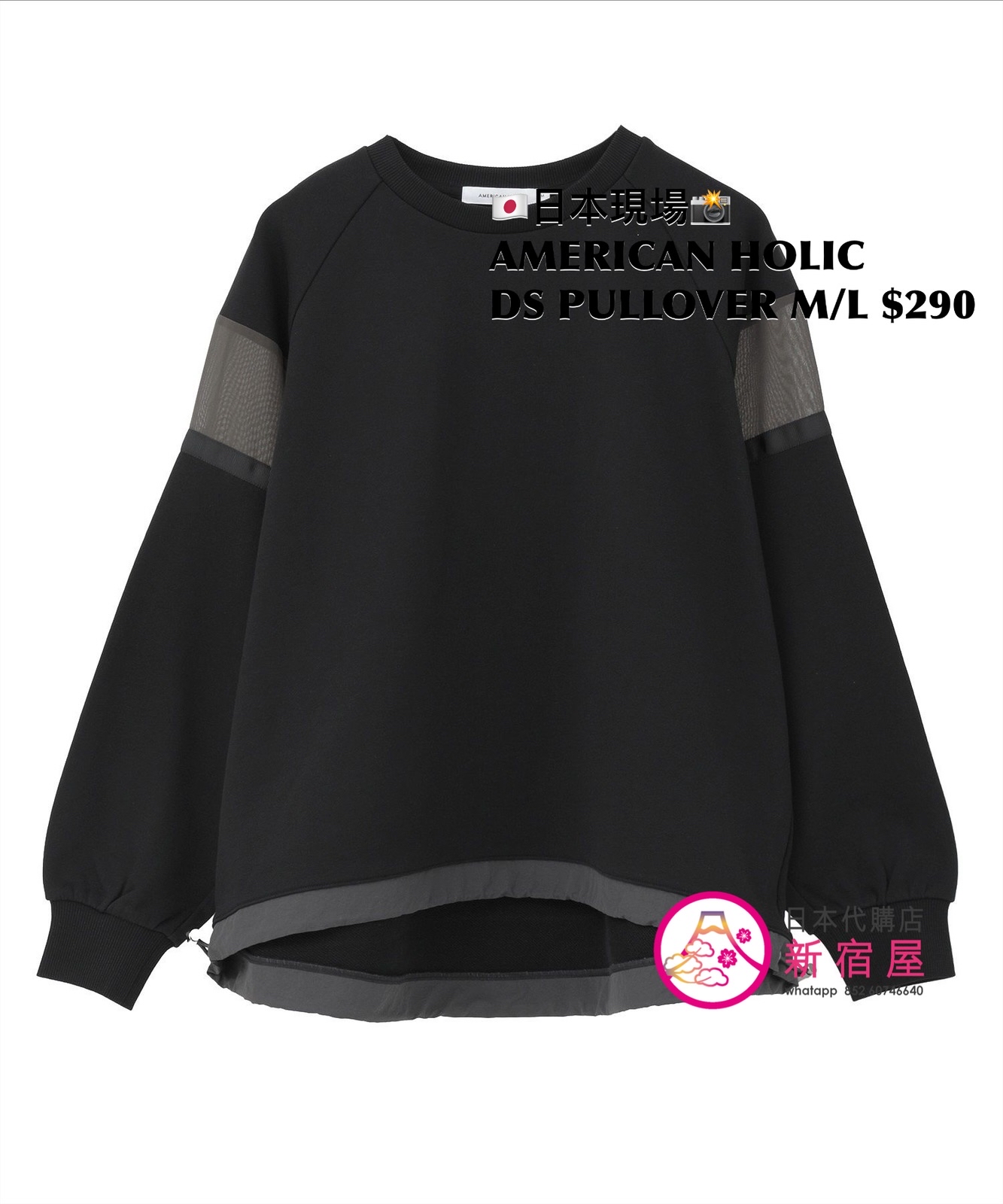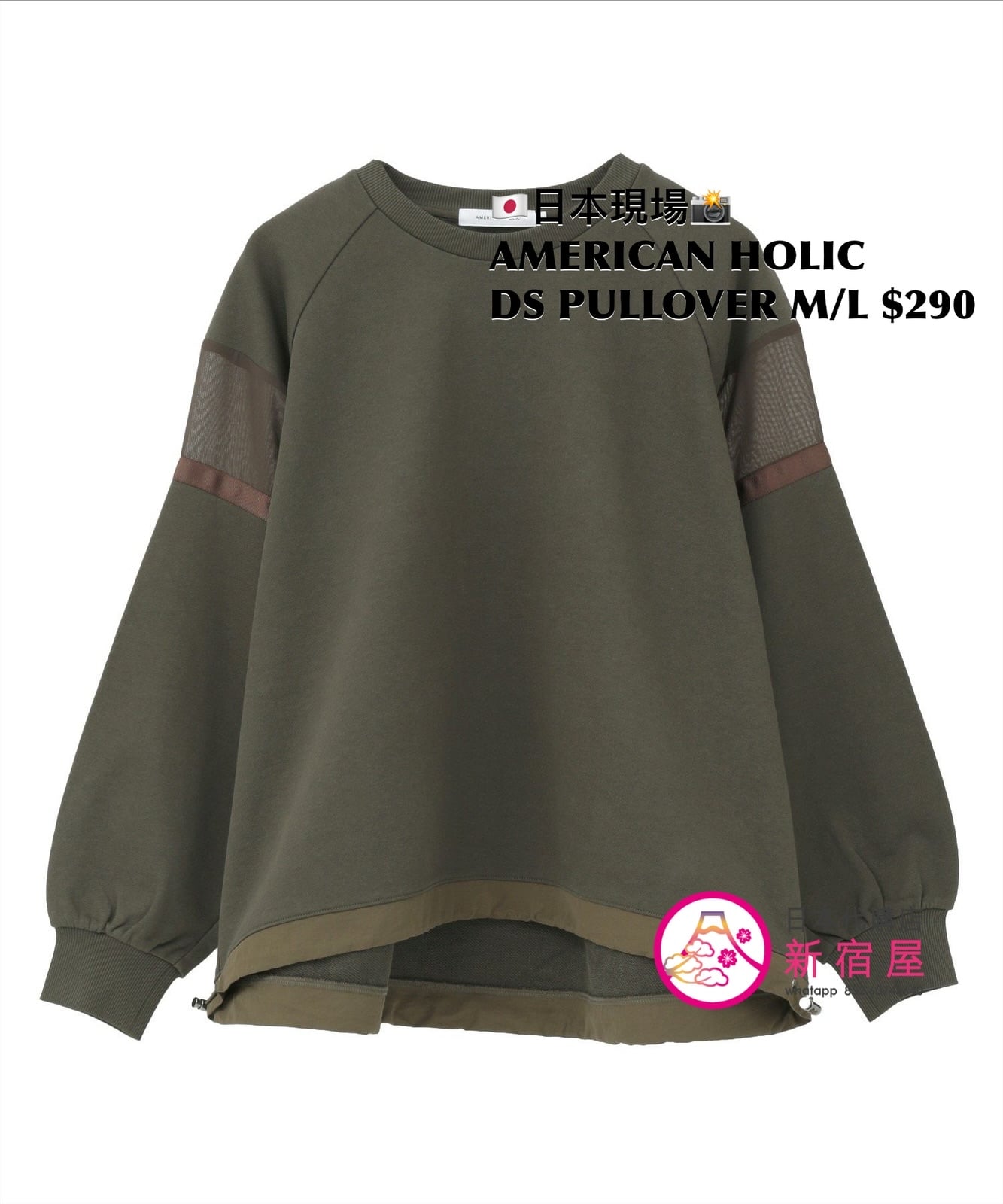 AMERICAN HOLIC DRAWSTRING PULLOVER SIZE M/L,BLACK/ HEATHER GRAY/ KHAKI,$290 👚參考尺寸 SIZE M: 身幅 74 總丈 66.5cm SIZE L: 身幅 76.5 總丈 70cm