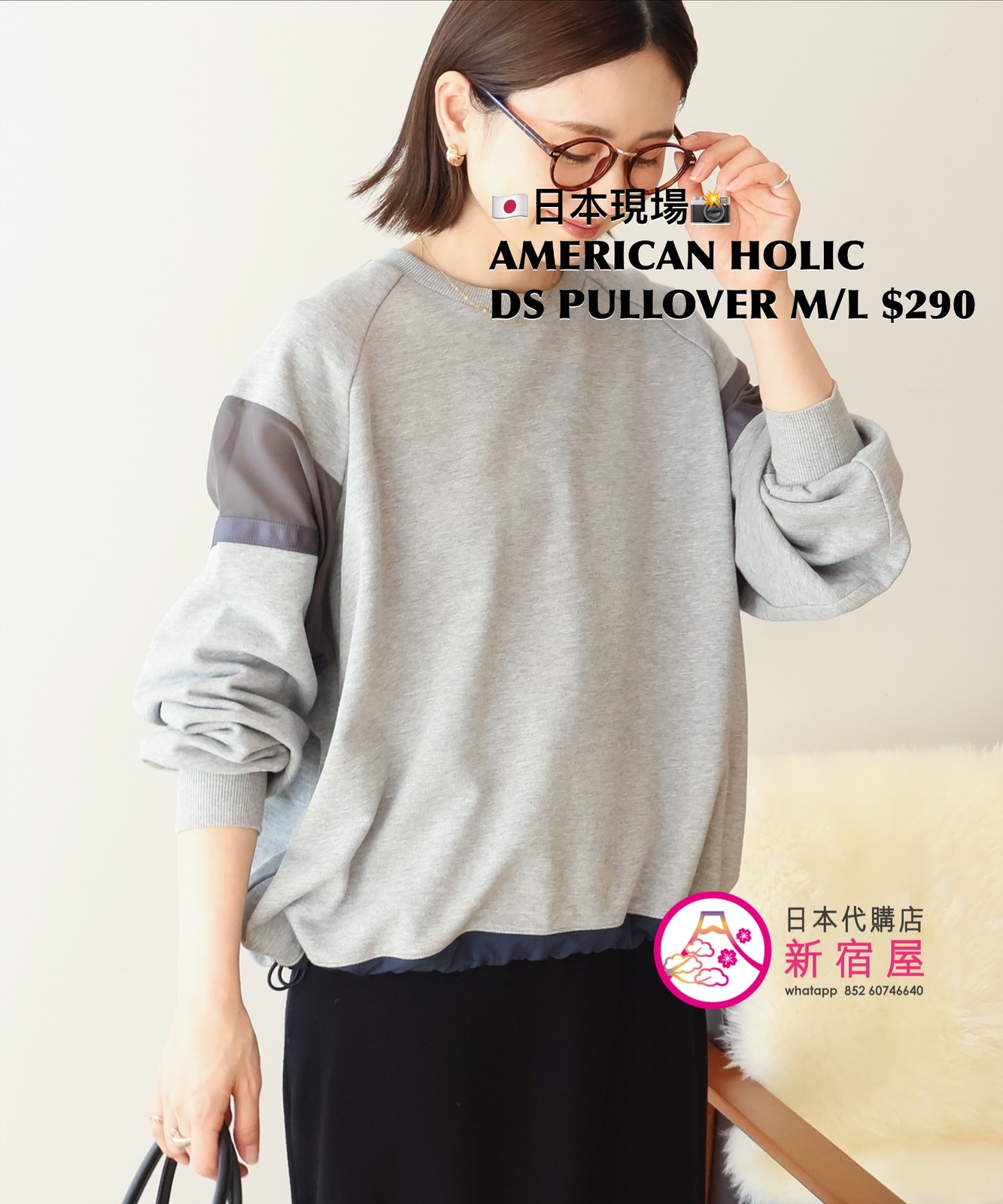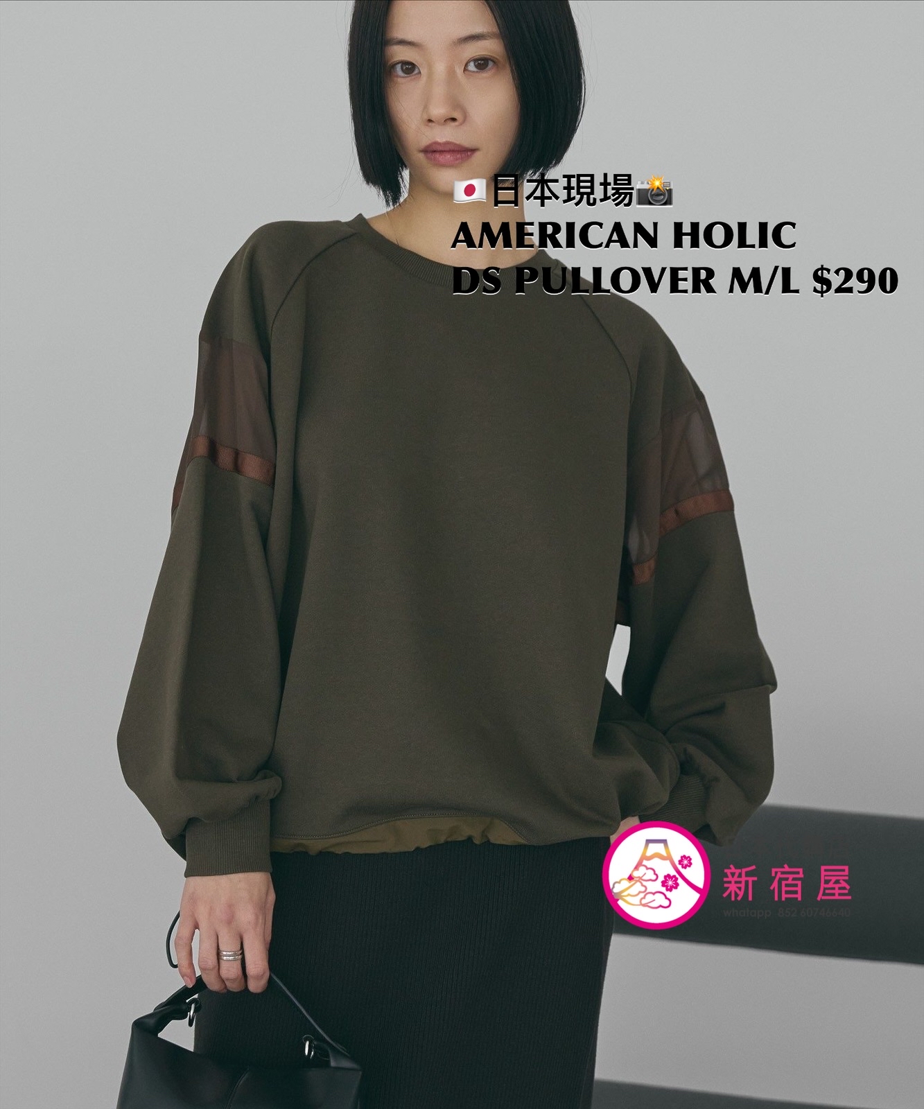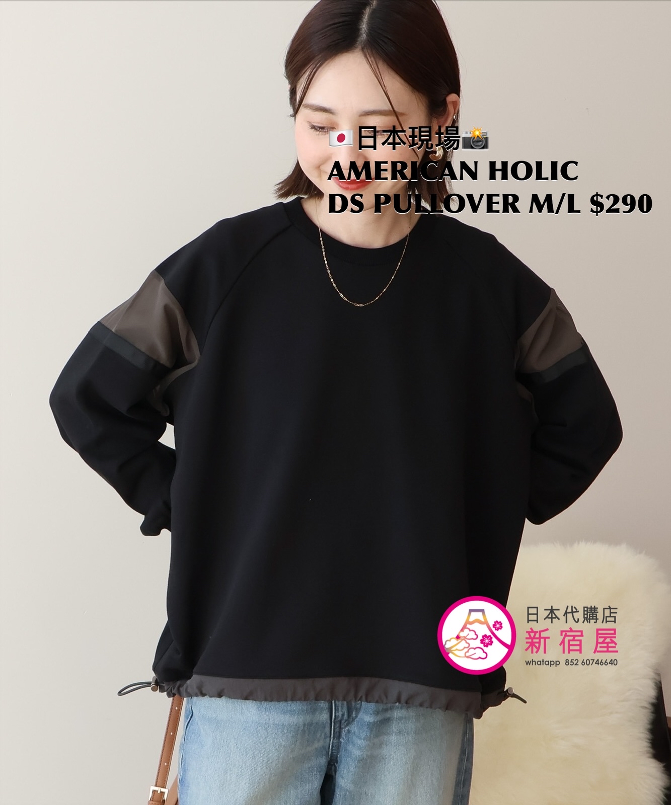 AMERICAN HOLIC DRAWSTRING PULLOVER SIZE M/L,BLACK/ HEATHER GRAY/ KHAKI,$290 👚參考尺寸 SIZE M: 身幅 74 總丈 66.5cm SIZE L: 身幅 76.5 總丈 70cm