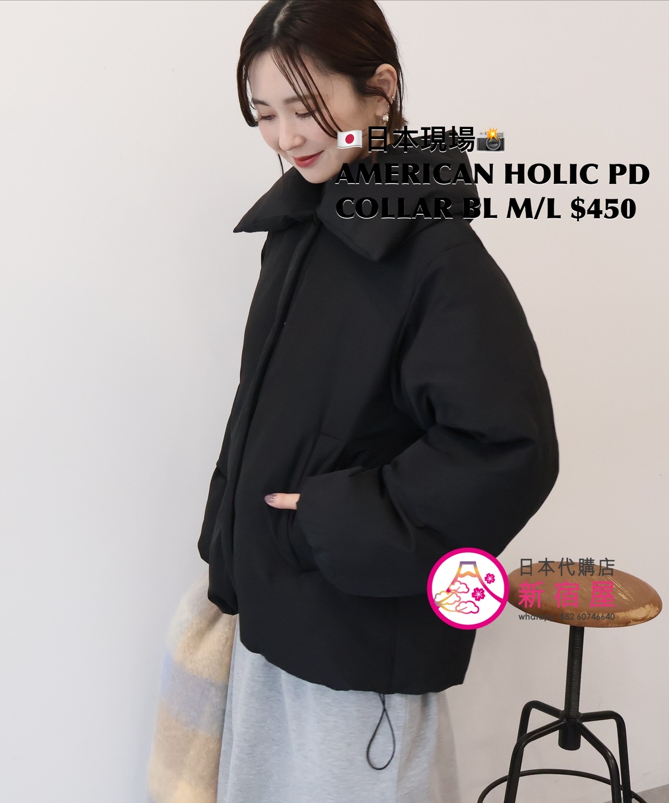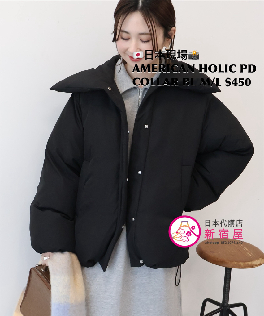 AMERICAN HOLIC PADDED COLLAR BLOUSON SIZE M/L,BLACK/ LIGHT BEIGE,$450 👚參考尺寸 SIZE M: 身幅 120 總丈 68cm SIZE L: 身幅 126 總丈 70cm