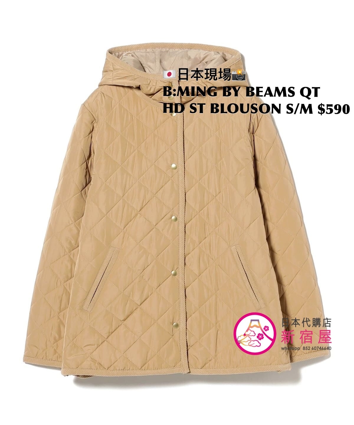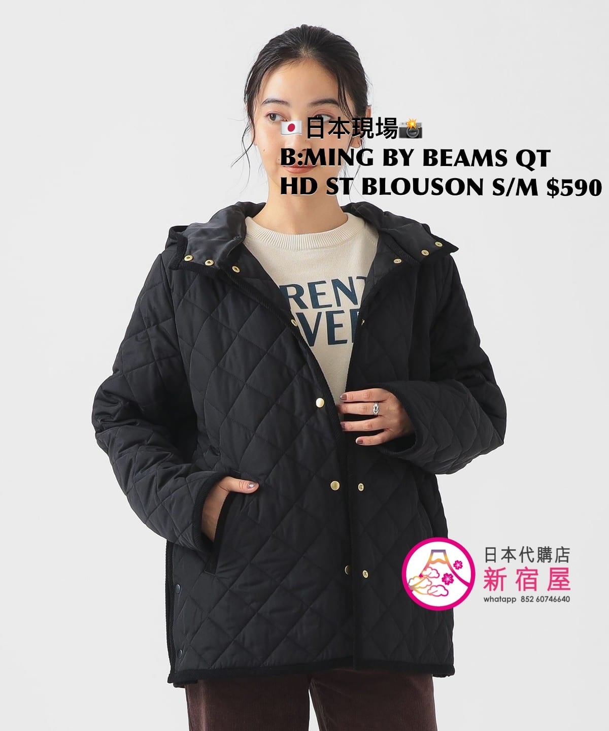 B:MING BY BEAMS QUILTED HOODED SHORT BLOUSON SIZE S/M,BLACK/ LIGHT BEIGE,$590 👚參考尺寸 SIZE S: 身幅 53 著丈 63.5cm SIZE M: 身幅 53.5 著丈 65.5cm