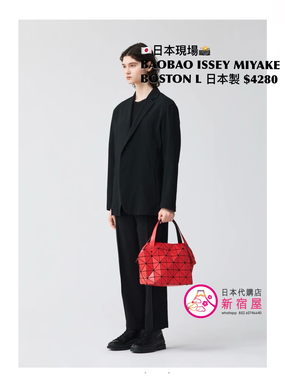 BAOBAO ISSEY MIYAKE BOSTON L 41x16x24.5cm,MATTE BLACK/ RED/ BEIGE,日本製,$4280