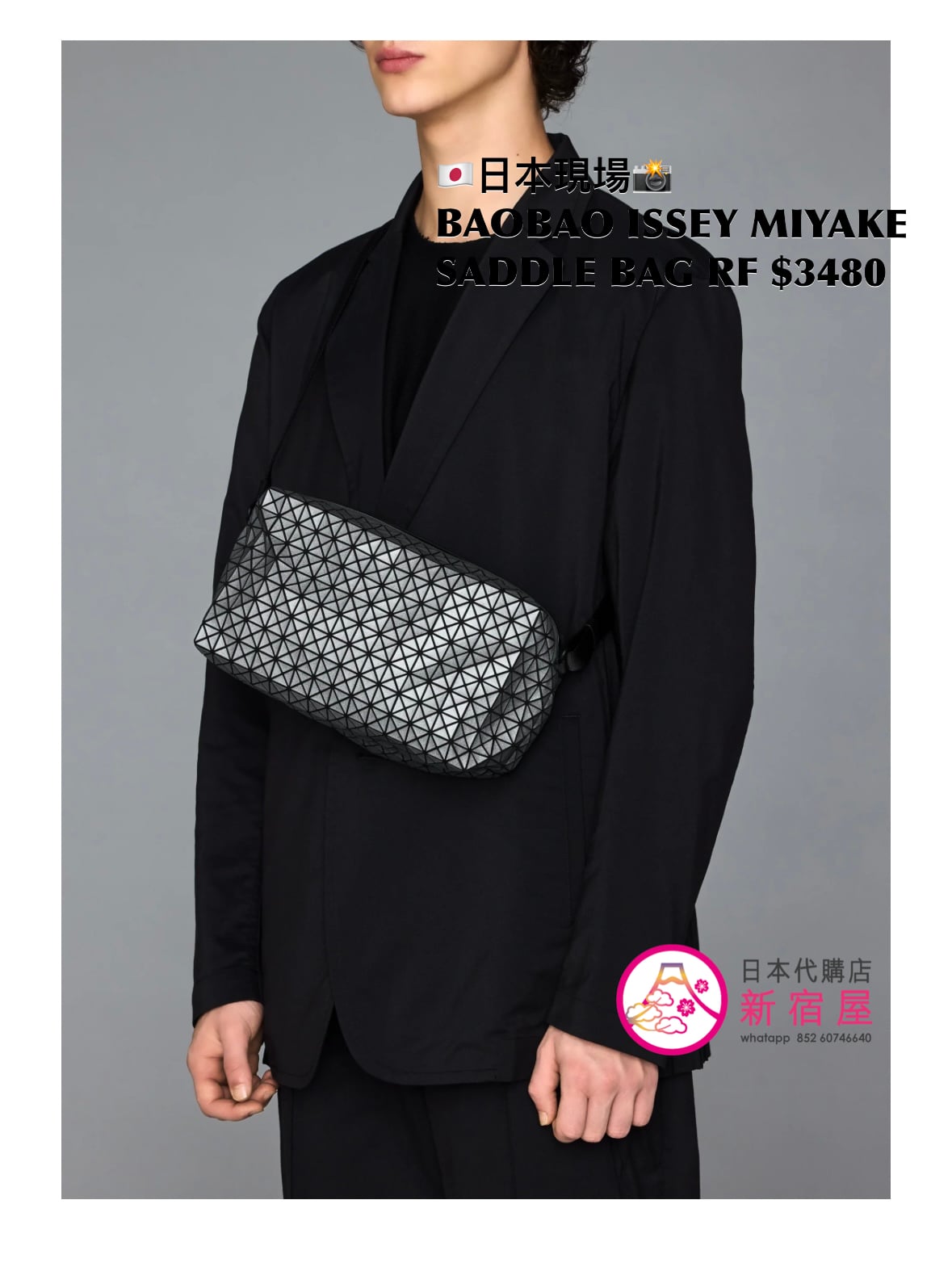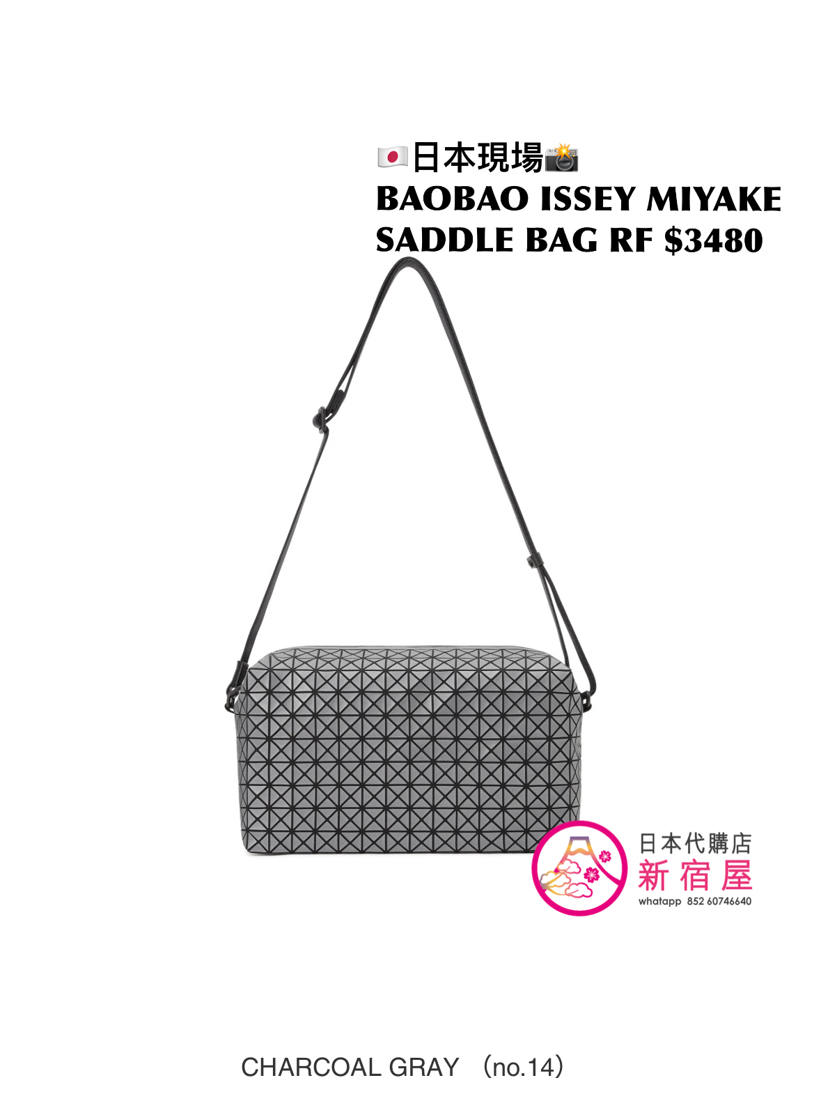 BAOBAO ISSEY MIYAKE SADDLE BAG REFLECTOR 25.5x11x14.5cm,CHARCOAL GRAY,日本製,$3480