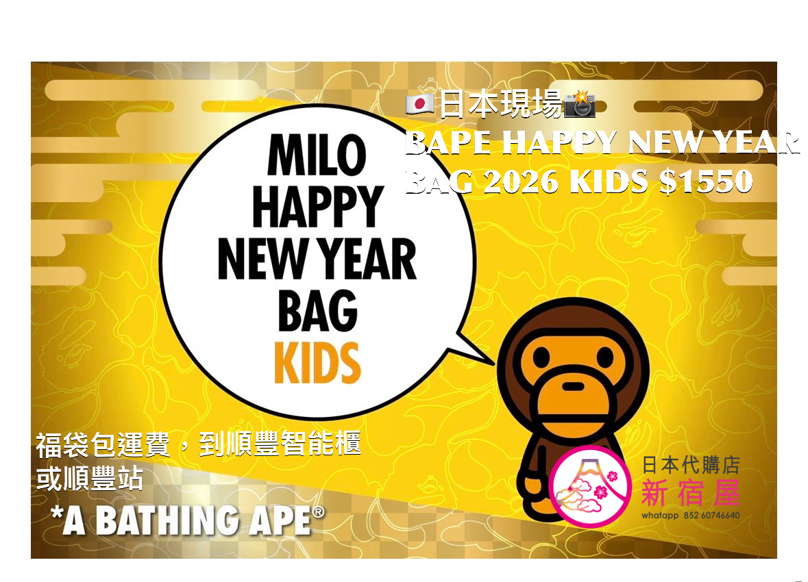 BAPE KIDS HAPPY NEW YEAR BAG 2026 價格已包括國際及本地運費,可選到順豐站或智能櫃取件 KIDS,100/110/120/130/140cm,$1550