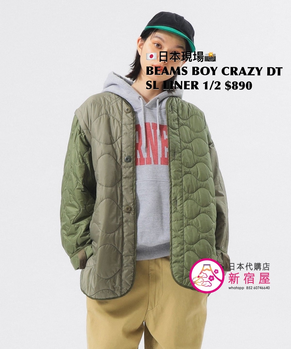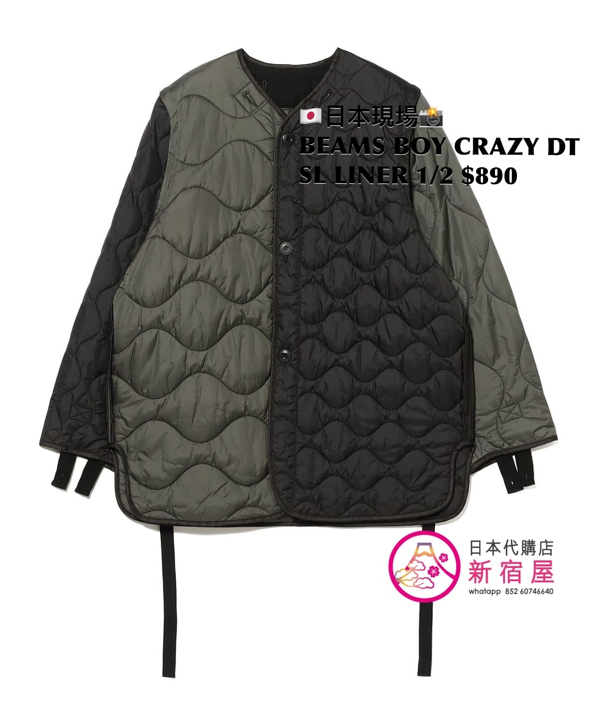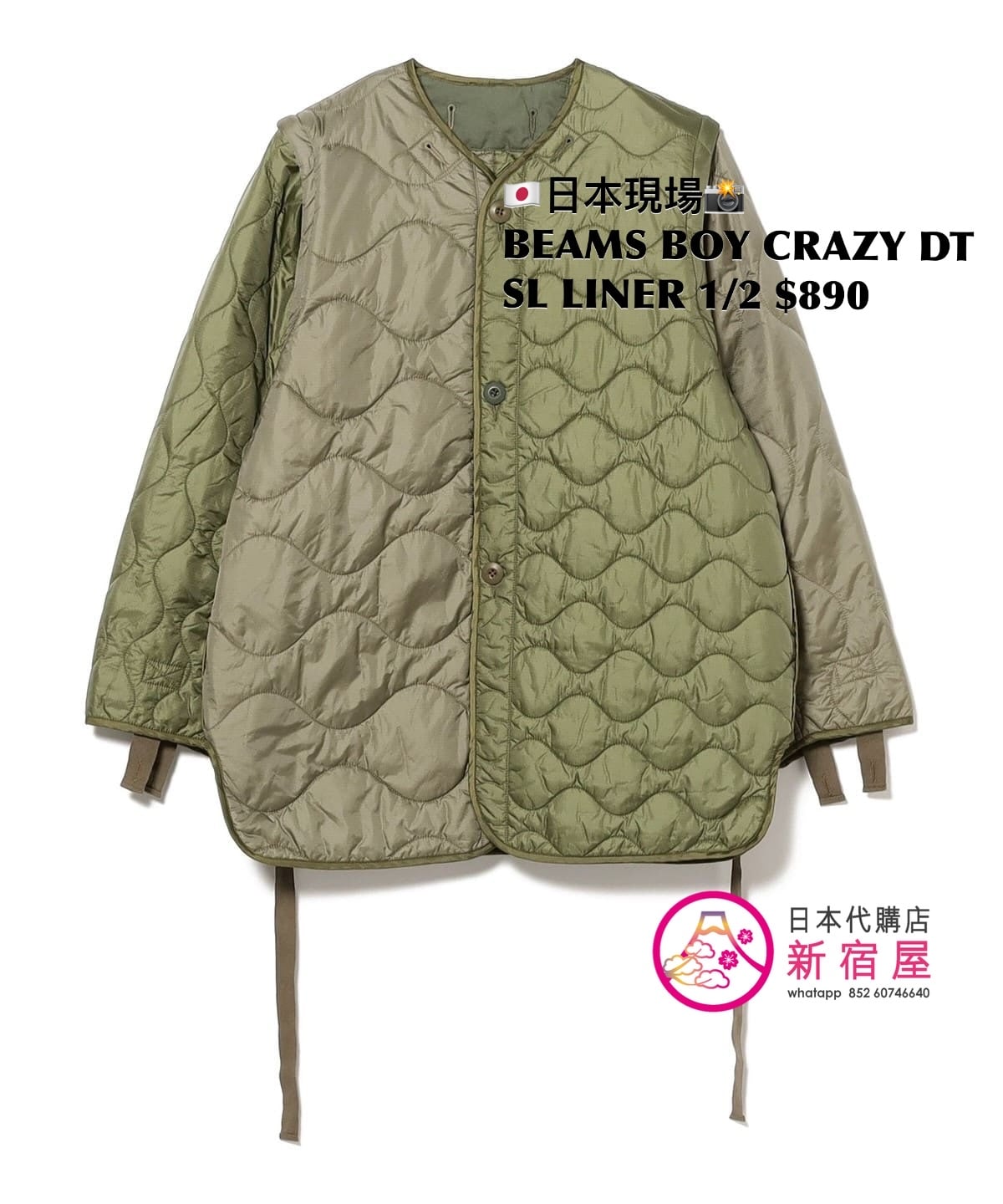 BEAMS BOY CRAZY DETACH SLEEVE LINER SIZE 1/2,BLACK/ OLIVE CRAZY,$890 👚參考尺寸 SIZE 1: 身幅 59.5 著丈 72cm SIZE 2: 身幅 61 著丈 73.5cm