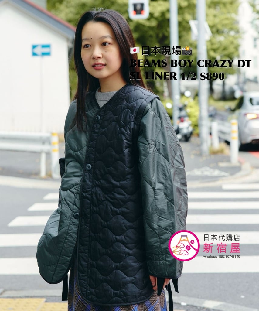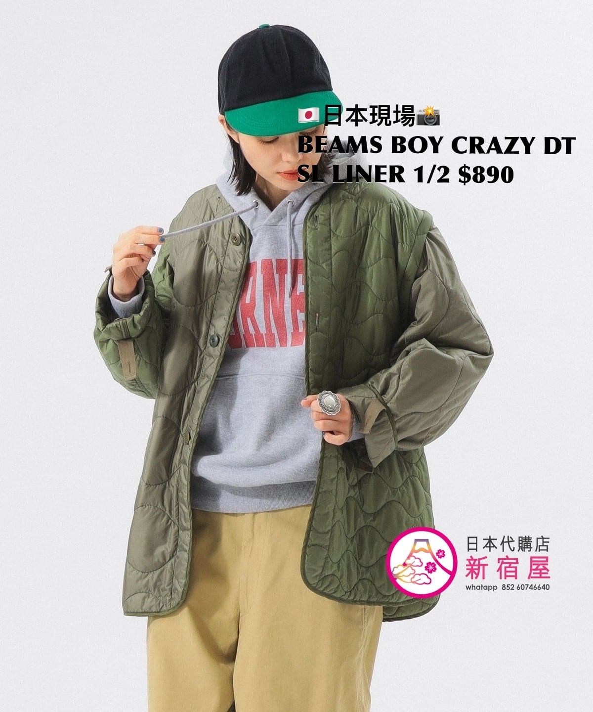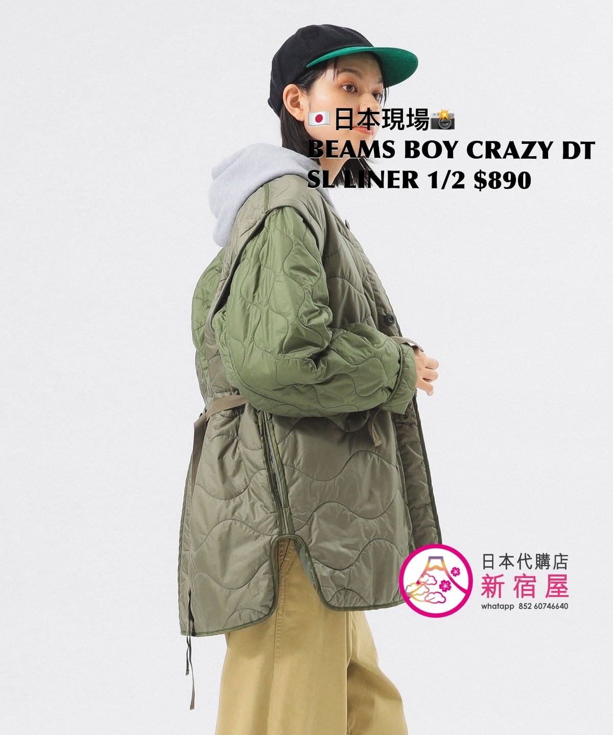 BEAMS BOY CRAZY DETACH SLEEVE LINER SIZE 1/2,BLACK/ OLIVE CRAZY,$890 👚參考尺寸 SIZE 1: 身幅 59.5 著丈 72cm SIZE 2: 身幅 61 著丈 73.5cm