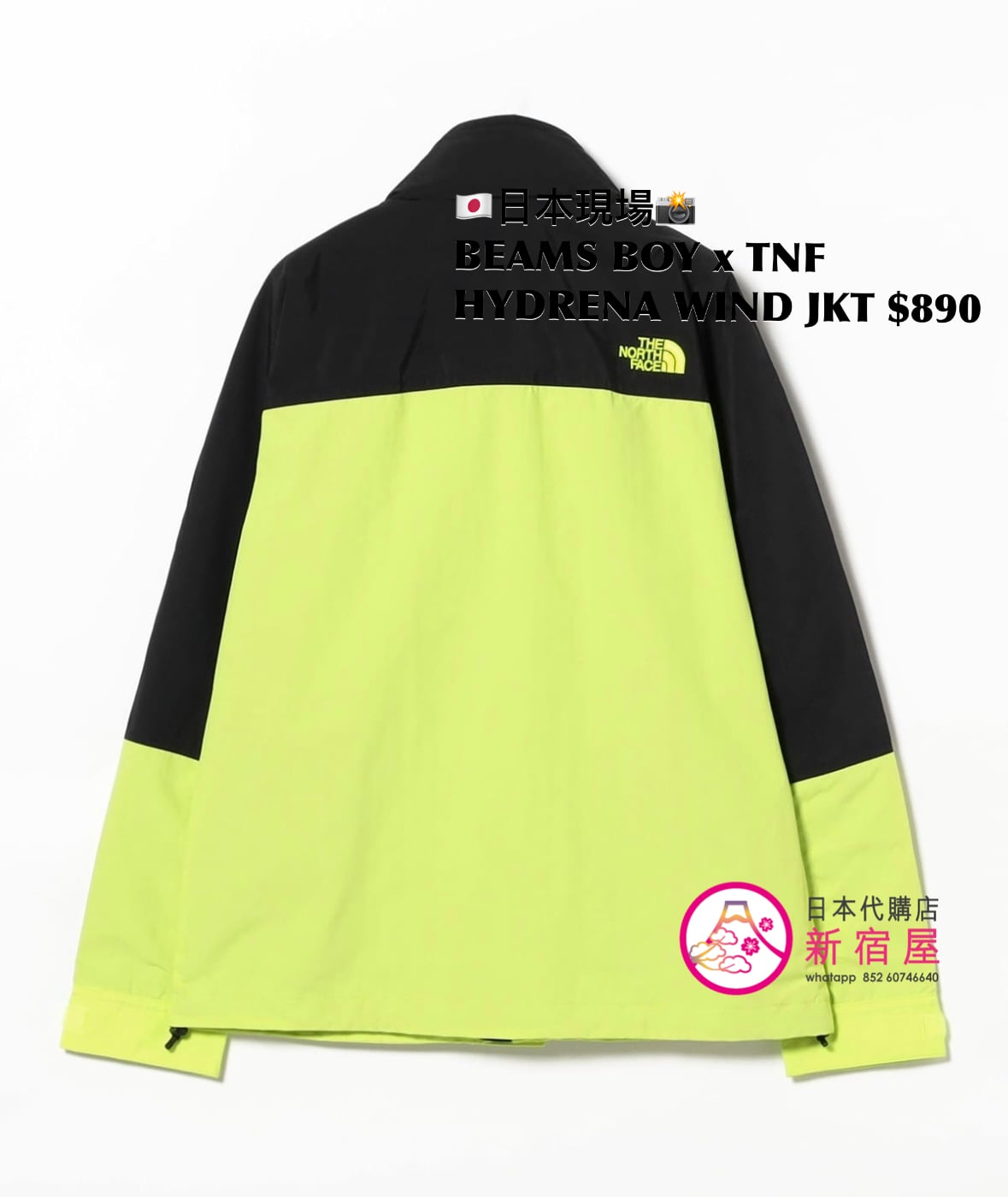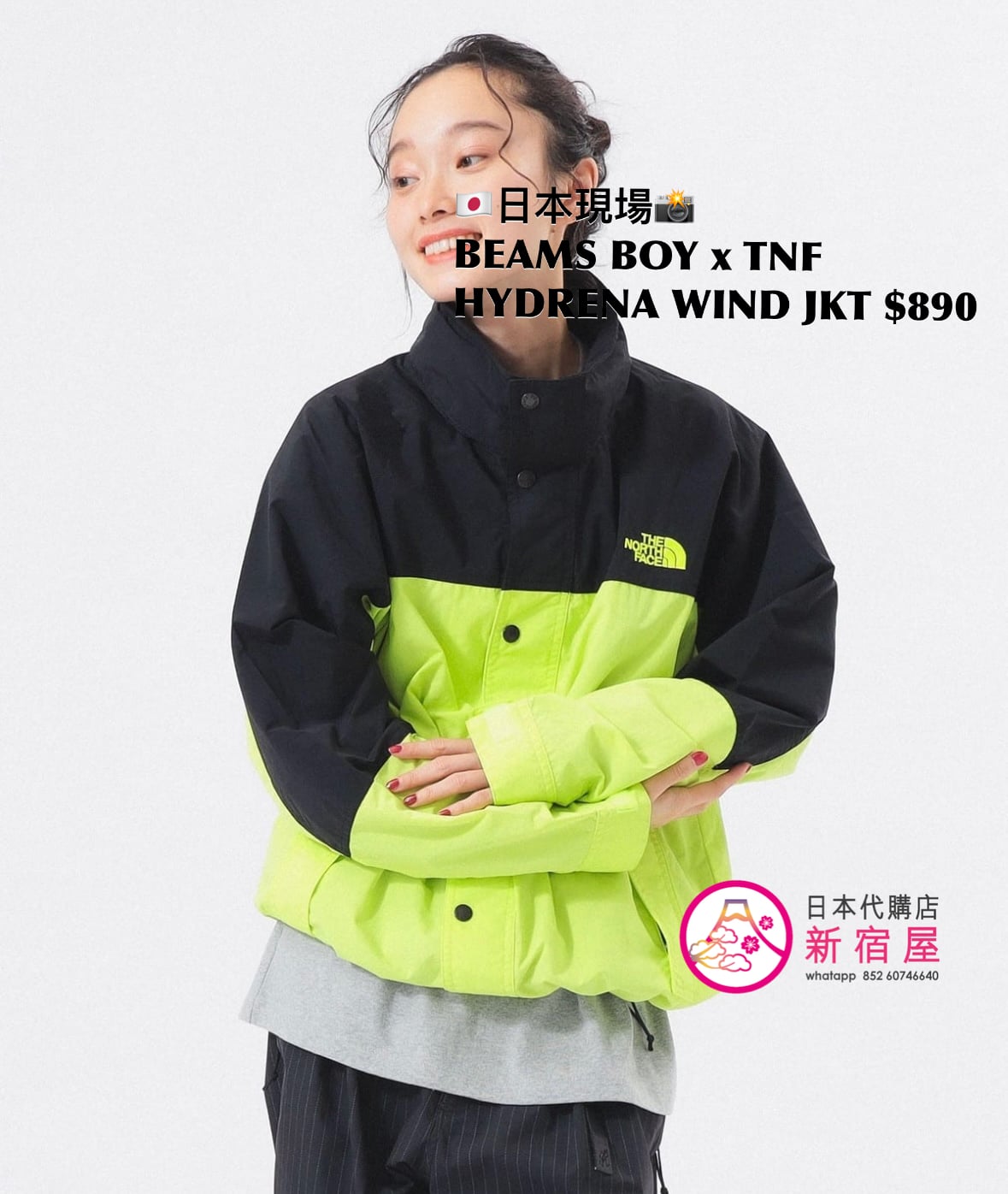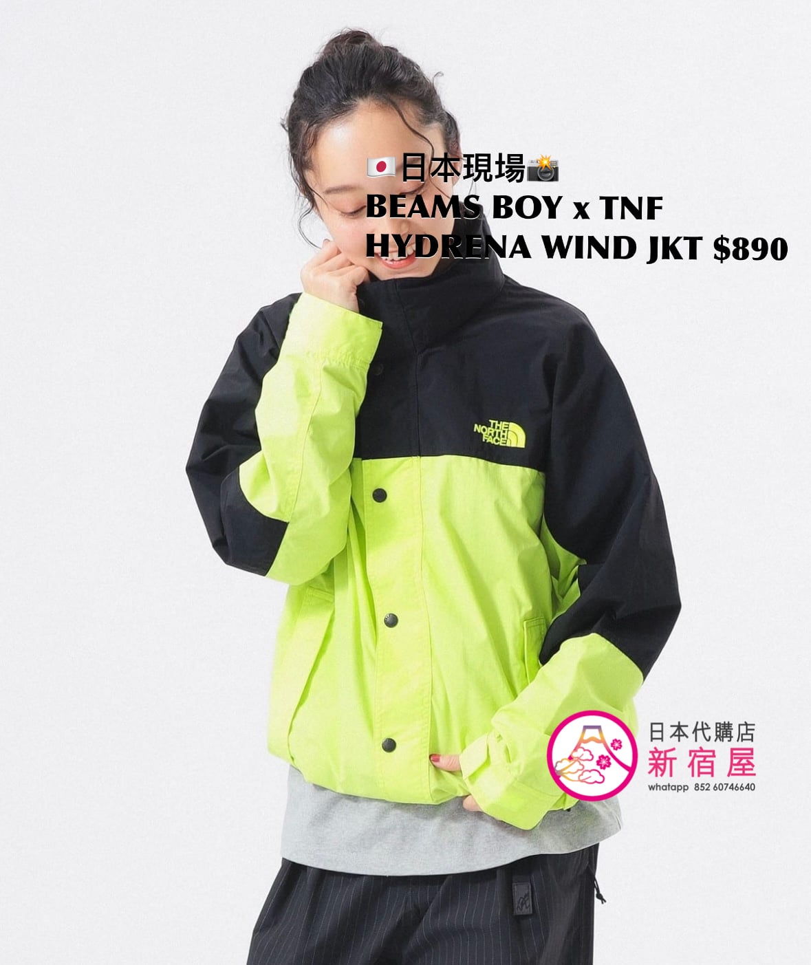 BEAMS BOY x THE NORTH FACE HYDRENA WIND JACKET SIZE S,BLACK x FIZZ LIME,$890 👚參考尺寸 SIZE S: 身幅 56.5 著丈 67cm