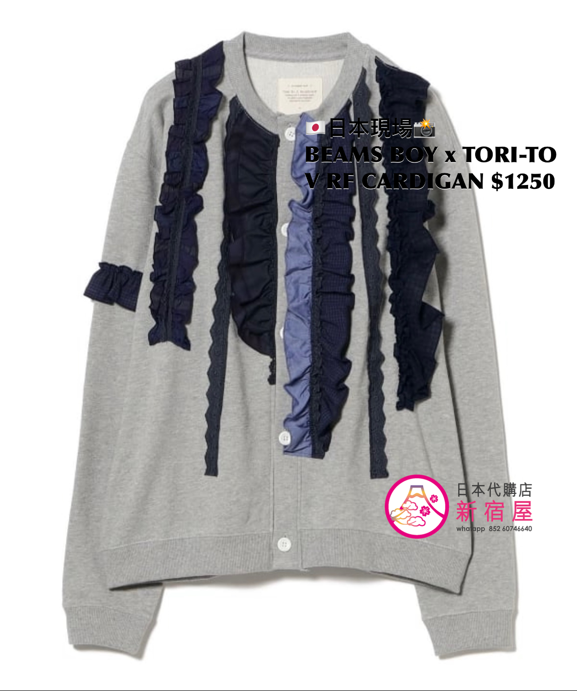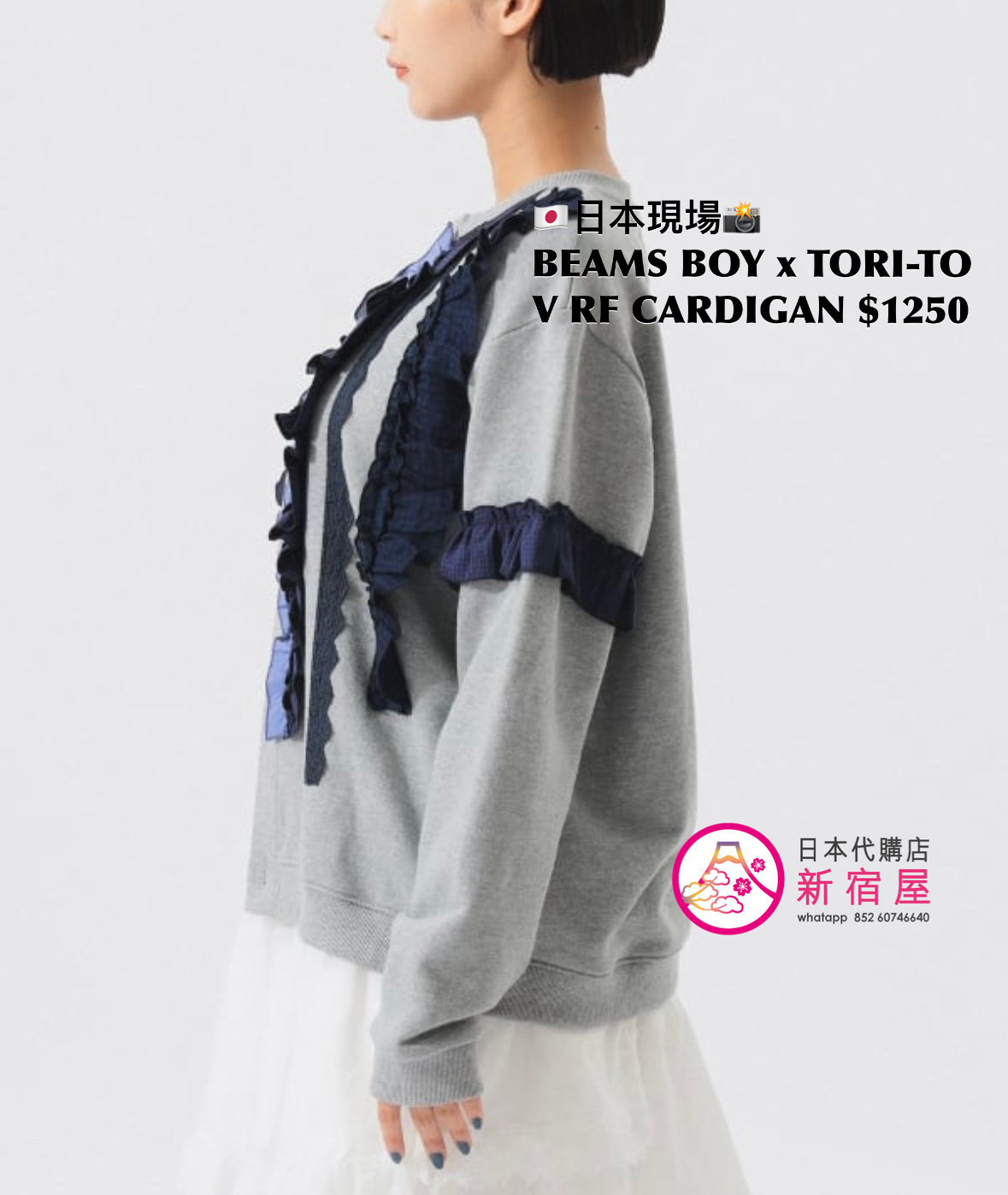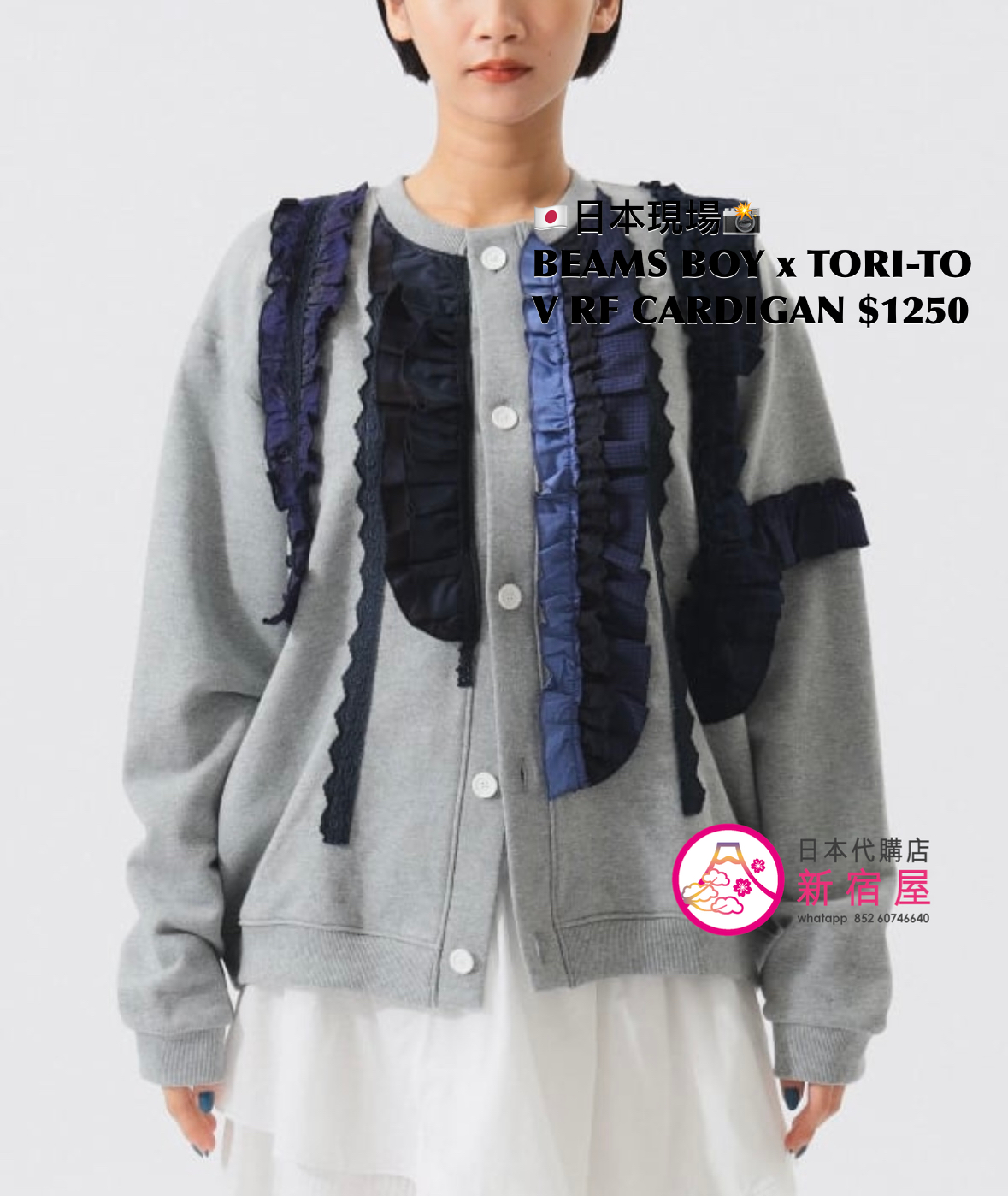 BEAMS BOY x TORI-TO VERTICAL RUFFLE CARDIGAN ONE SIZE ,GRAY/ BLACK,日本製,$1250 👚參考尺寸 ONE SIZE: 身幅 57 著丈 61cm