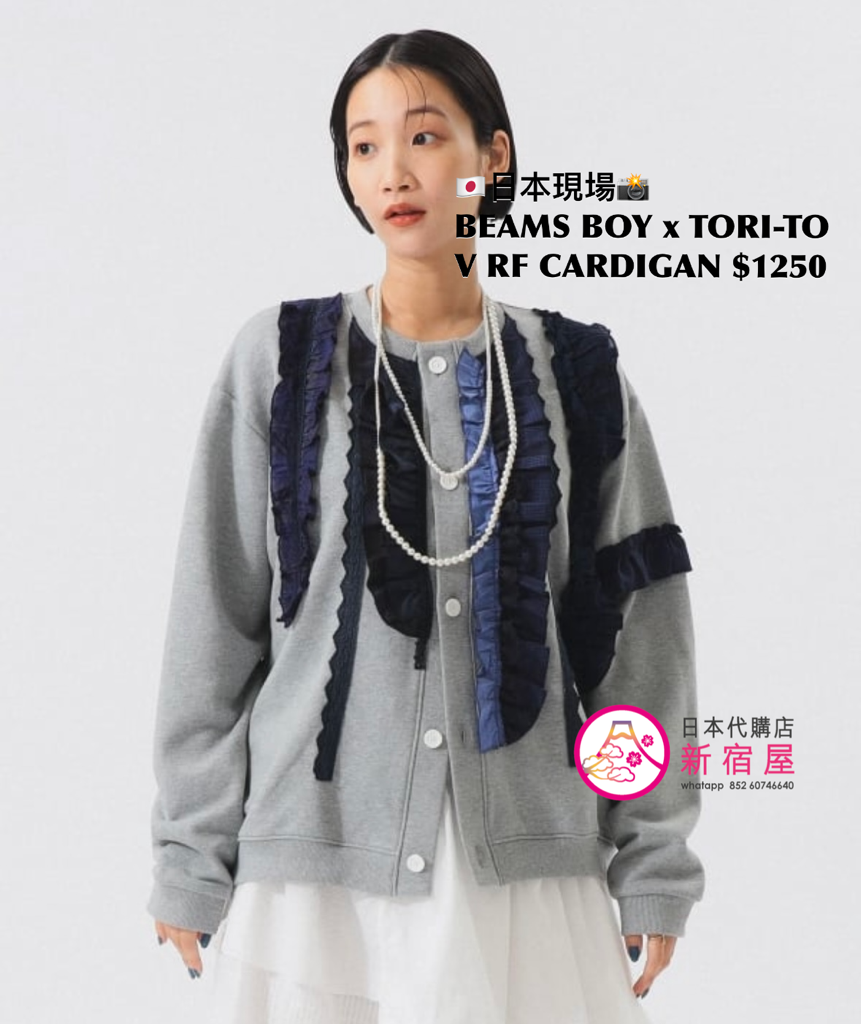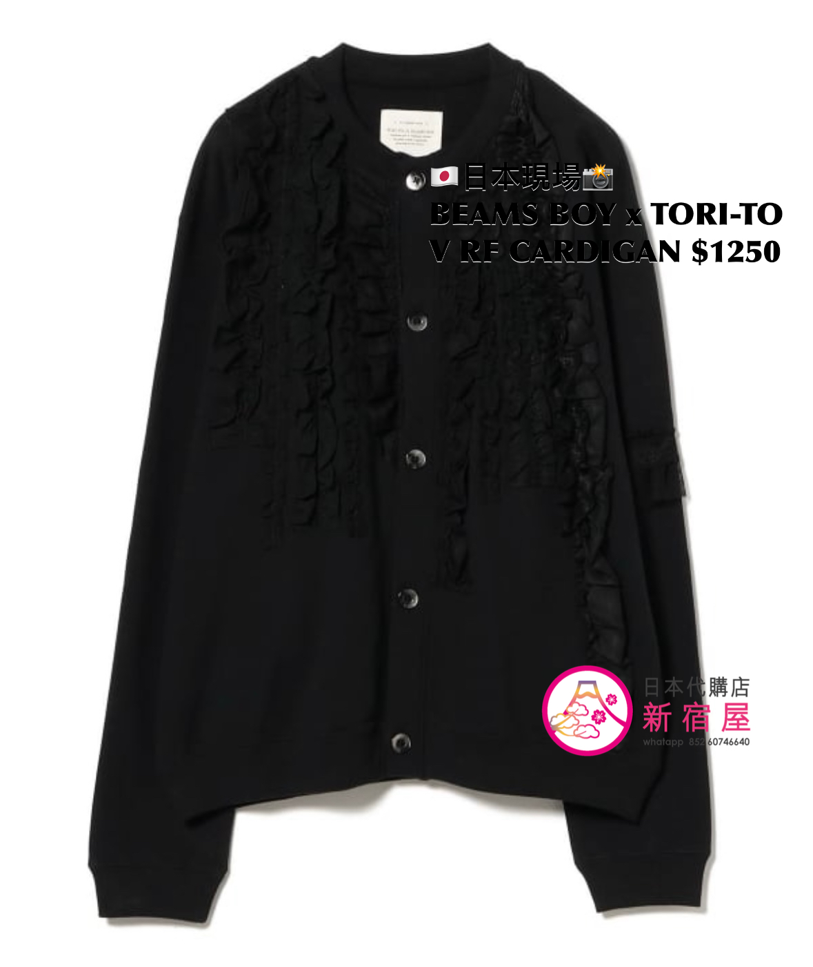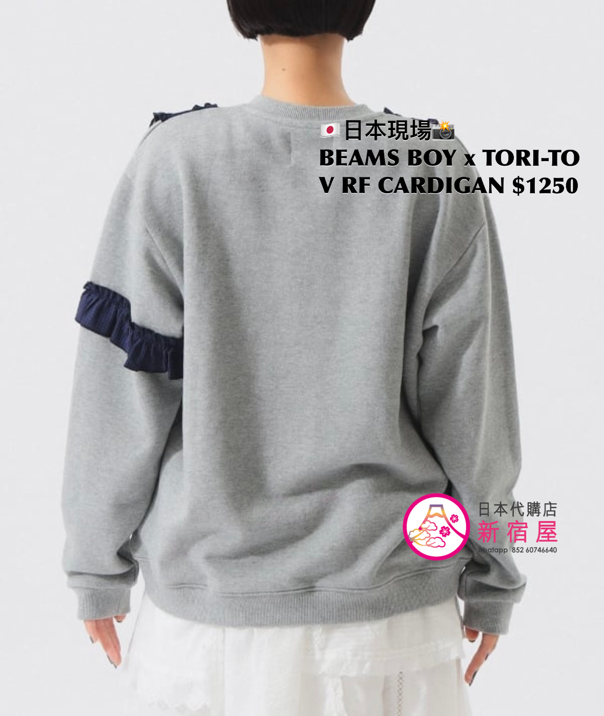 BEAMS BOY x TORI-TO VERTICAL RUFFLE CARDIGAN ONE SIZE ,GRAY/ BLACK,日本製,$1250 👚參考尺寸 ONE SIZE: 身幅 57 著丈 61cm