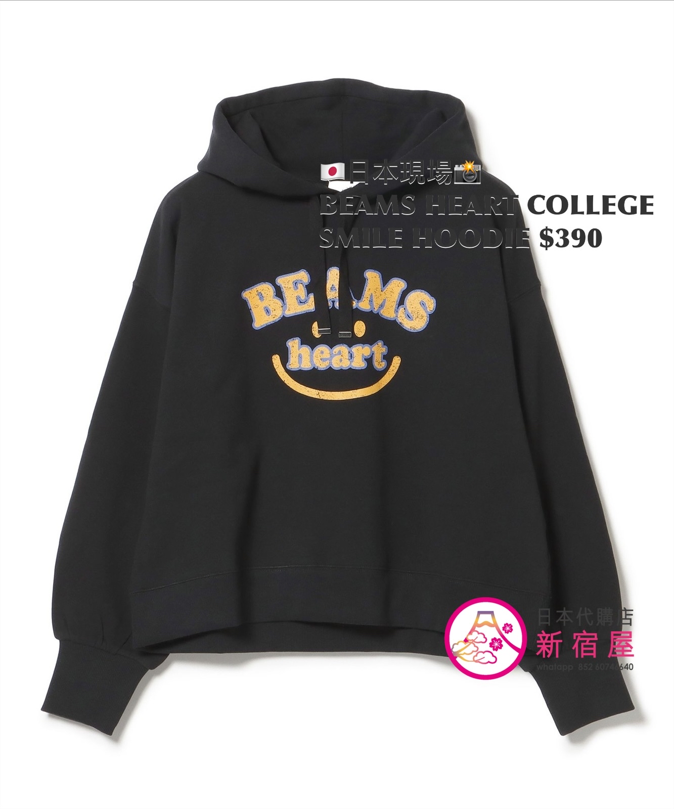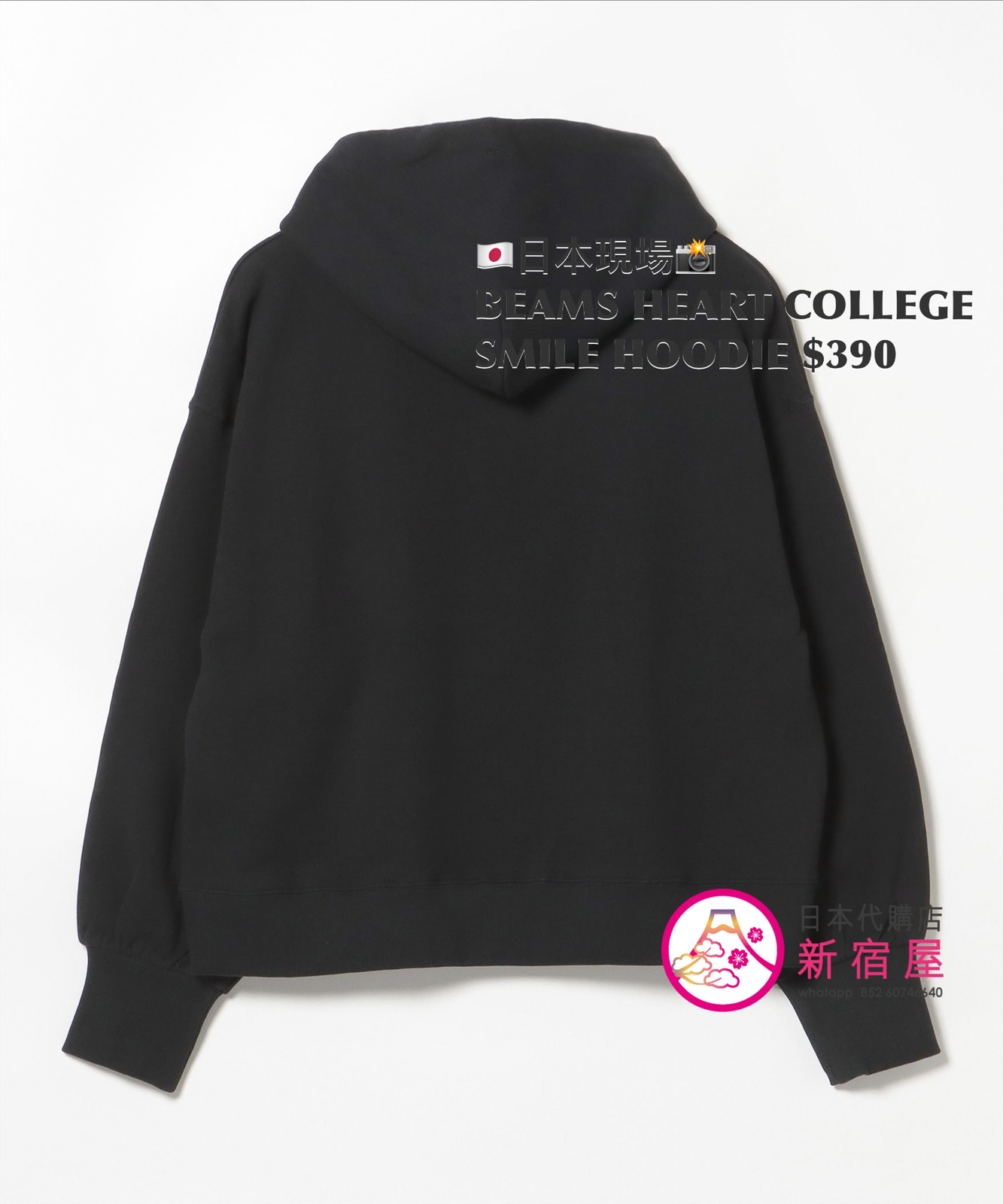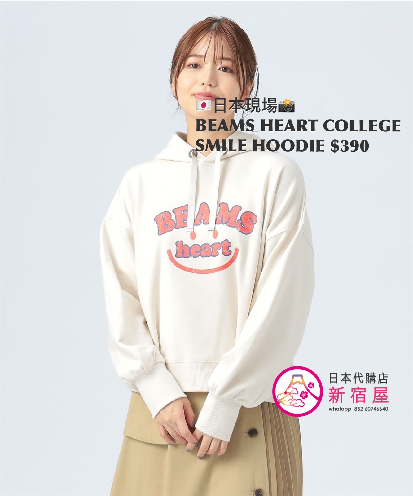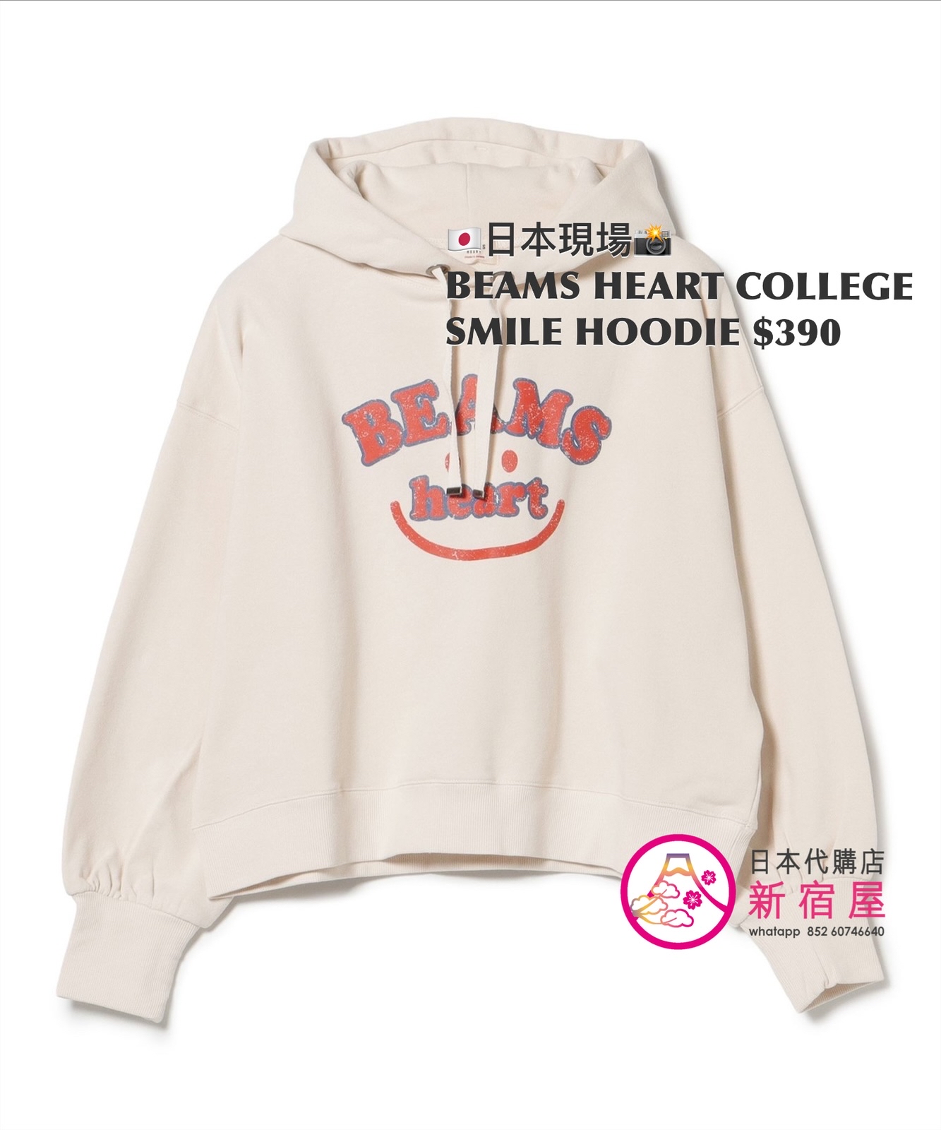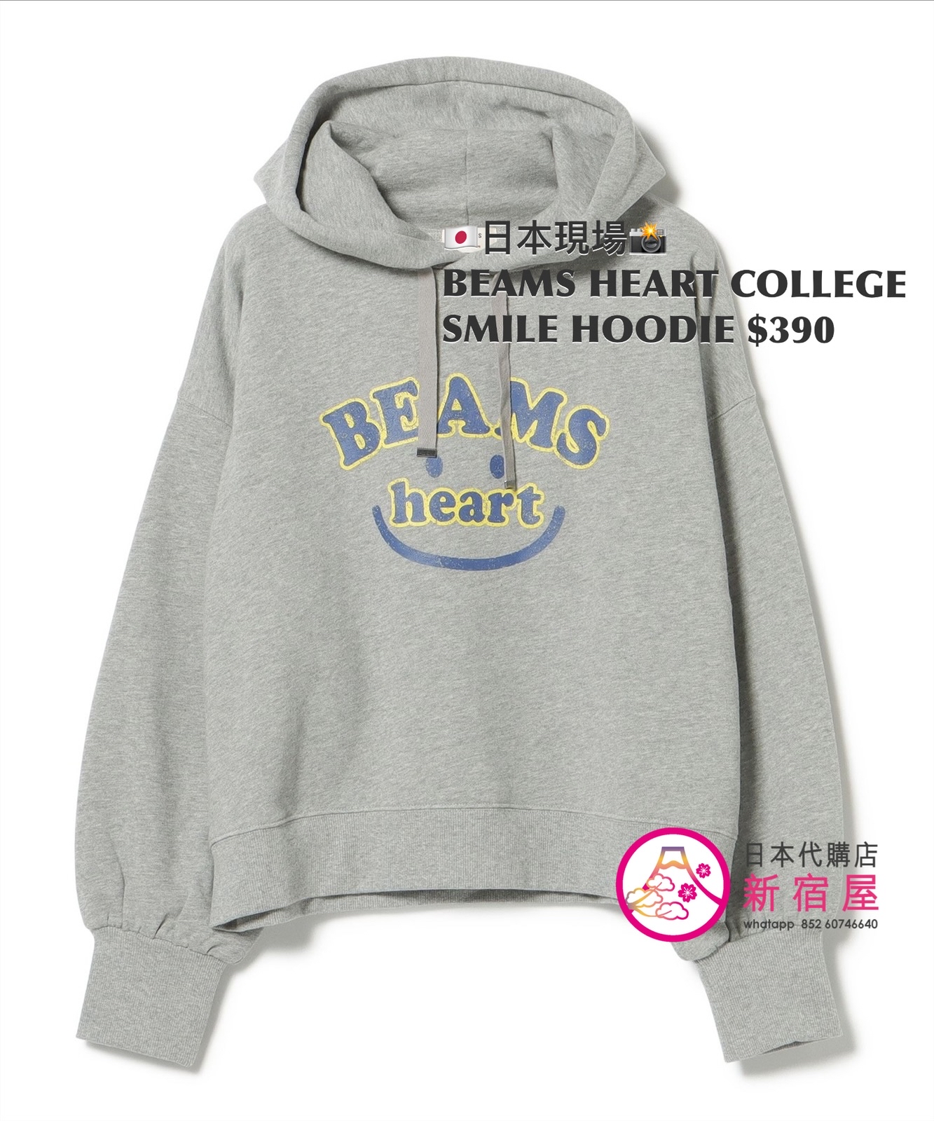 BEAMS HEART COLLEGE SMILE HOODIE FREE SIZE,GRAY/ WHITE/ BLACK,$390 👚參考尺寸 FREE SIZE: 身幅 57 著丈 53.5cm