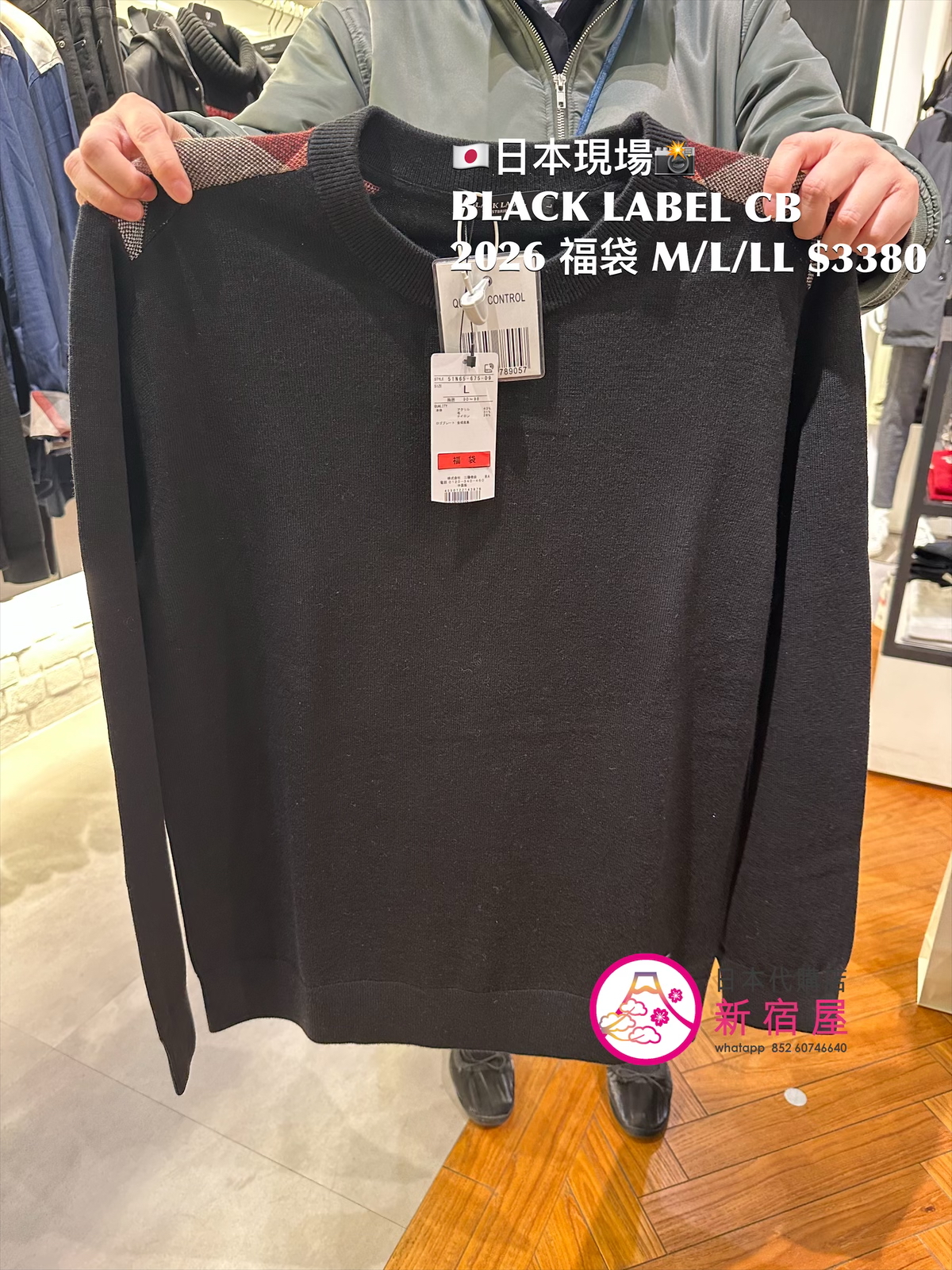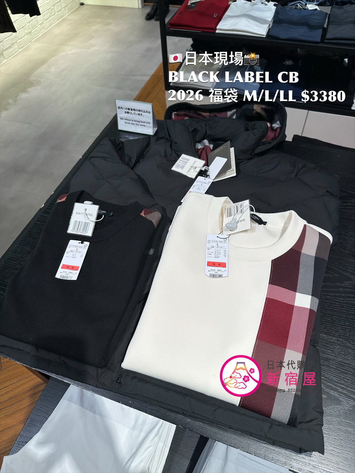 BLACK LABEL CB 2026 NEW YEAR HAPPY BAG 商品包括 DOWN JACKET, SWEATSHIRT,KNIT PULLOVER SIZE M/L/LL,3 ITEMS,$3380