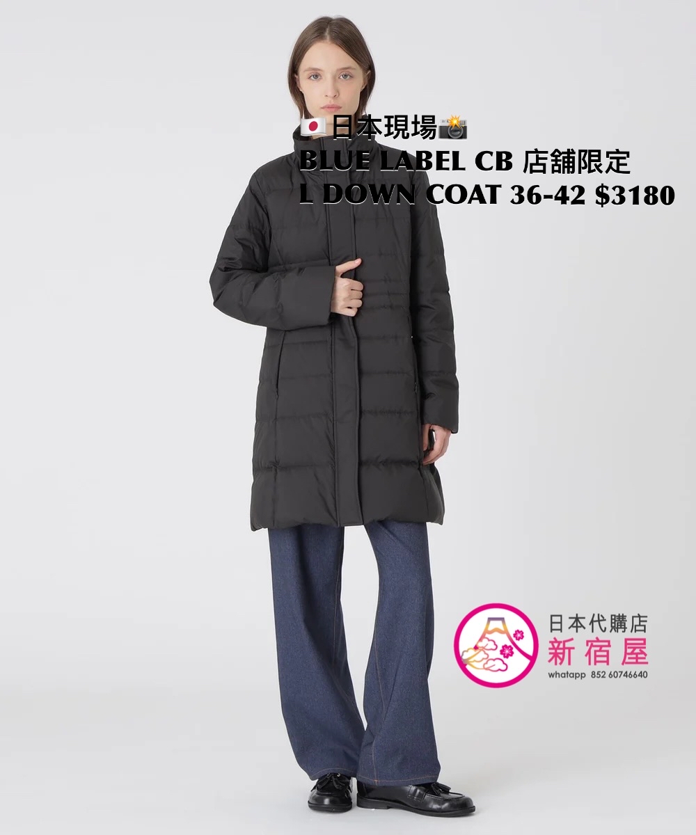 BLUE LABEL CB 店舖限定 LONG DOWN COAT SIZE 36/38/40/42,BLACK/ ECRU/ NAVY,$3080 🧥參考尺寸 SIZE 36: 胸 97 著丈 84cm SIZE 38: 胸 100 著丈 85cm SIZE 40: 胸 103 著丈 86cm SIZE 42: 胸 106 著丈 87cm