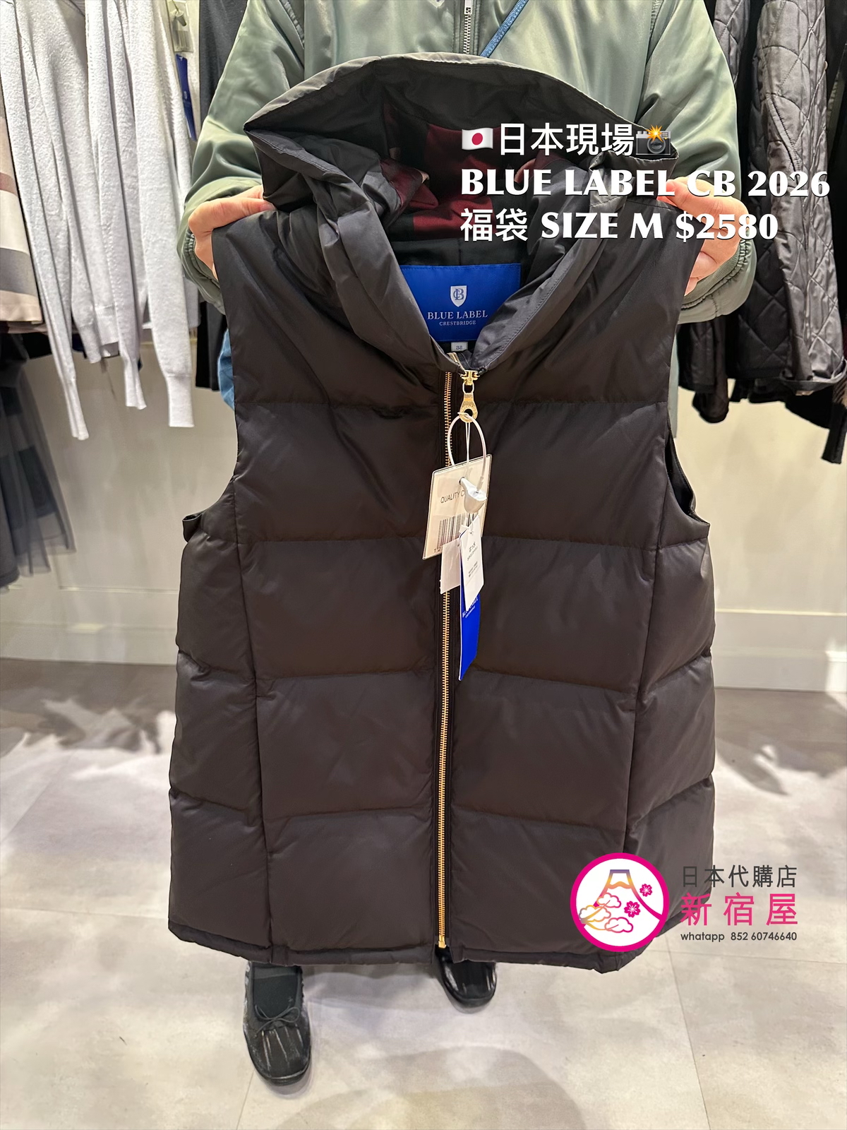 BLUE LABEL CB 2026 NEW YEAR HAPPY BAG 商品包括 DOWN VEST,ZIP JACKET SIZE M,2 ITEMS,$2580
