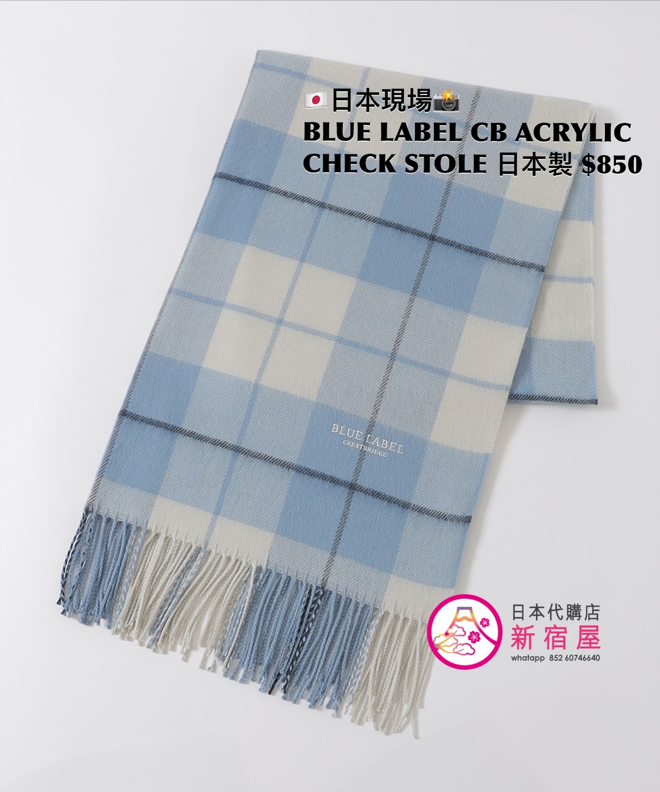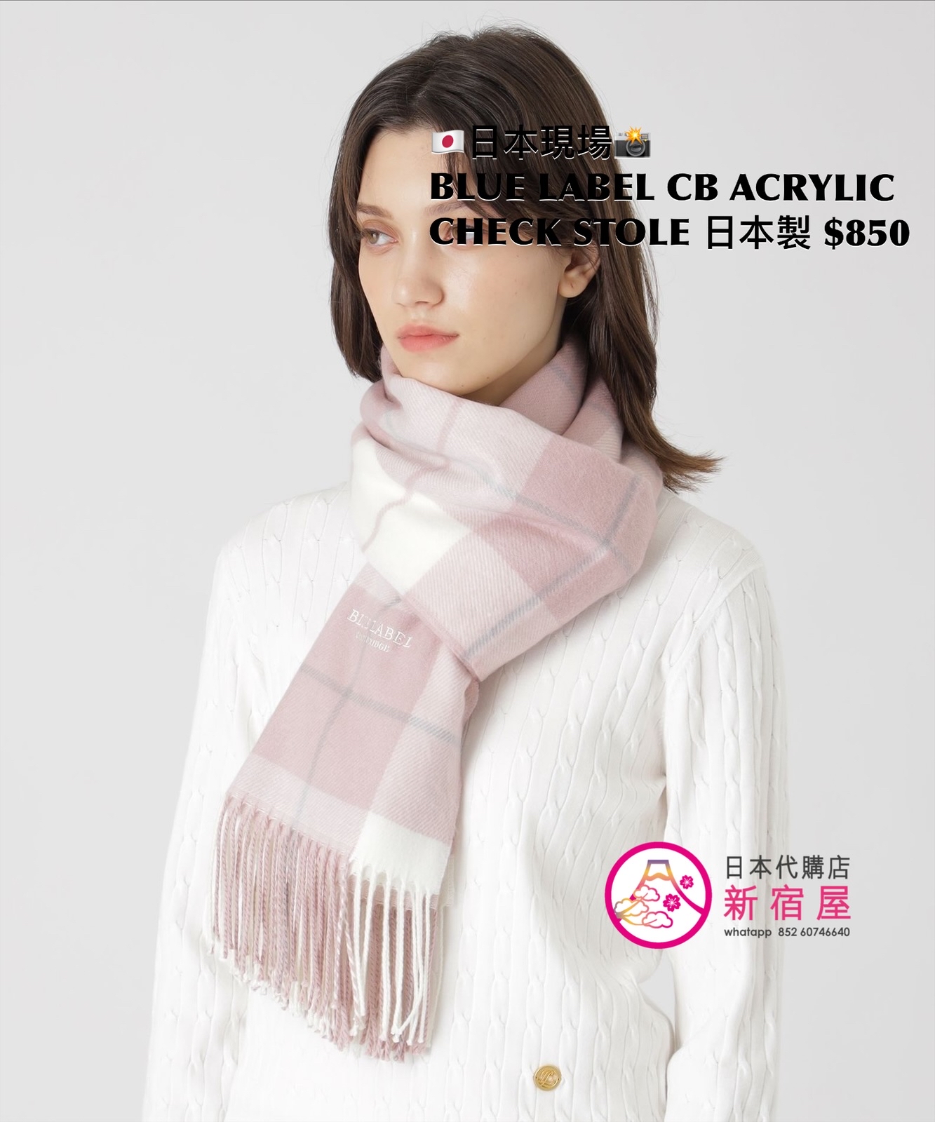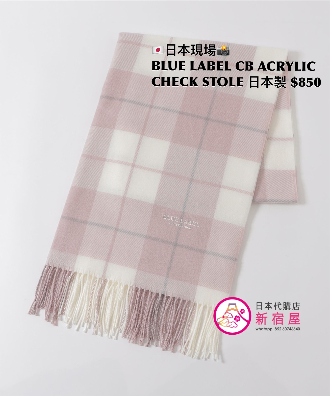 BLUE LABEL CB ACRYLIC CHECKED STOLE 72.5x200cm,WHITE/ LIGHT BLUE/ PINK,日本製,$850