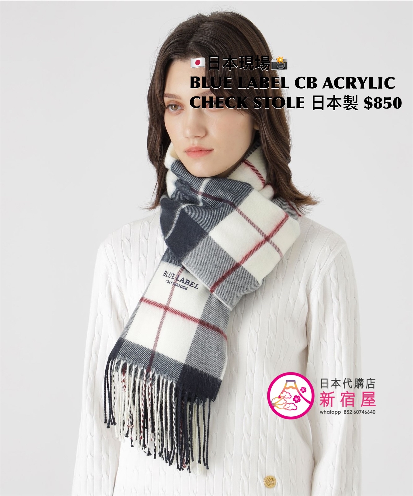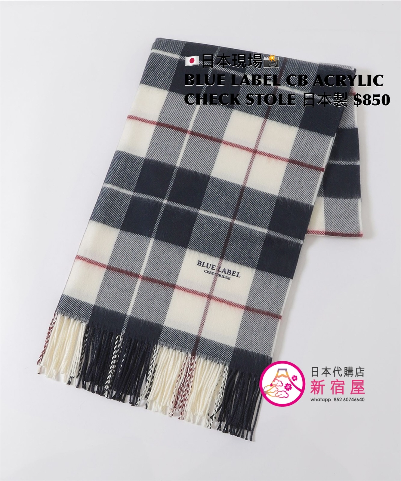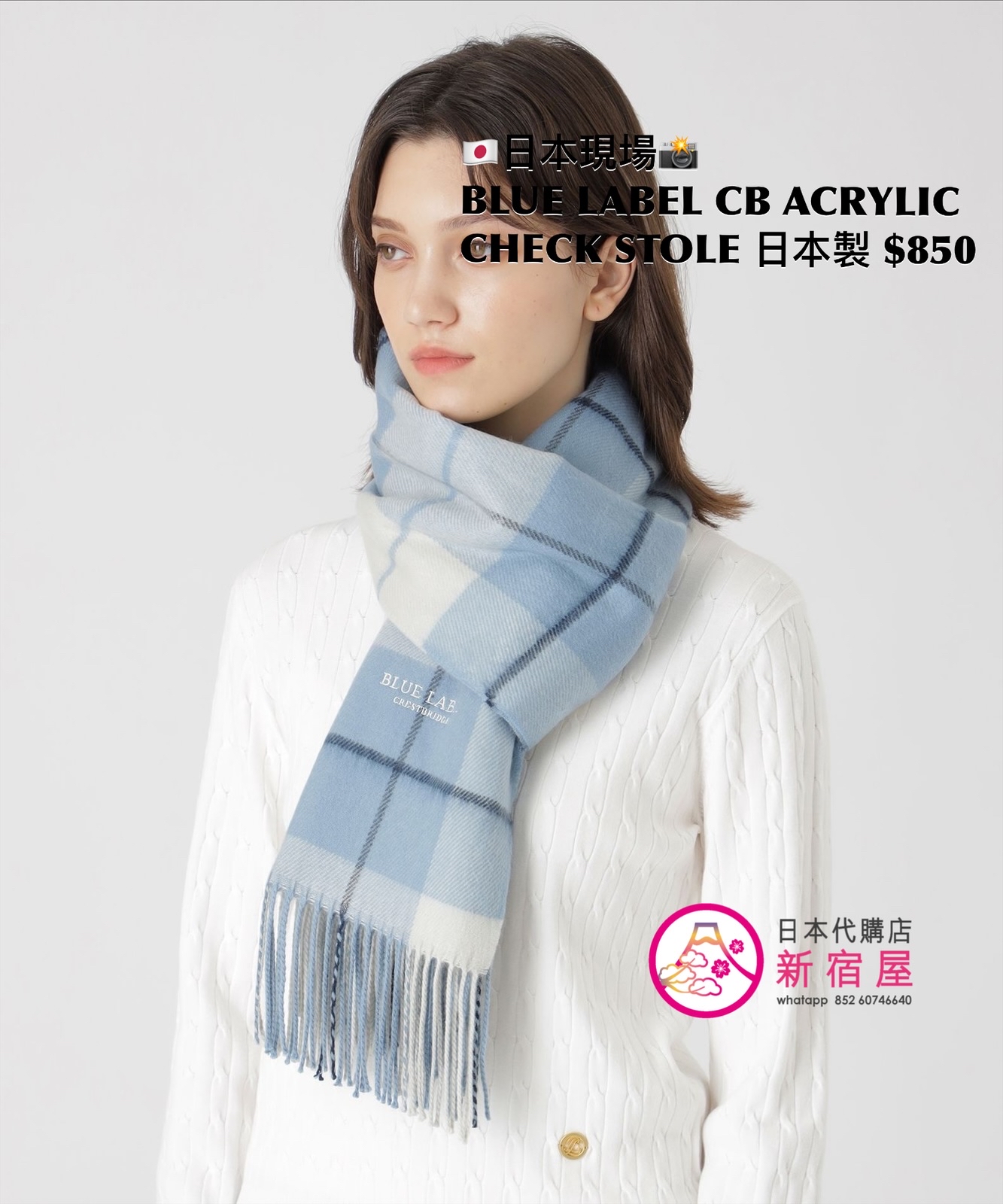 BLUE LABEL CB ACRYLIC CHECKED STOLE 72.5x200cm,WHITE/ LIGHT BLUE/ PINK,日本製,$850