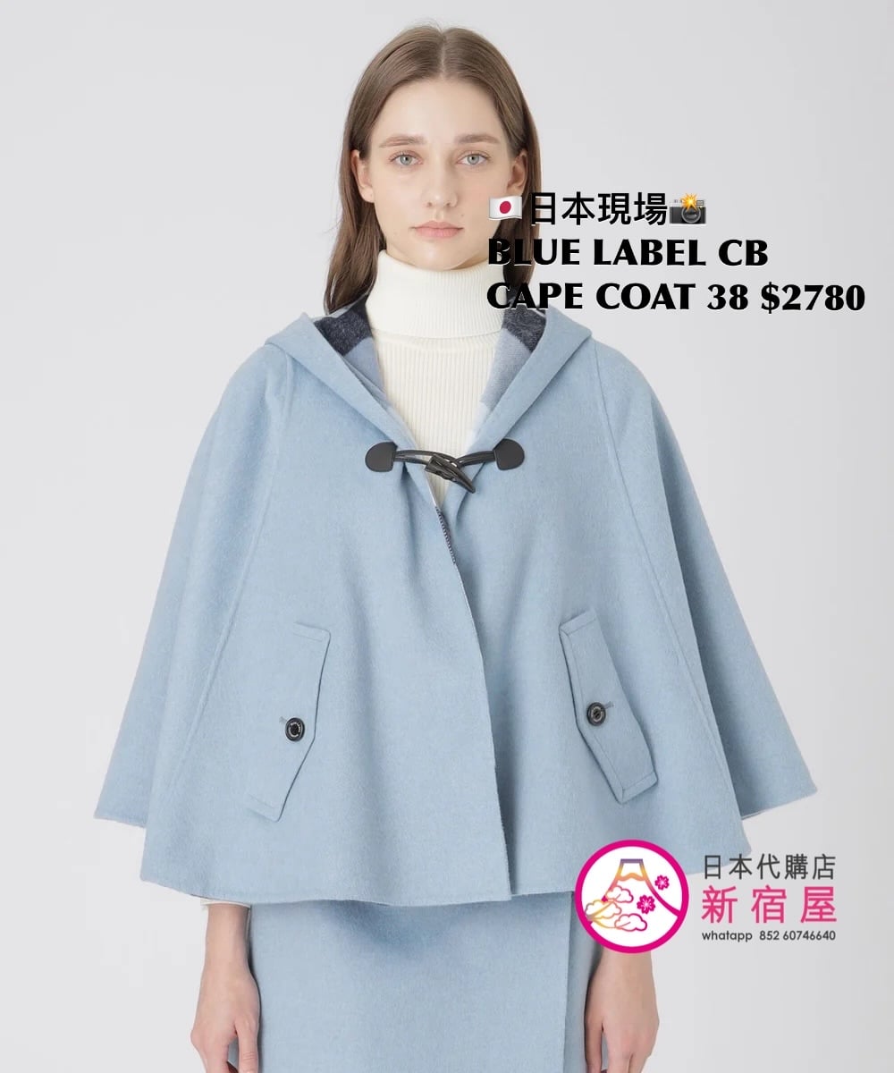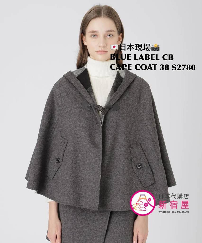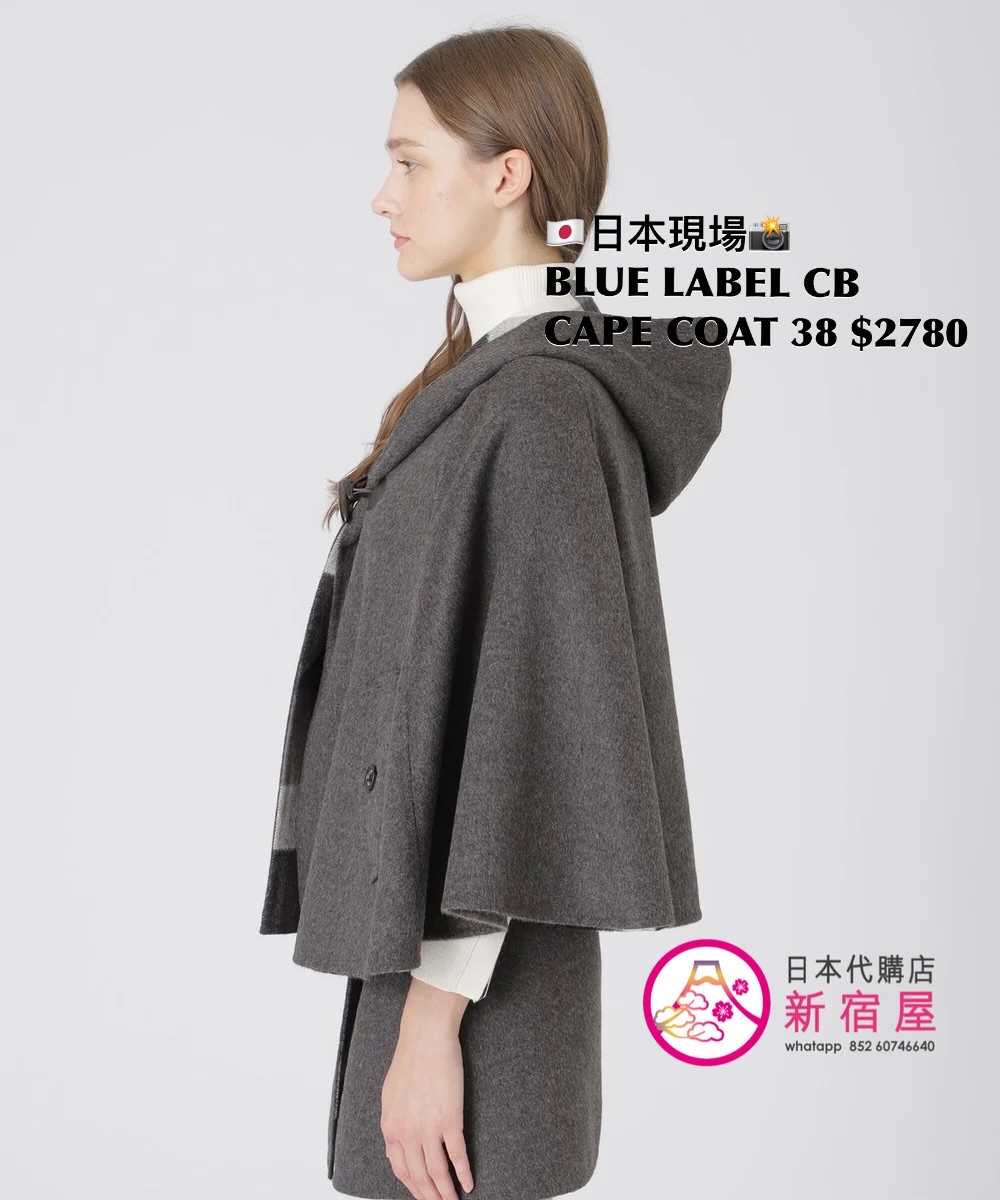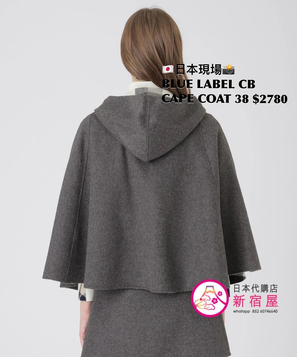BLUE LABEL CB CAPE COAT SIZE 38,GRAY/ BLUE/ NAVY,$2780 👚參考尺寸 SIZE 38: 胸 150 著丈 60cm