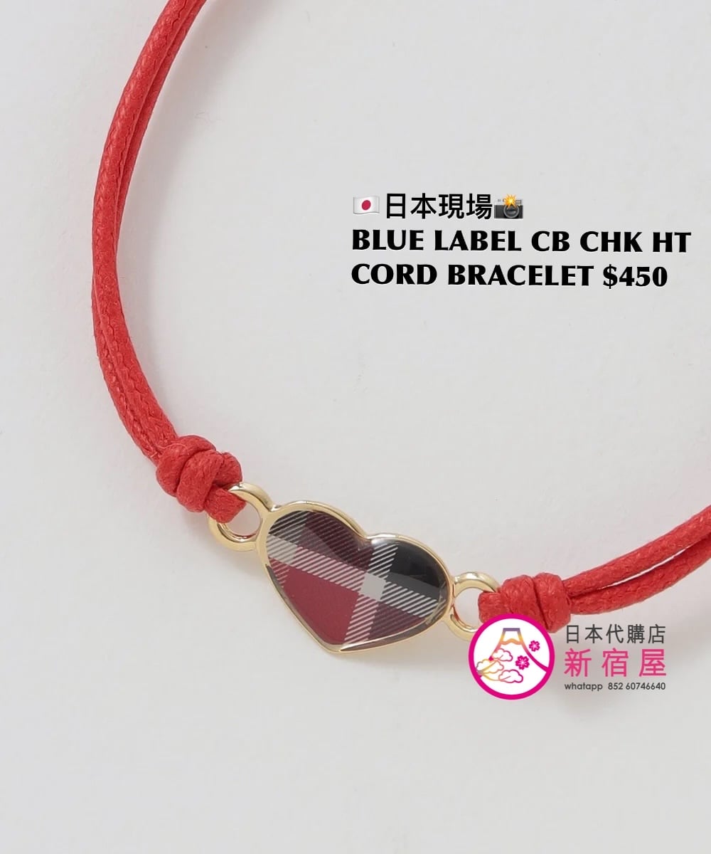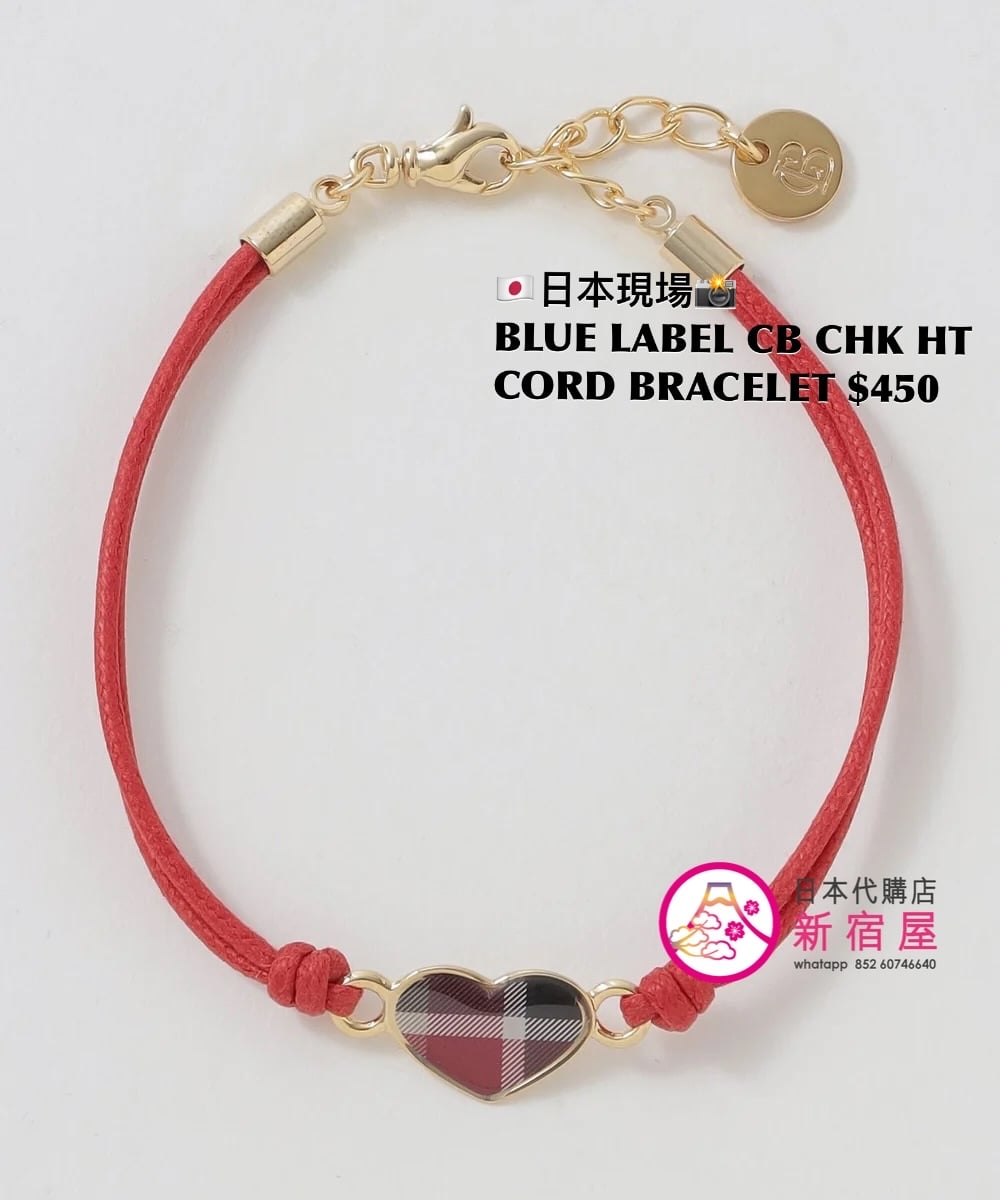 BLUE LABEL CB CHECK HEART CORD BRACELET FREE SIZE,RED/ BEIGE,日本製,$450
