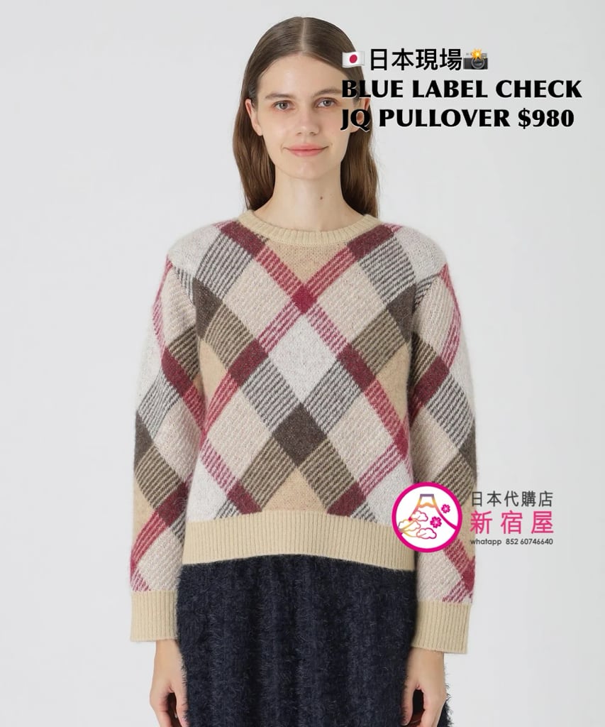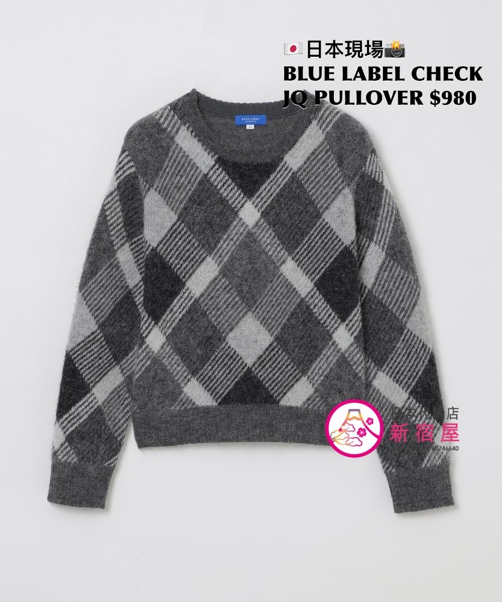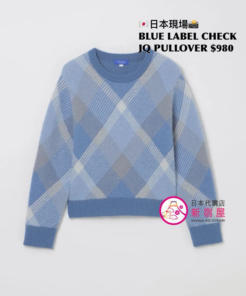 BLUE LABEL CB CHECK JACQUARD PULLOVER SIZE 38,GRAY/ BLUE/ BEIGE,$980 👚參考尺寸 SIZE 38: 胸 99 總丈 54cm