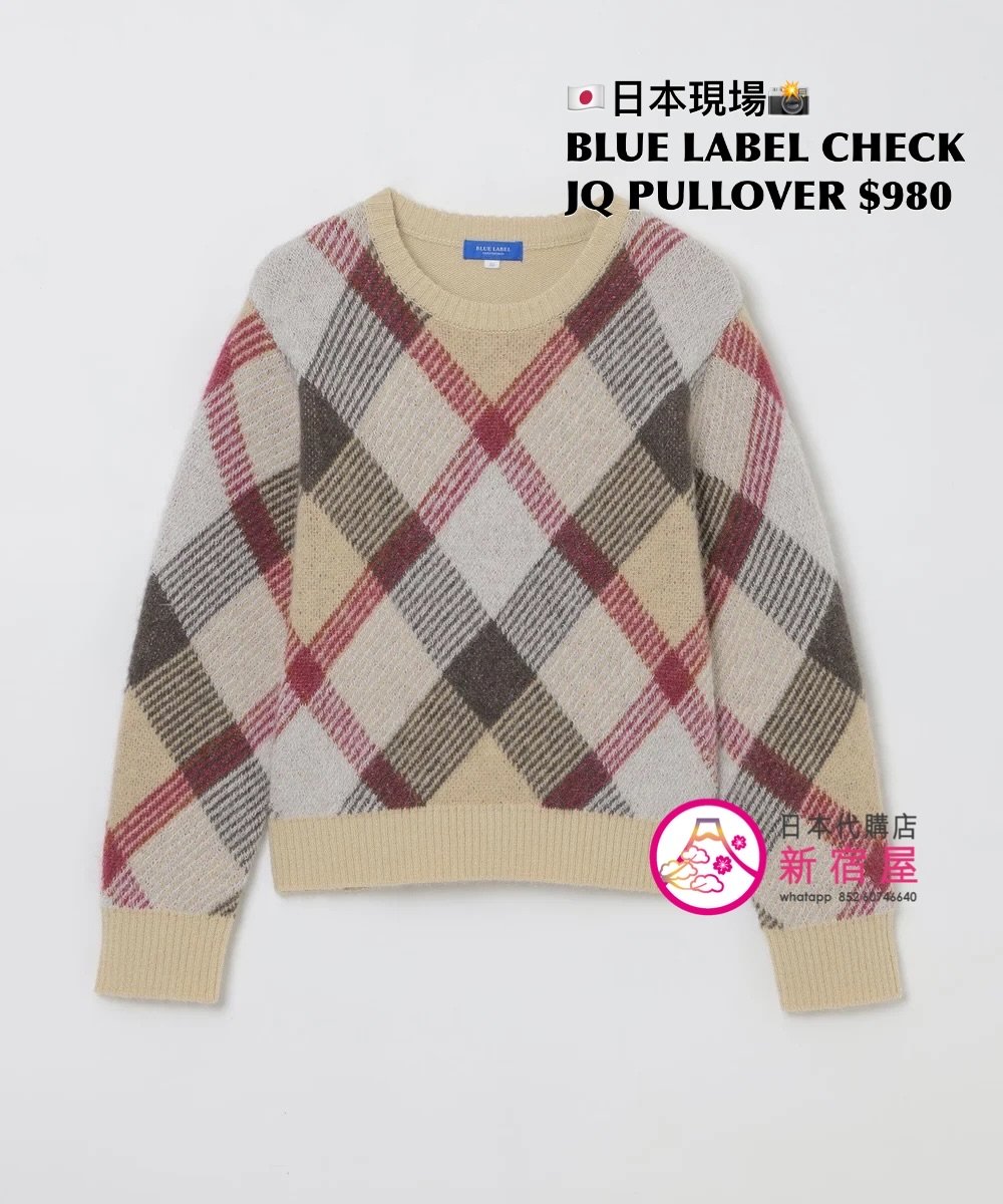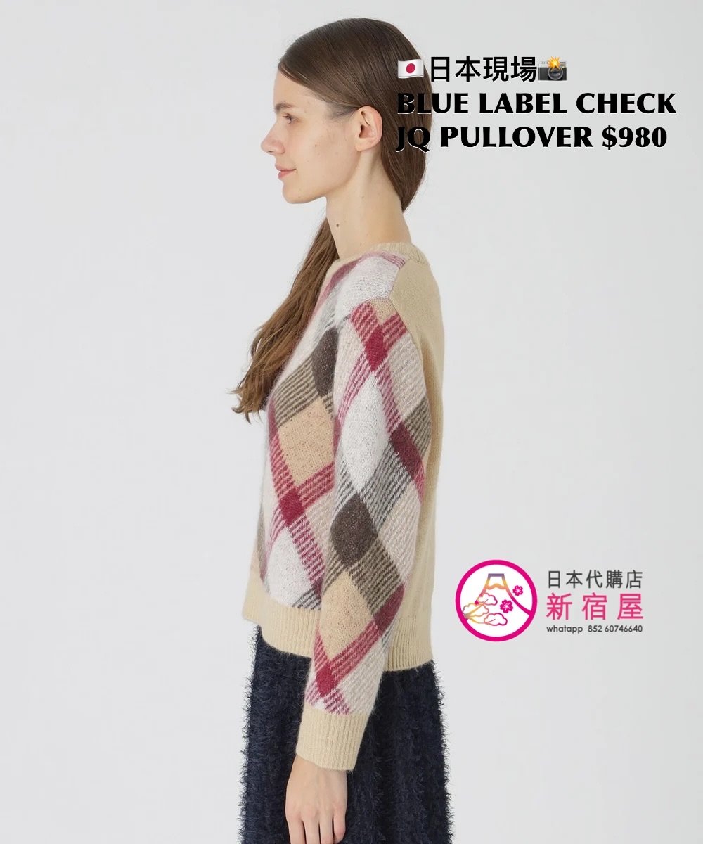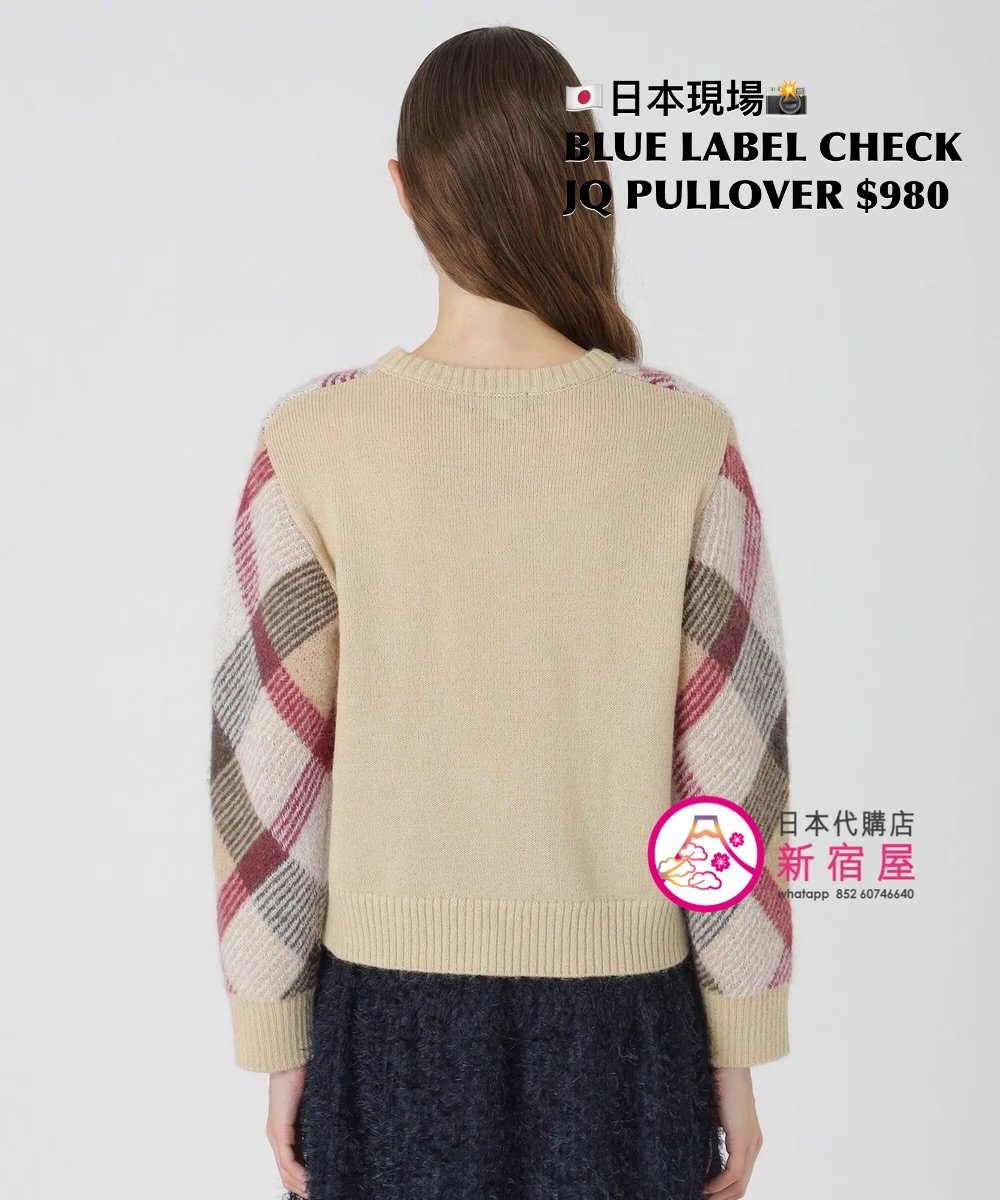 BLUE LABEL CB CHECK JACQUARD PULLOVER SIZE 38,GRAY/ BLUE/ BEIGE,$980 👚參考尺寸 SIZE 38: 胸 99 總丈 54cm
