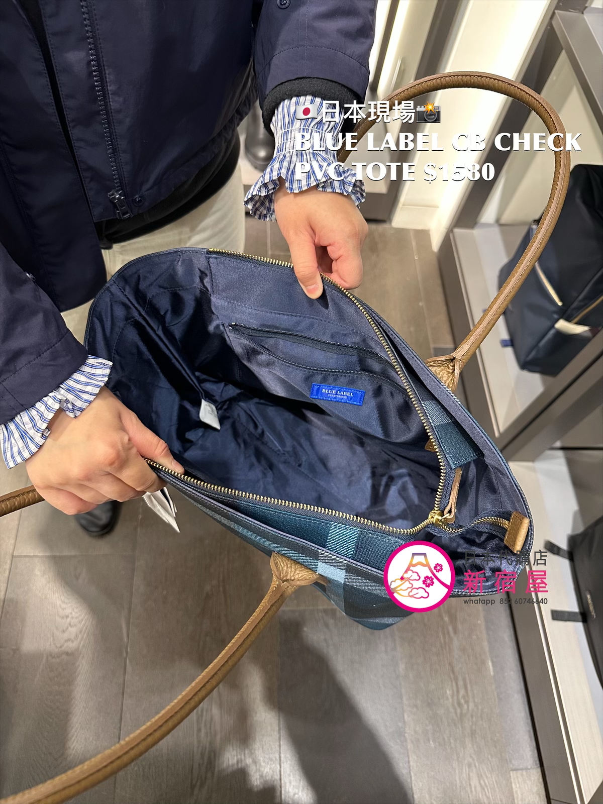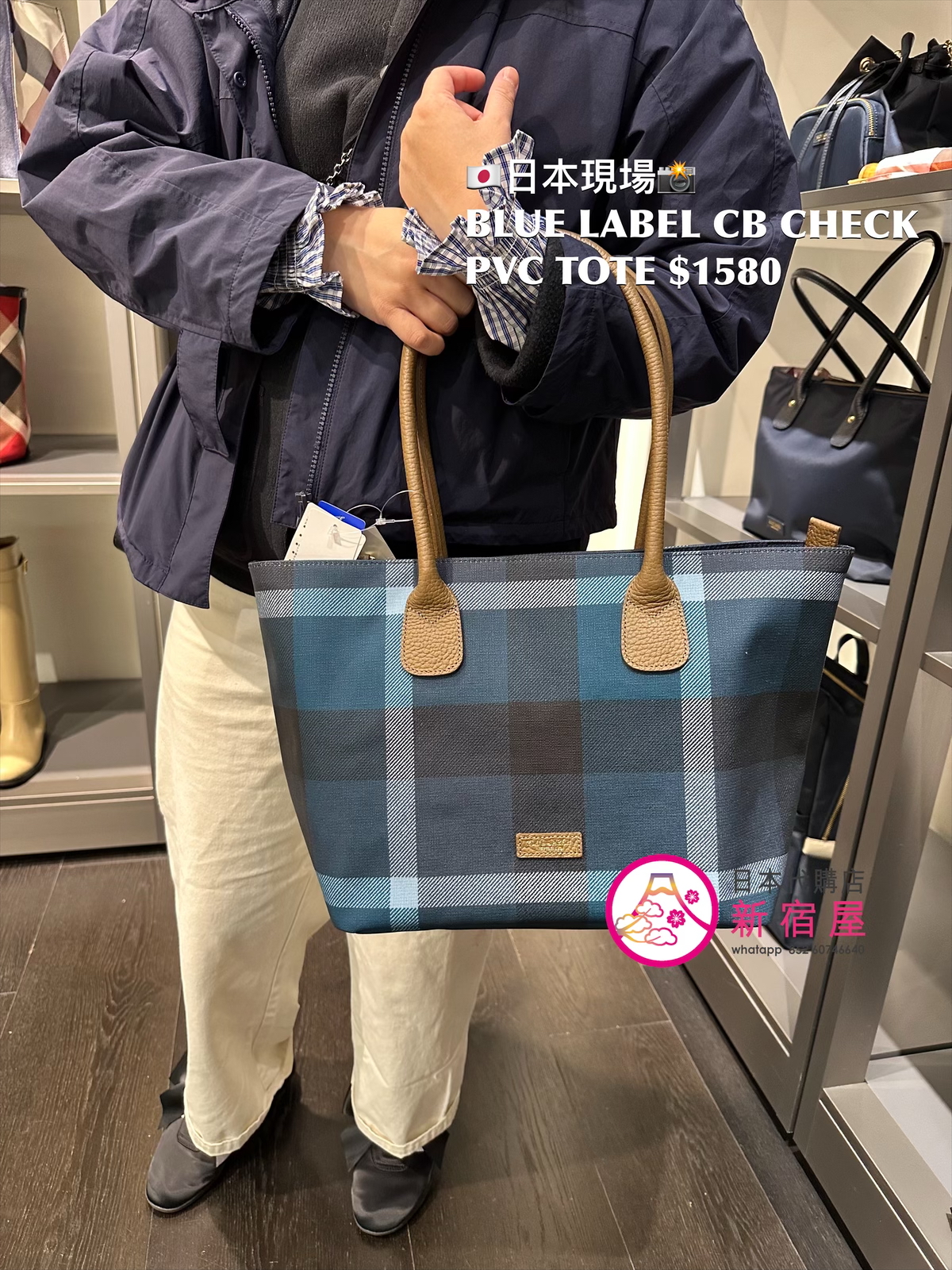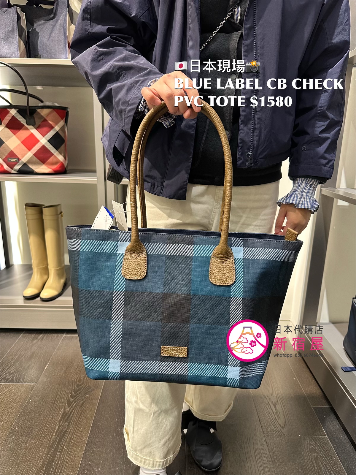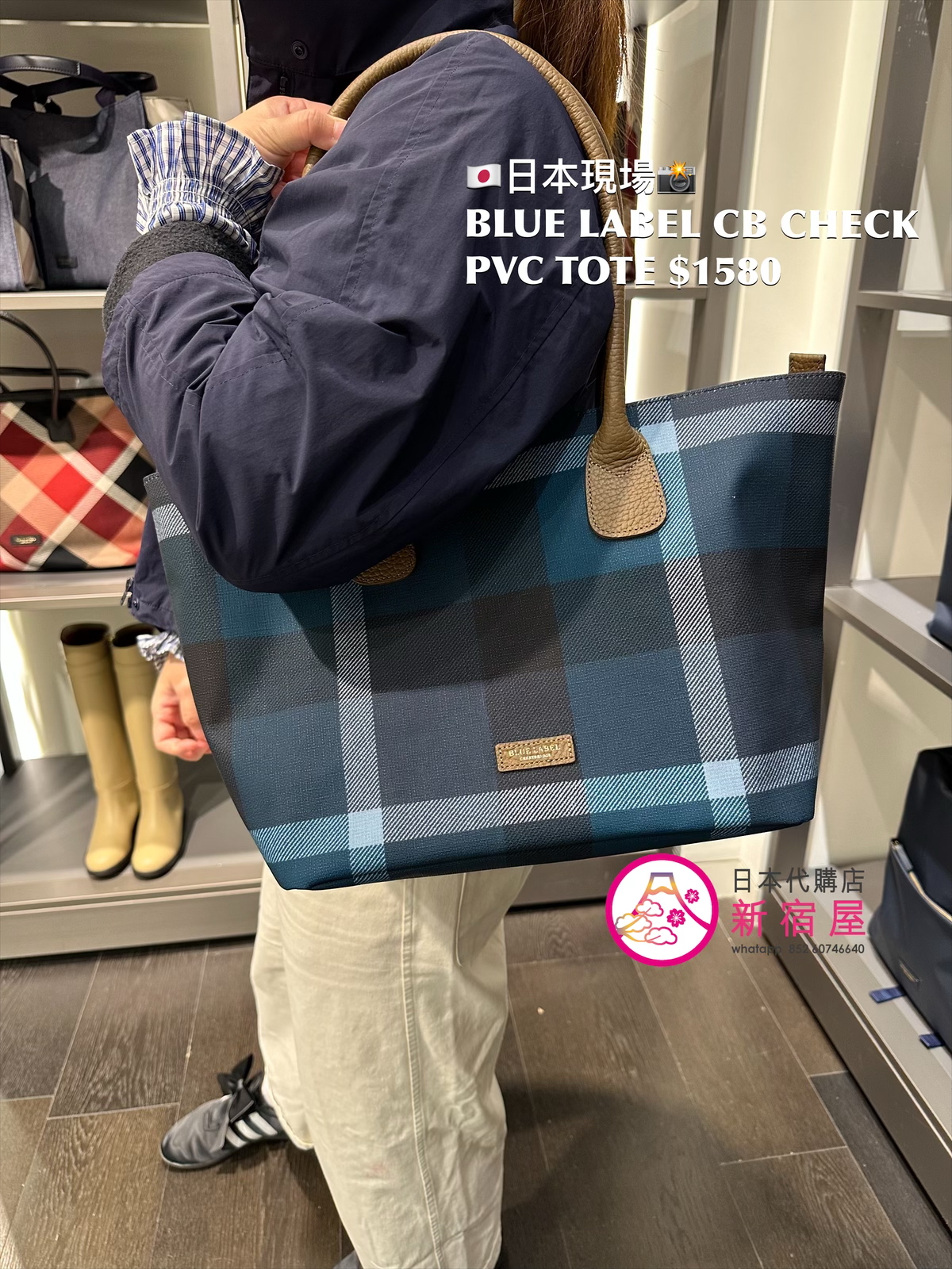 BLUE LABEL CB CHECK PVC TOTE 43.5x16x27cm,DARK NAVY,日本製,$1580