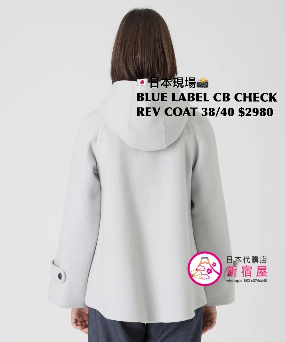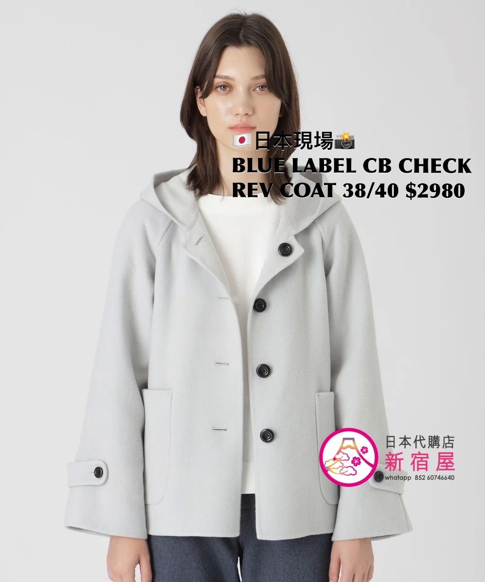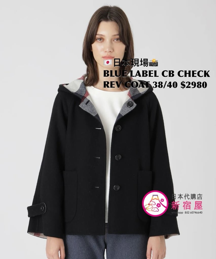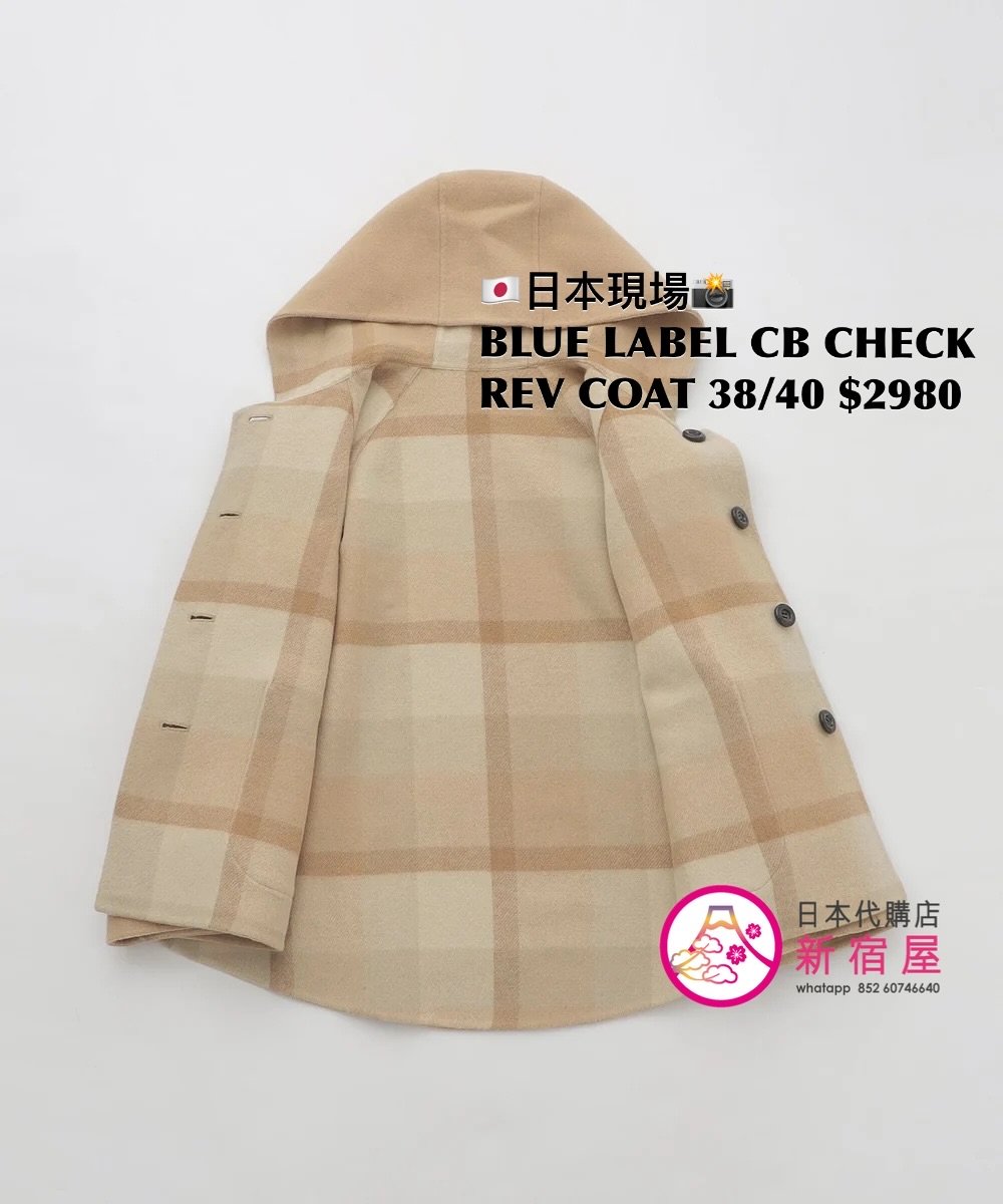 BLUE LABEL CB CHECK REVERSIBLE COAT SIZE 38/40,BLACK/ BEIGE/ GRAY,$2980 👚參考尺寸 SIZE 38: 胸 104 著丈 70cm SIZE 40: 胸 107 著丈 71cm
