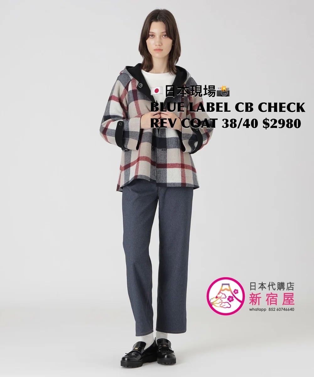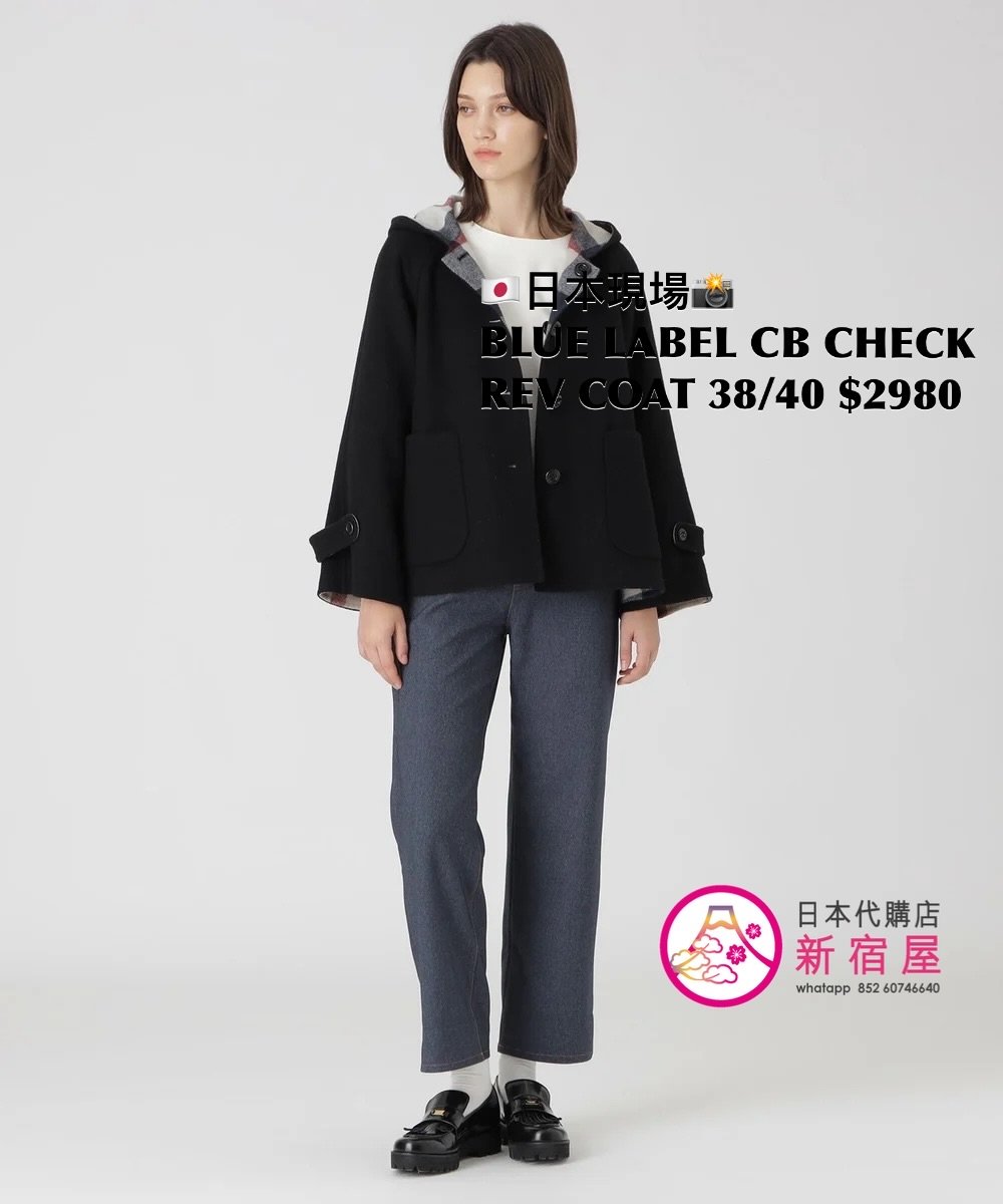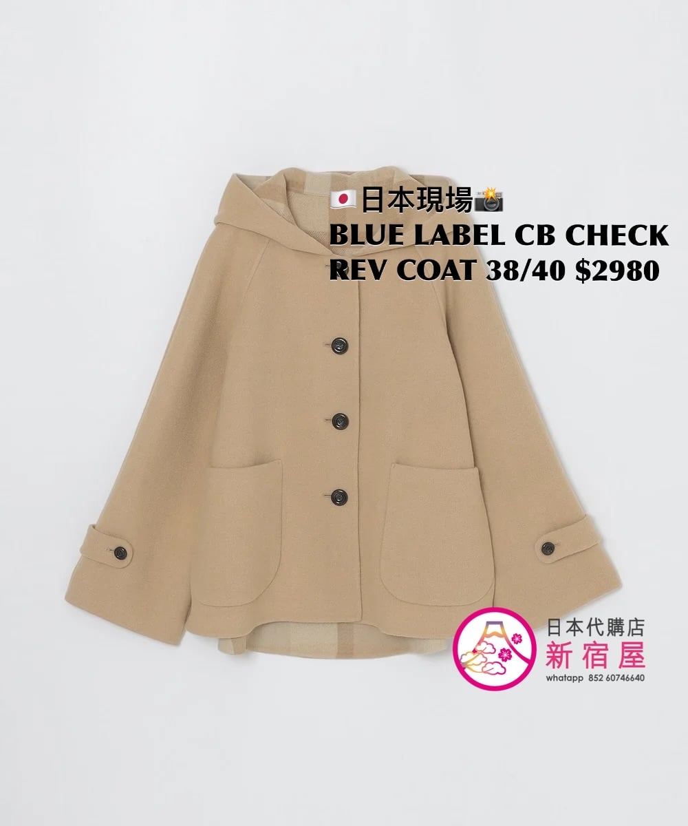 BLUE LABEL CB CHECK REVERSIBLE COAT SIZE 38/40,BLACK/ BEIGE/ GRAY,$2980 👚參考尺寸 SIZE 38: 胸 104 著丈 70cm SIZE 40: 胸 107 著丈 71cm