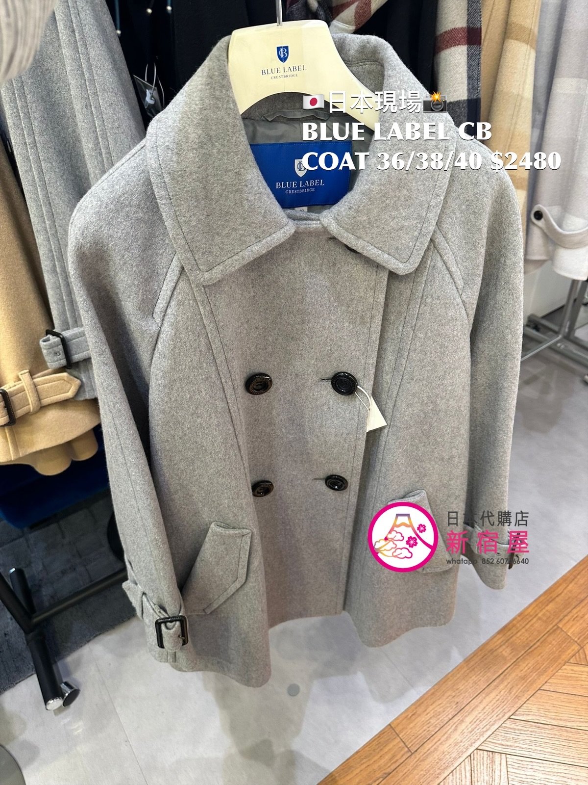 BLUE LABEL CB COAT SIZE 36/38/40,GRAY/ BEIGE,$2480