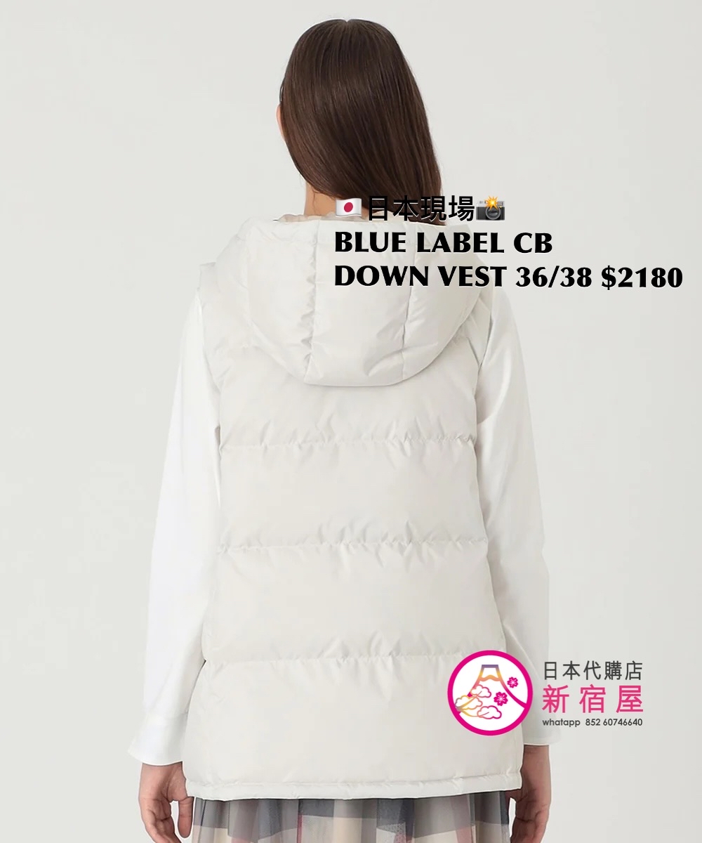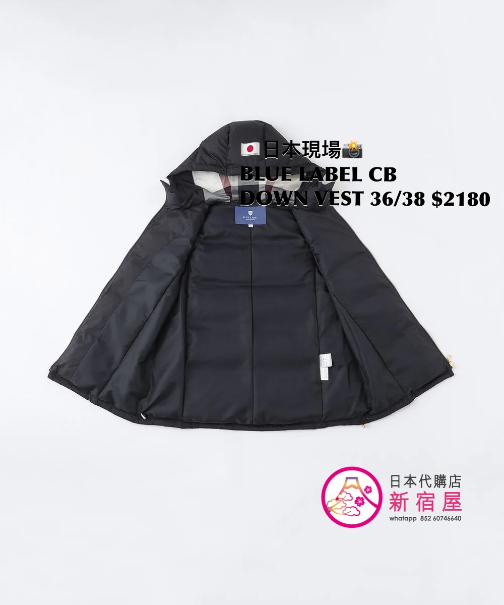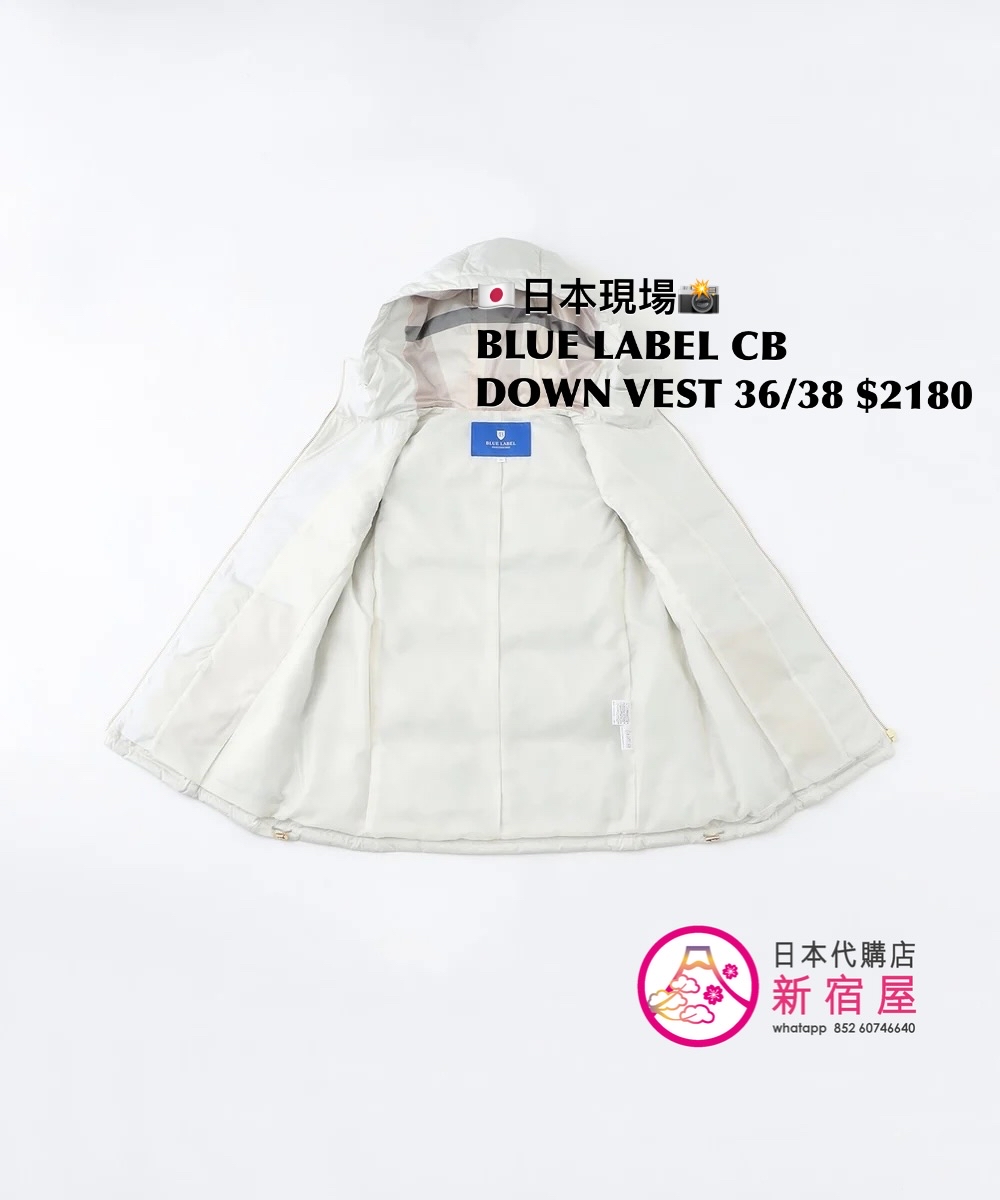 BLUE LABEL CB DOWN VEST SIZE 36/38,BLACK/ WHITE/ NAVY,$2180 👚參考尺寸 SIZE 36: 胸 100 著丈 63cm SIZE 38: 胸 100 著丈 67cm