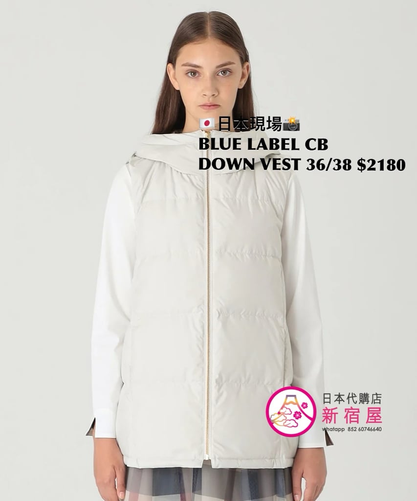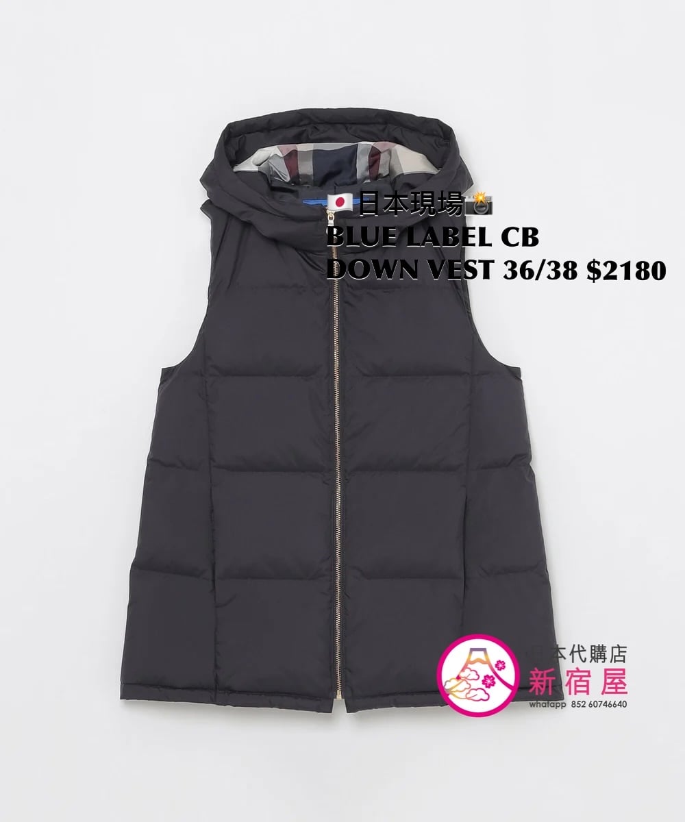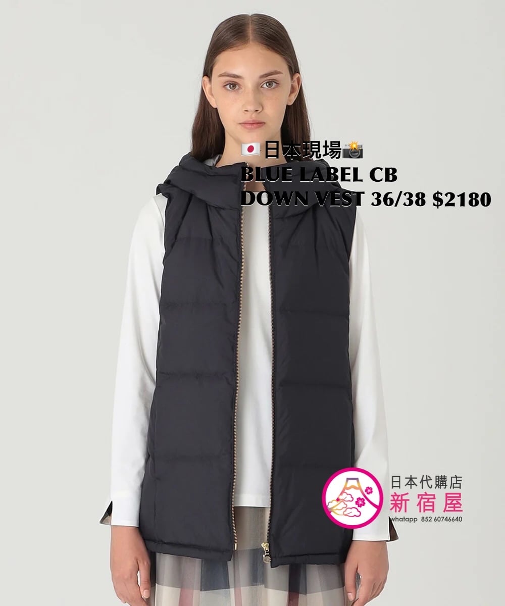 BLUE LABEL CB DOWN VEST SIZE 36/38,BLACK/ WHITE/ NAVY,$2180 👚參考尺寸 SIZE 36: 胸 100 著丈 63cm SIZE 38: 胸 100 著丈 67cm