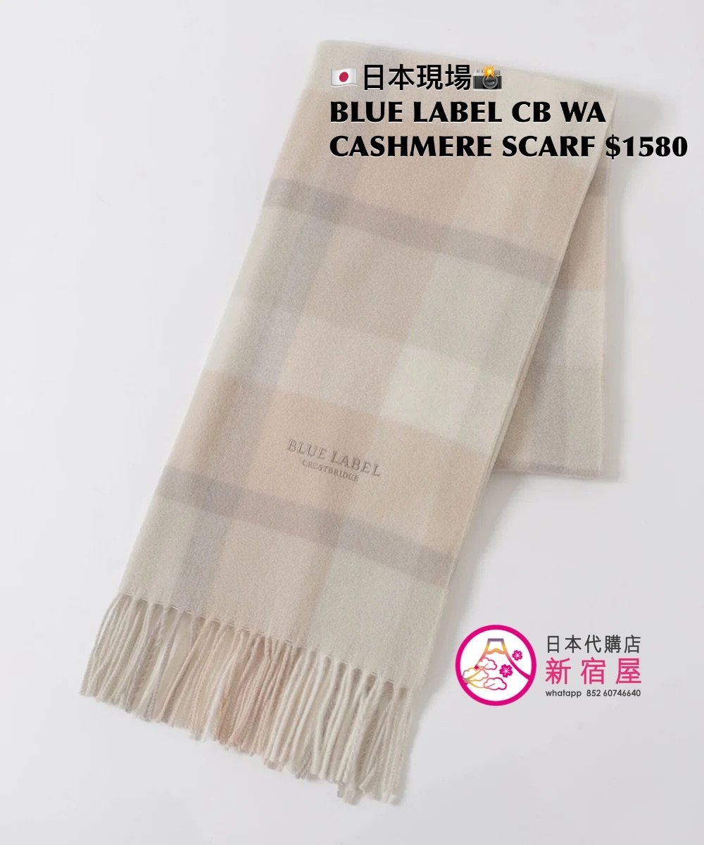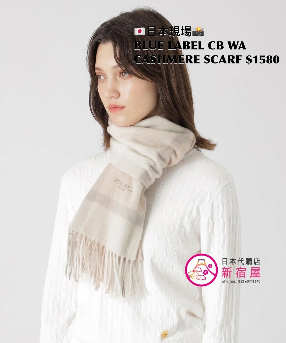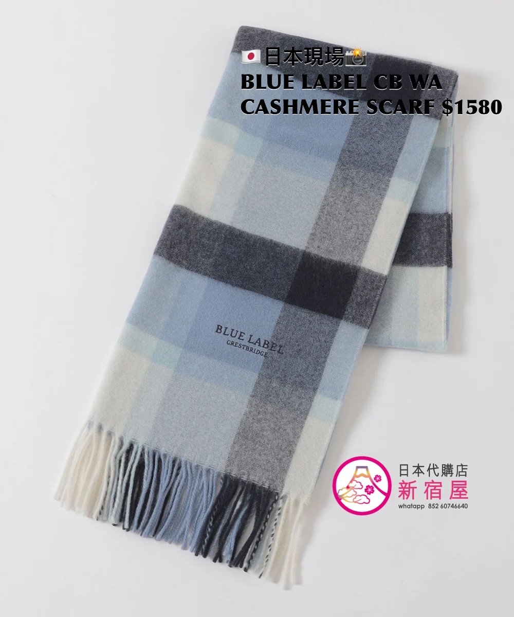 BLUE LABEL CB WASHABLE CASHMERE SCARF 156x47.5cm,100% CASHMERE,日本製,$1580