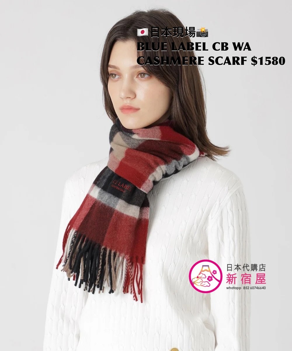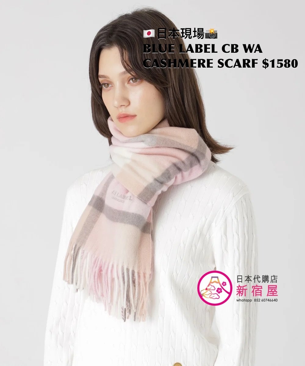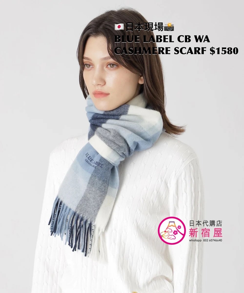BLUE LABEL CB WASHABLE CASHMERE SCARF 156x47.5cm,100% CASHMERE,日本製,$1580