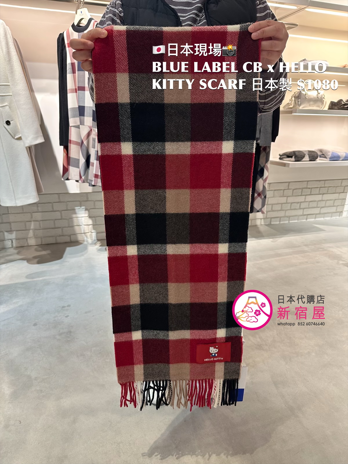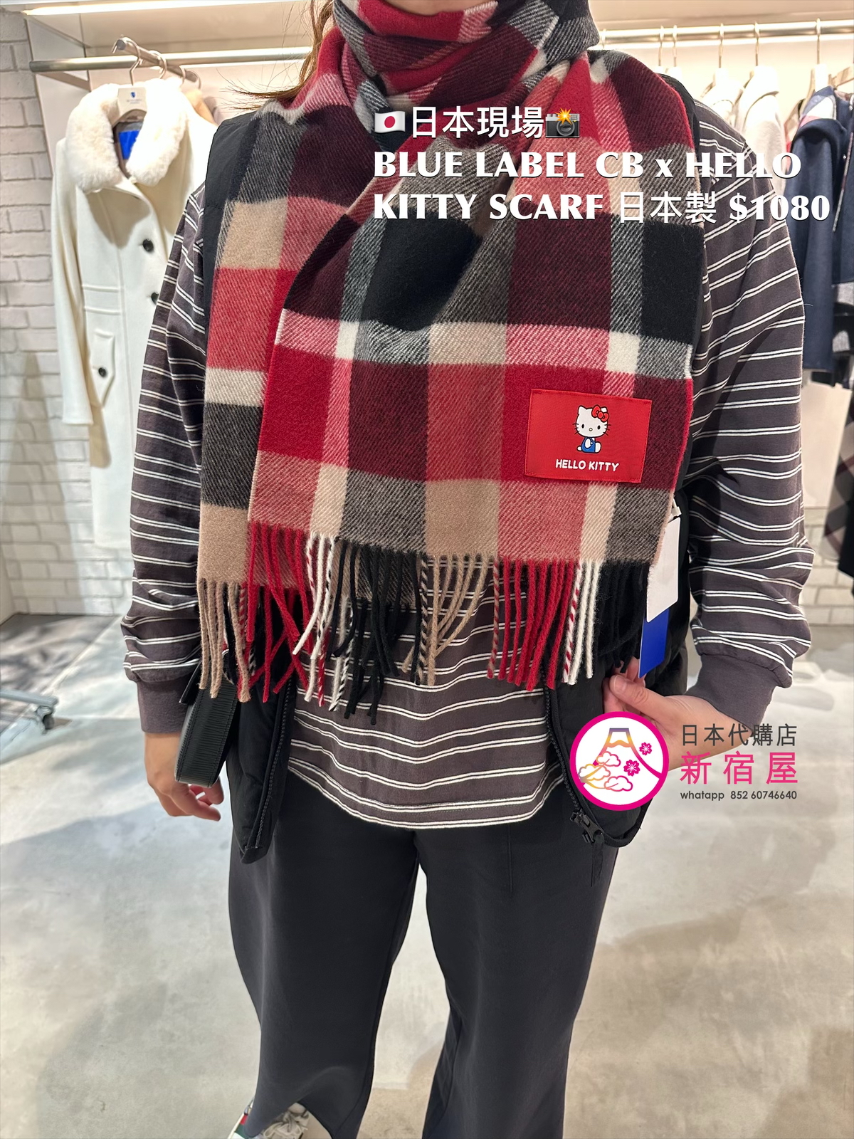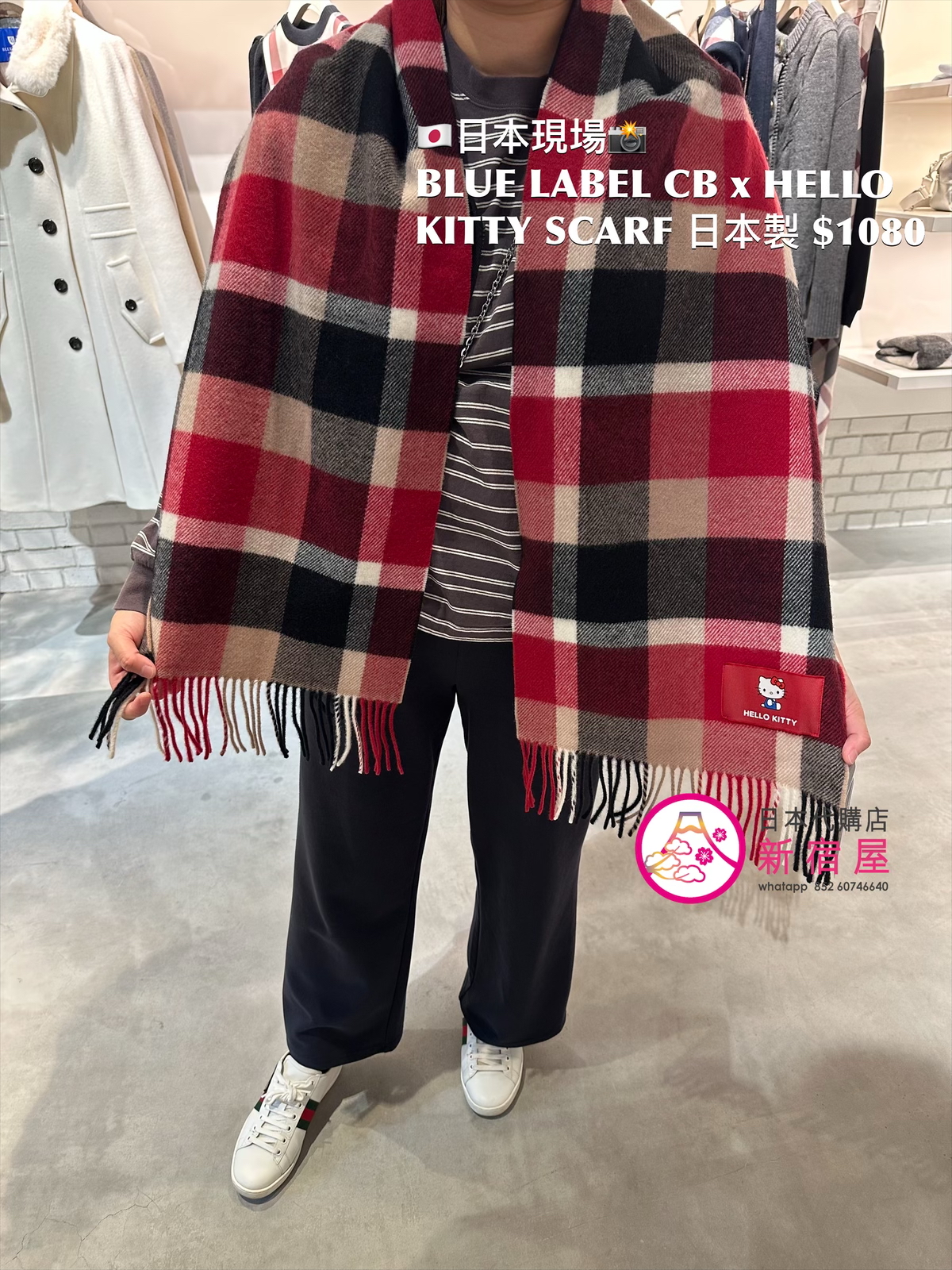 BLUE LABEL CB x HELLO KITTY SCARF 90% WOOL,10% CASHMERE,日本製,$1080