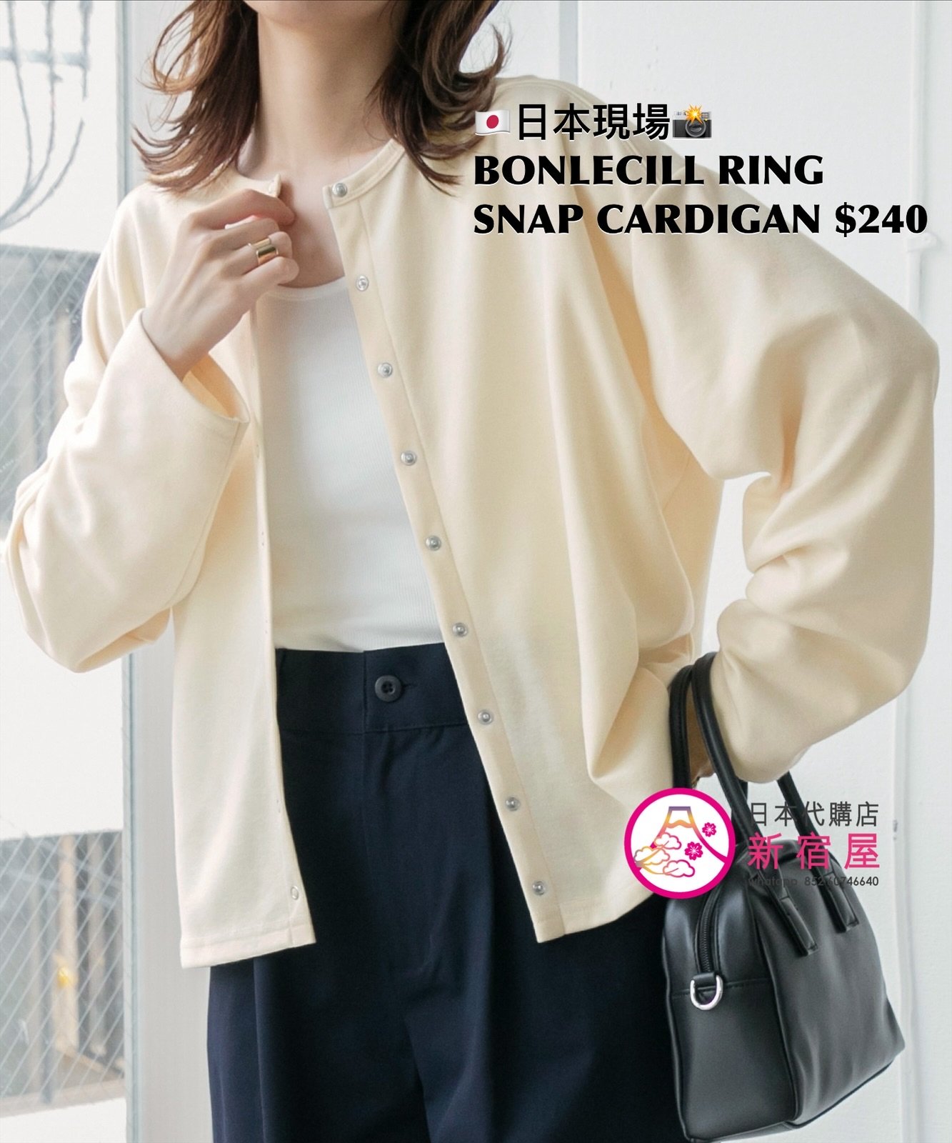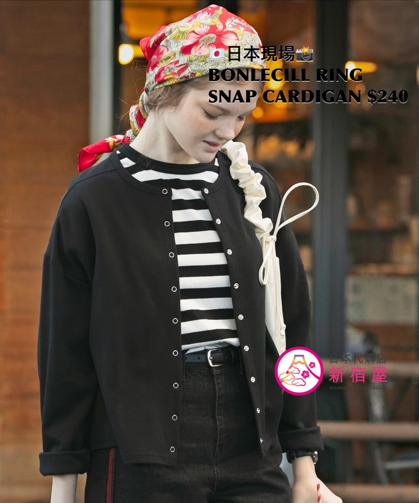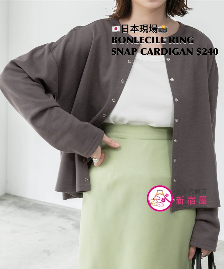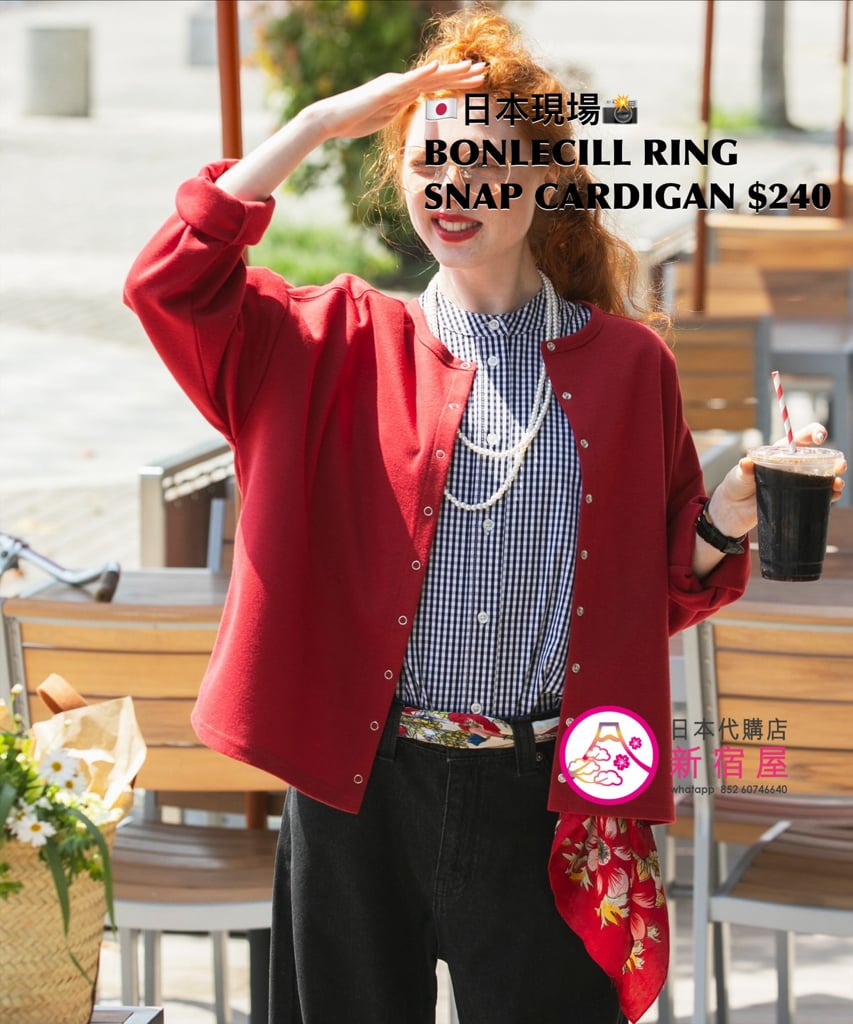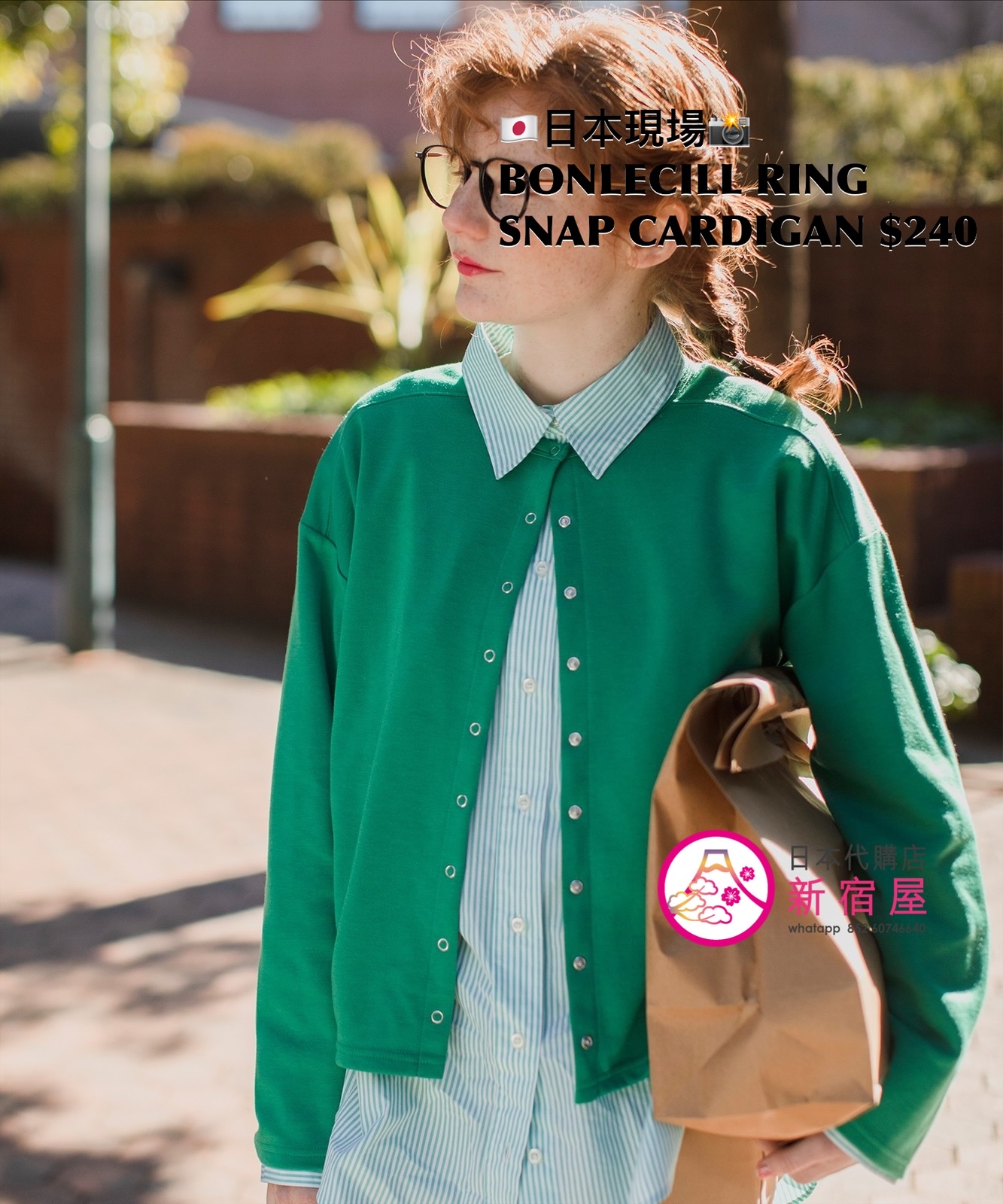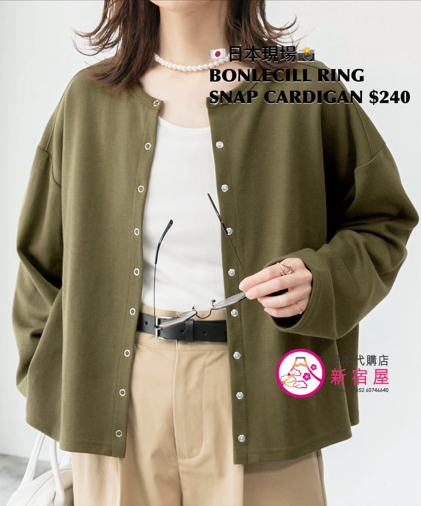 BONLECILL RING SNAP CARDIGAN FREE SIZE,RED/ IVORY/ BLACK/ CHARCOAL GRAY/ GREEN/ KAHKI/ NAVY/ PINK,$240 👚參考尺寸 FREE SIZE: 身幅 59 著丈 52.5cm
