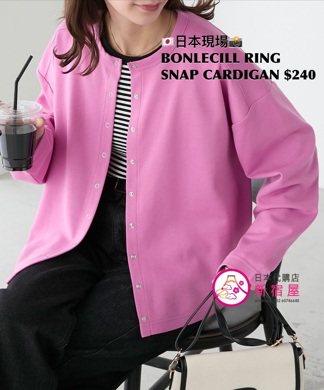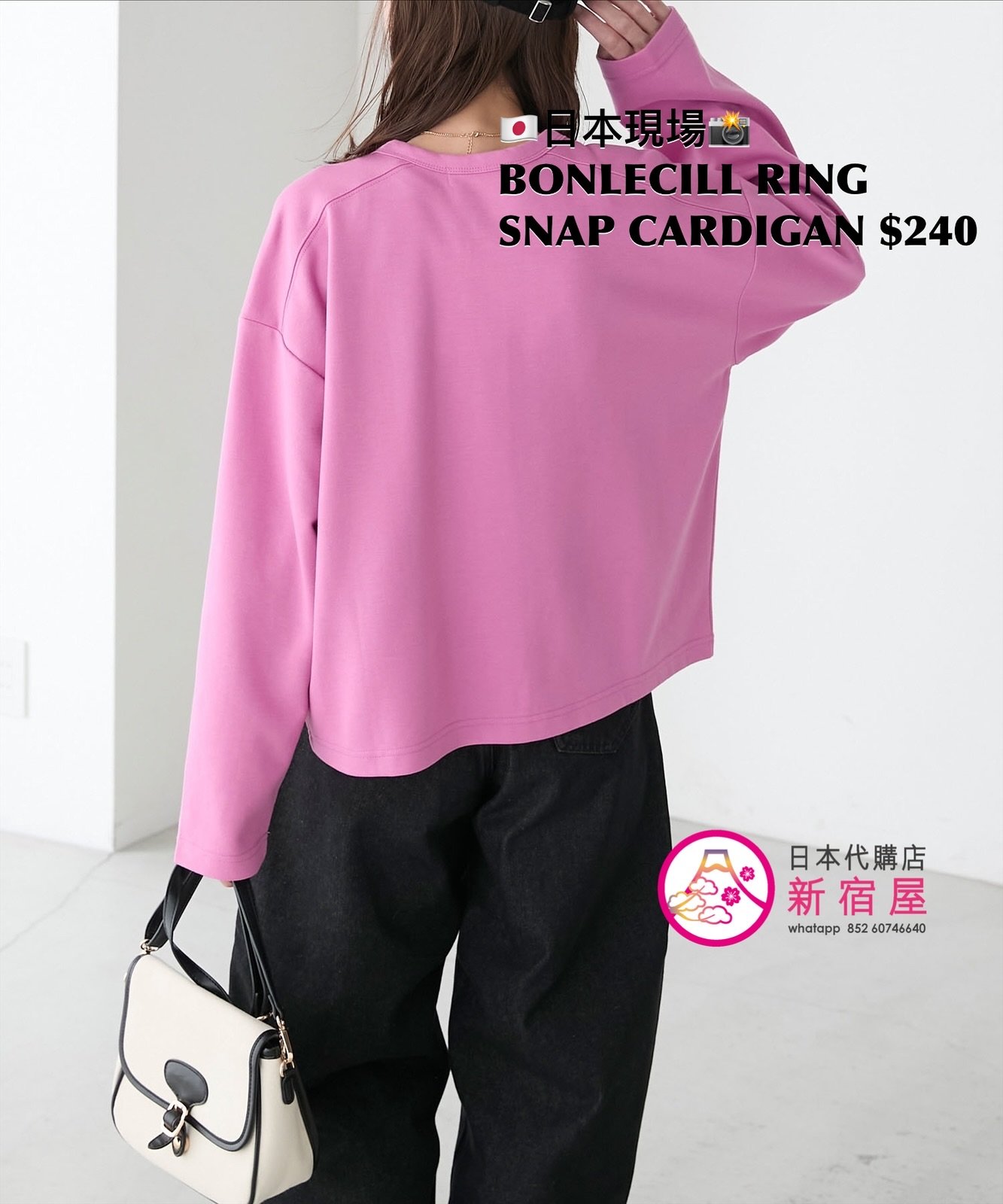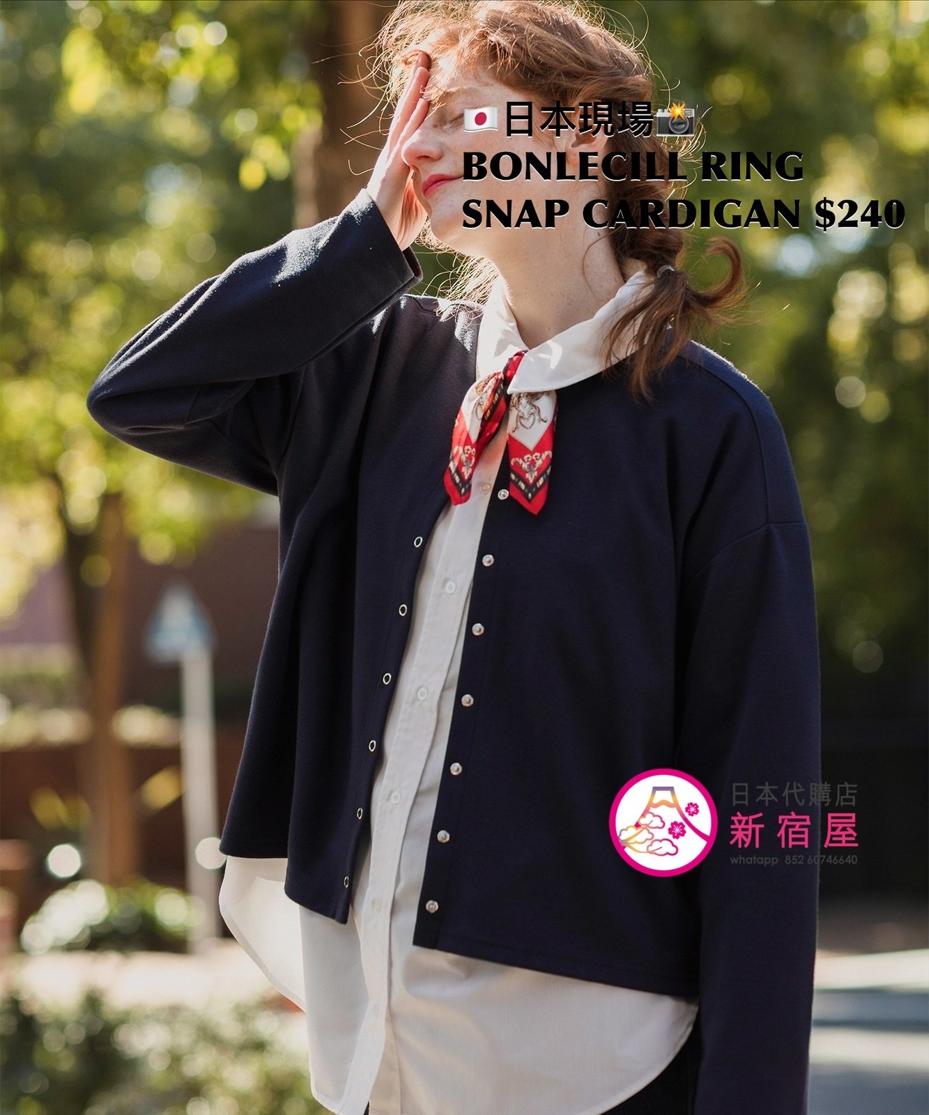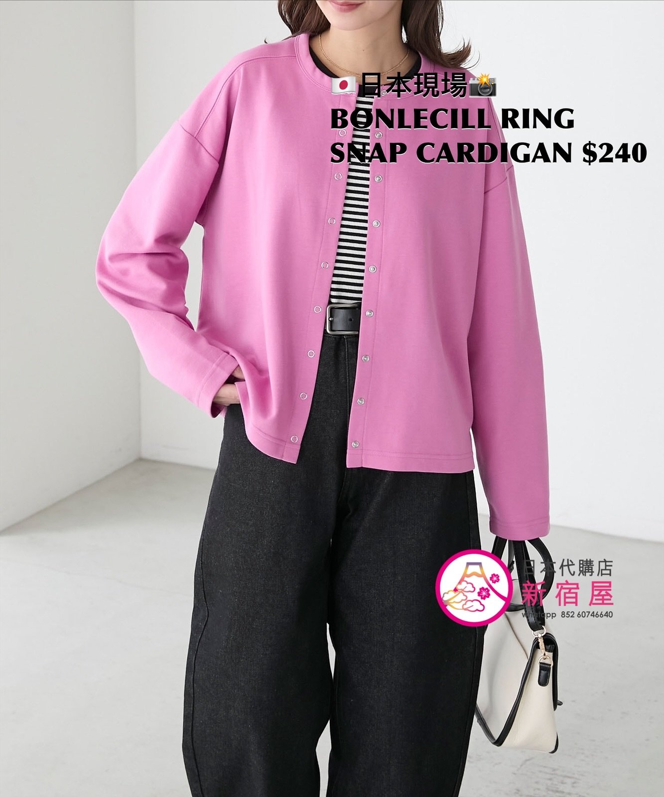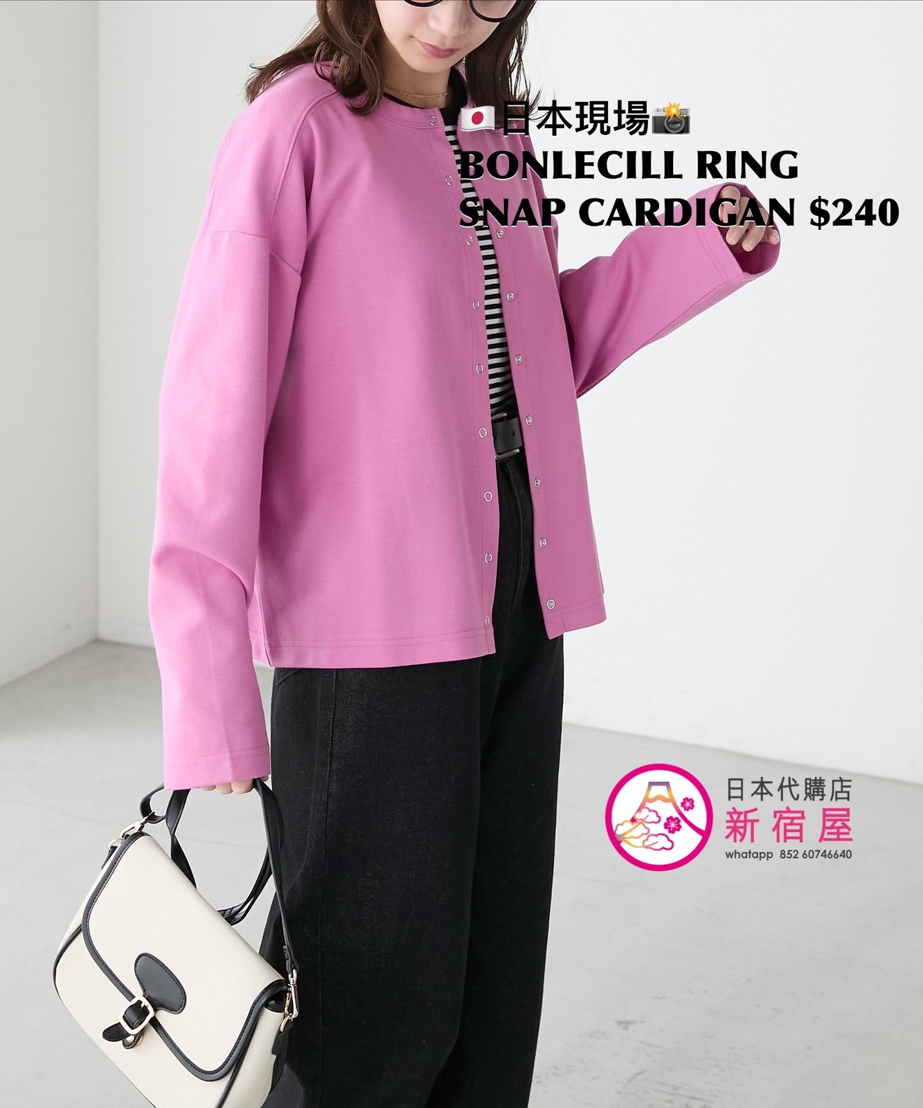 BONLECILL RING SNAP CARDIGAN FREE SIZE,RED/ IVORY/ BLACK/ CHARCOAL GRAY/ GREEN/ KAHKI/ NAVY/ PINK,$240 👚參考尺寸 FREE SIZE: 身幅 59 著丈 52.5cm