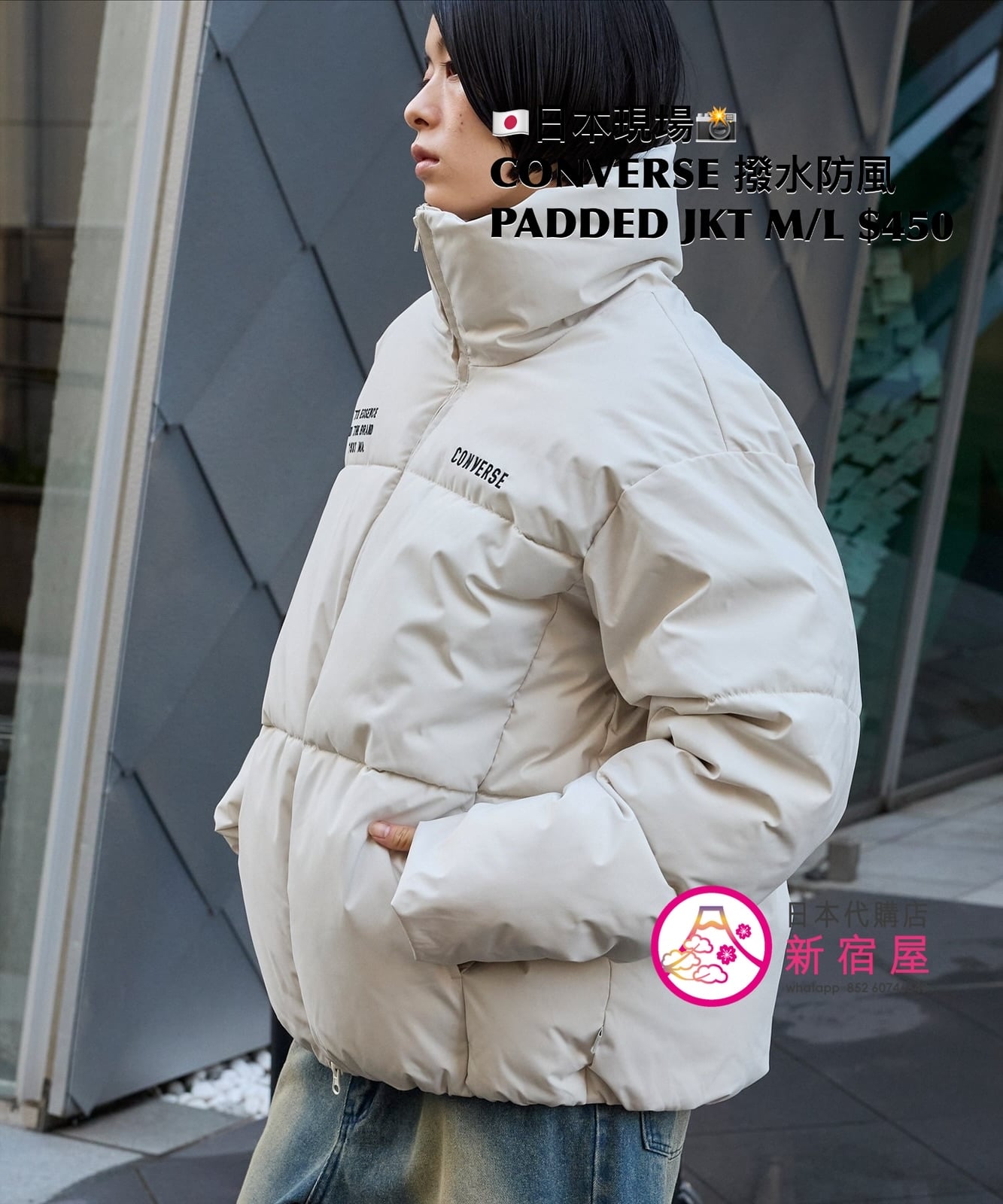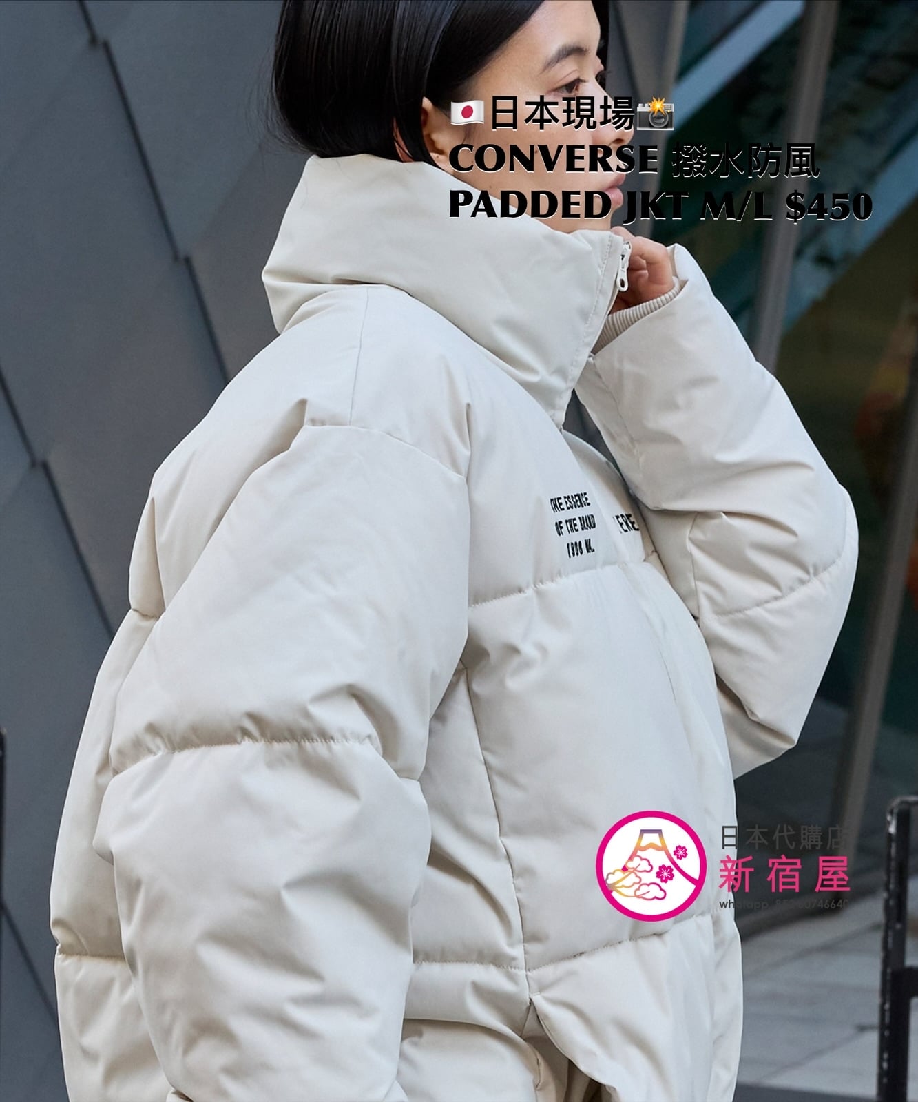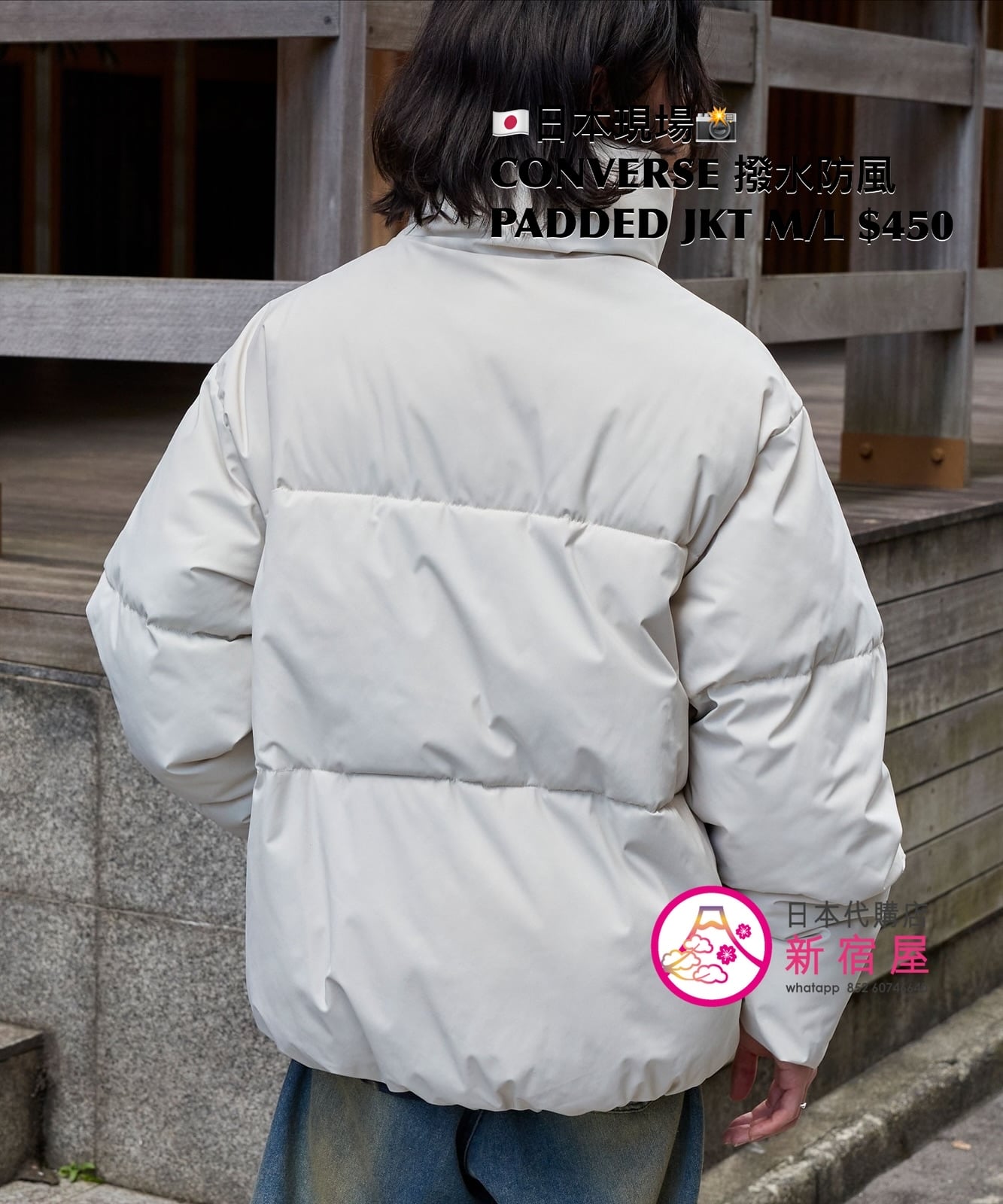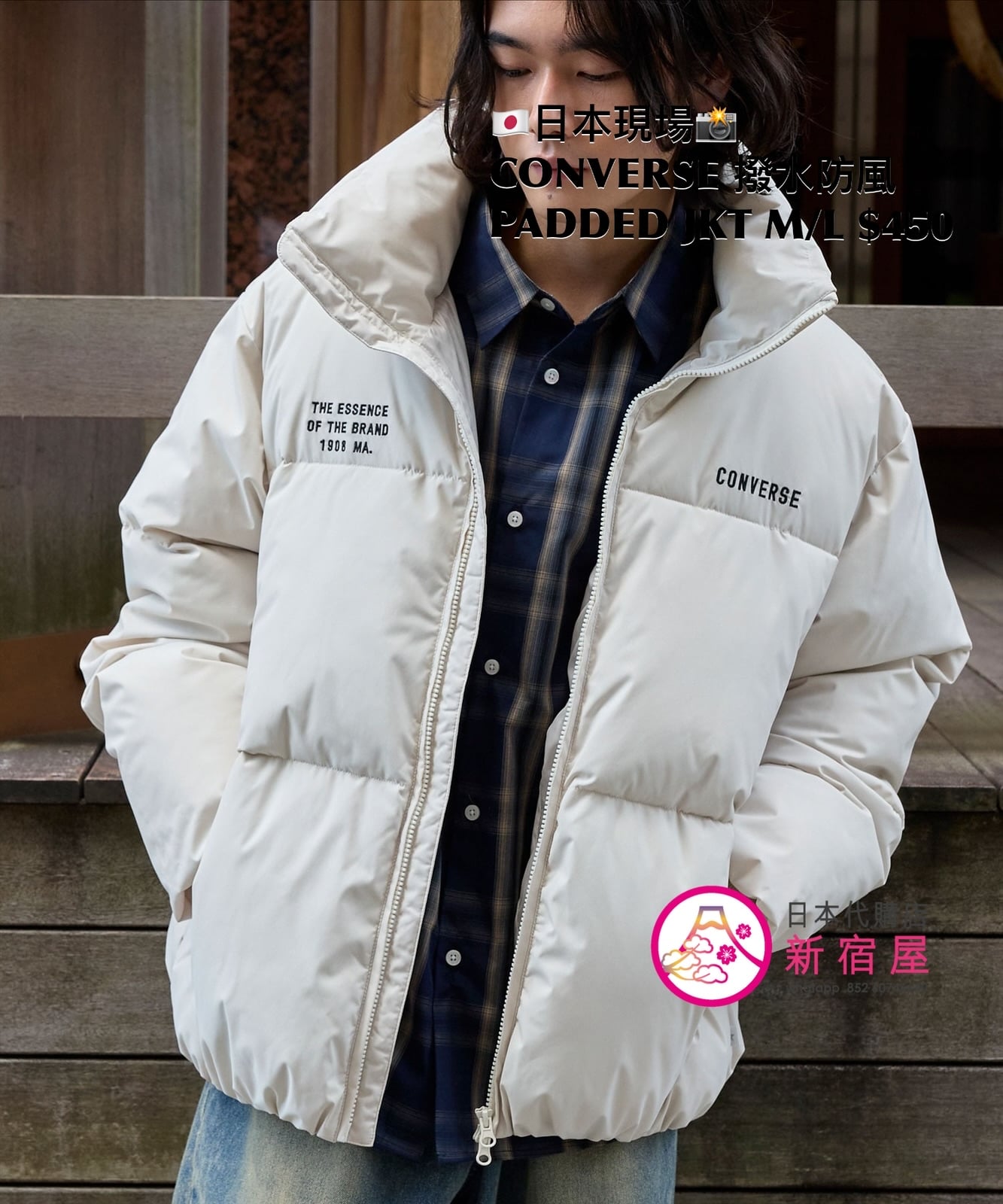 CONVERSE 撥水防風 PADDED JACKET SIZE M/L,BLACK/ IVORY,$450 👕👚參考尺寸 SIZE M: 身幅 67 著丈 69cm SIZE L: 身幅 69 著丈 71cm