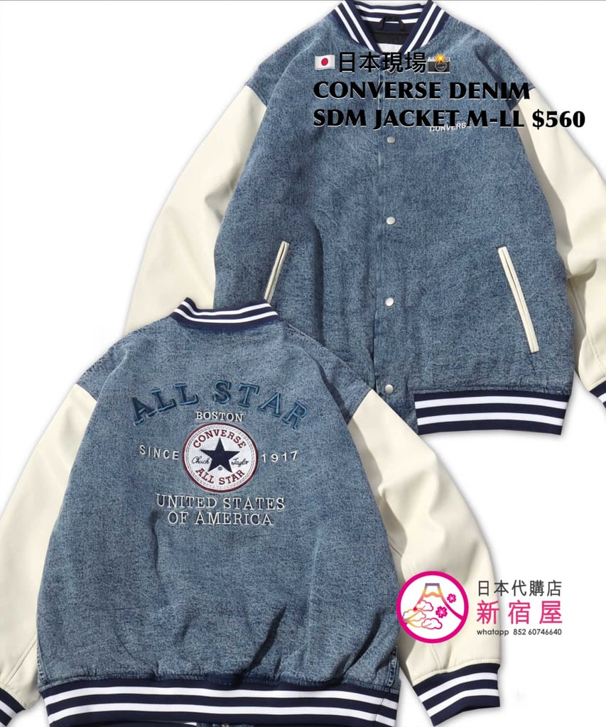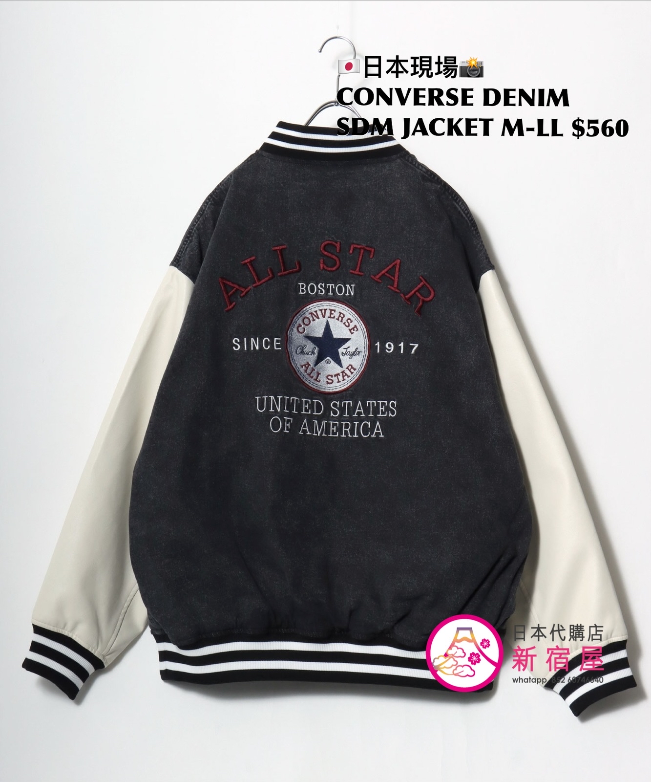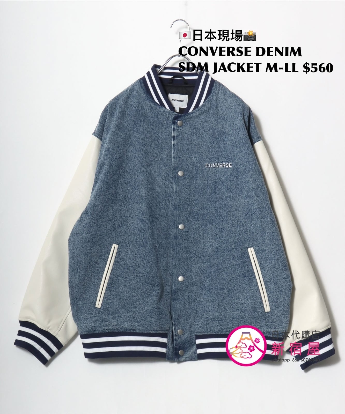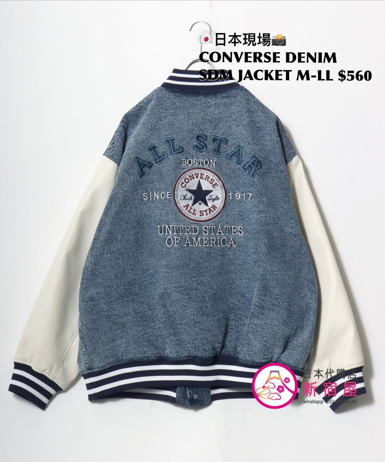 CONVERSE DENIM STADIUM JACKET SIZE M/L/LL,BLACK/ BLUE,$560 🥼🧥參考尺寸 SIZE M: 身幅 68 著丈 70cm SIZE L: 身幅 70 著丈 72cm SIZE LL: 身幅 72 著丈 74cm