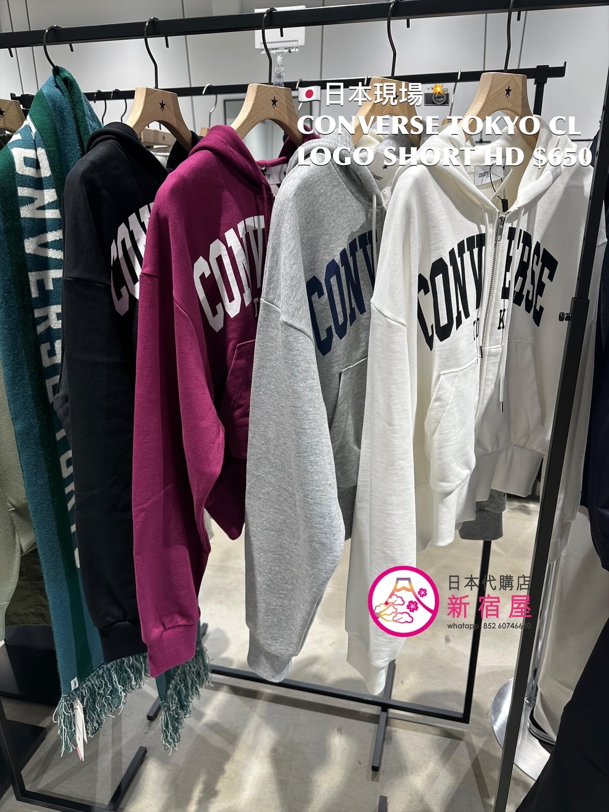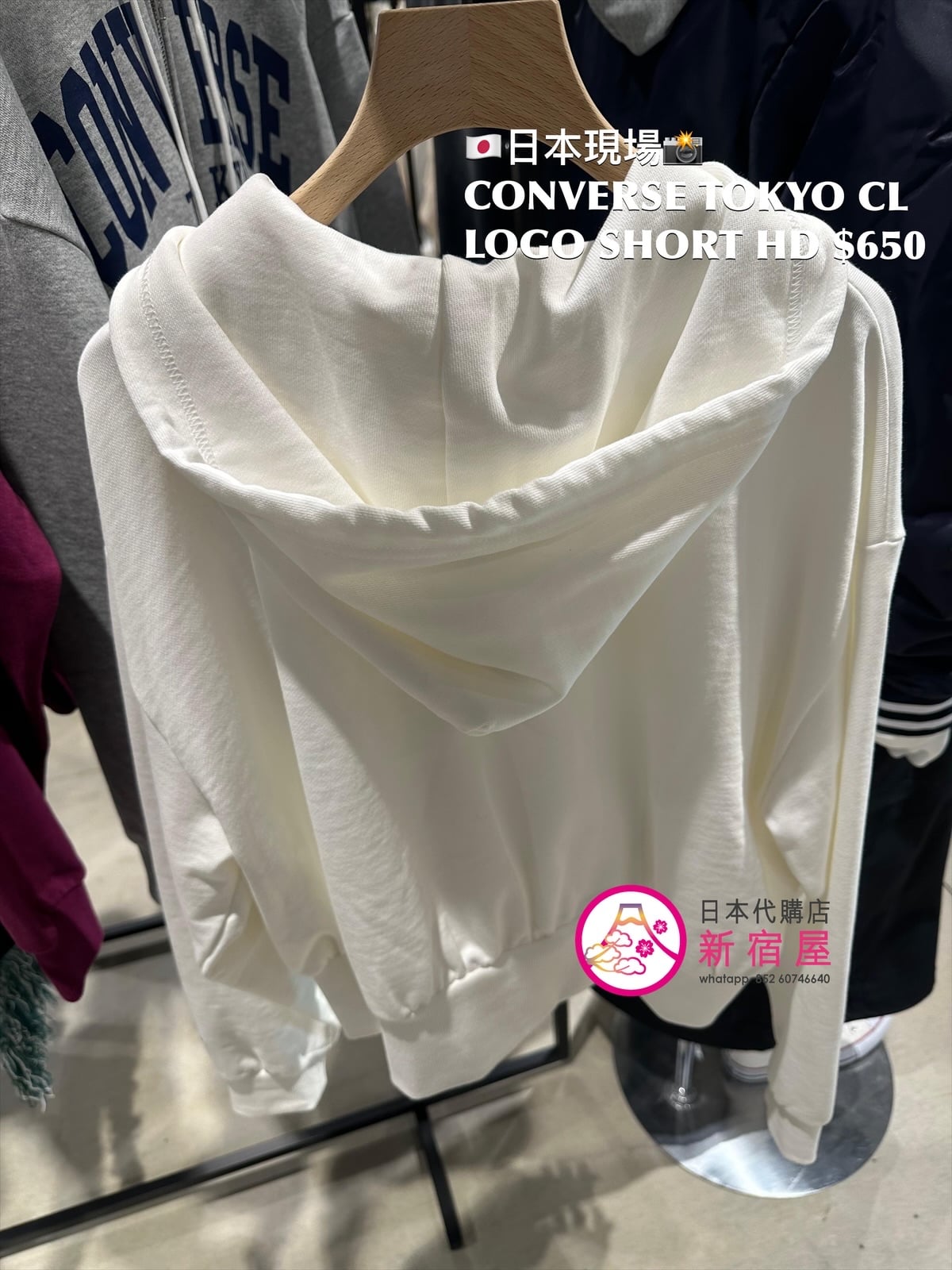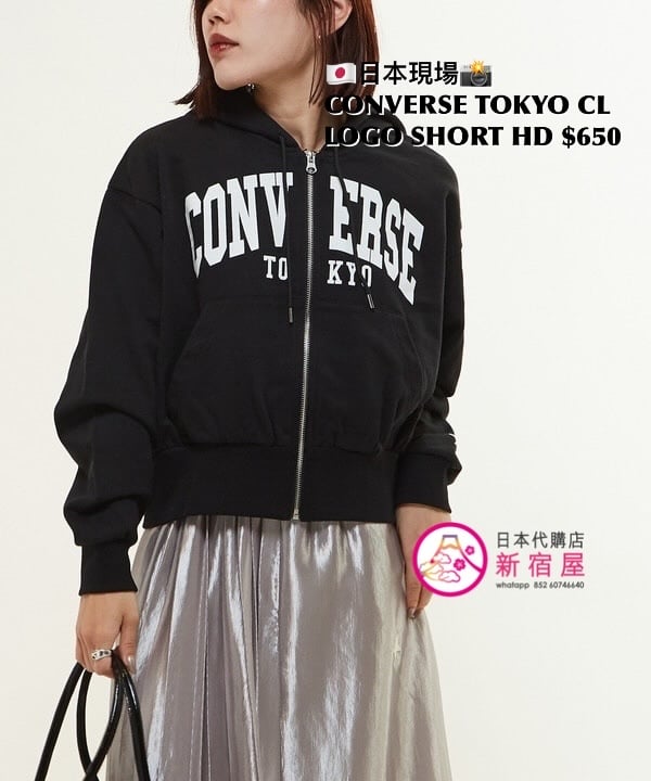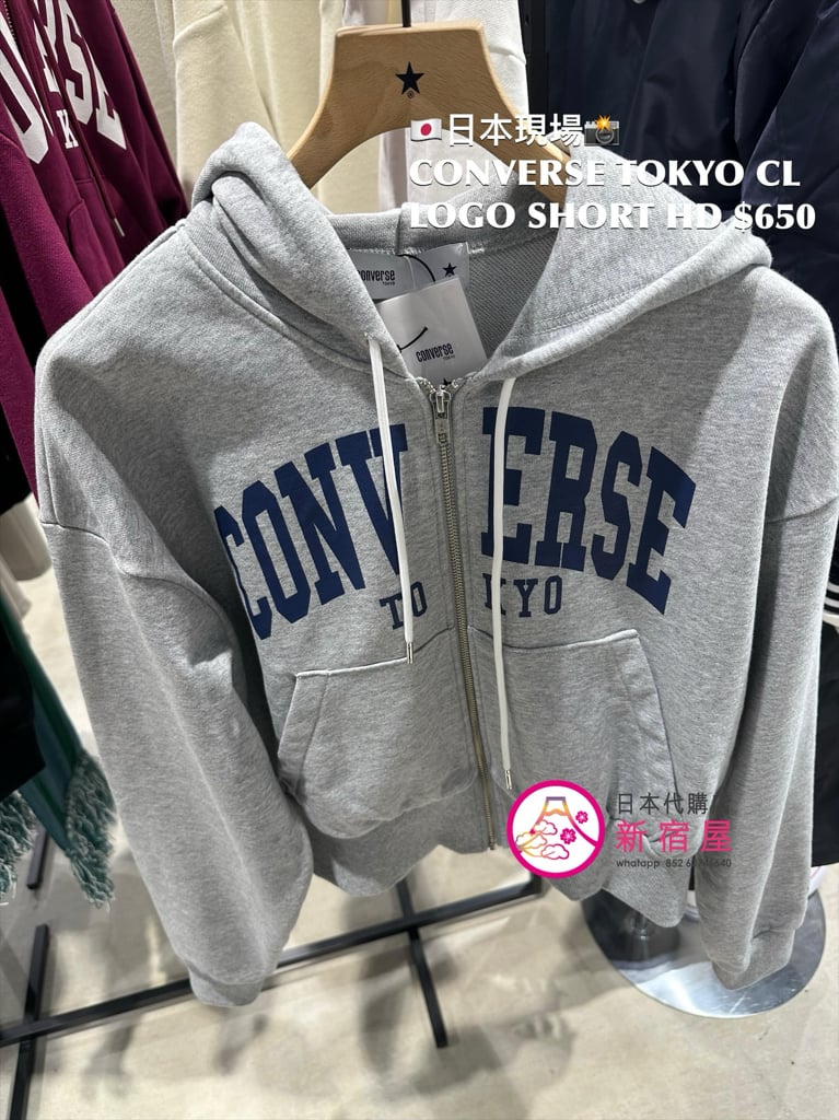 CONVERSE TOKYO COLLEGE LOGO SHORT HOODIE FREE SIZE,BLACK/ WHITE/ HEATHER GRAY/ BORDEAUX,$650 👚參考尺寸 FREE SIZE: 身幅 57 著丈 49cm
