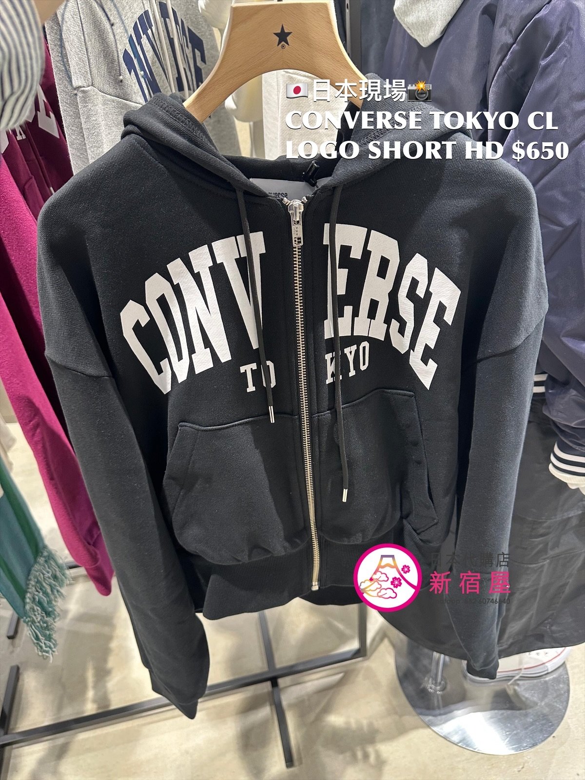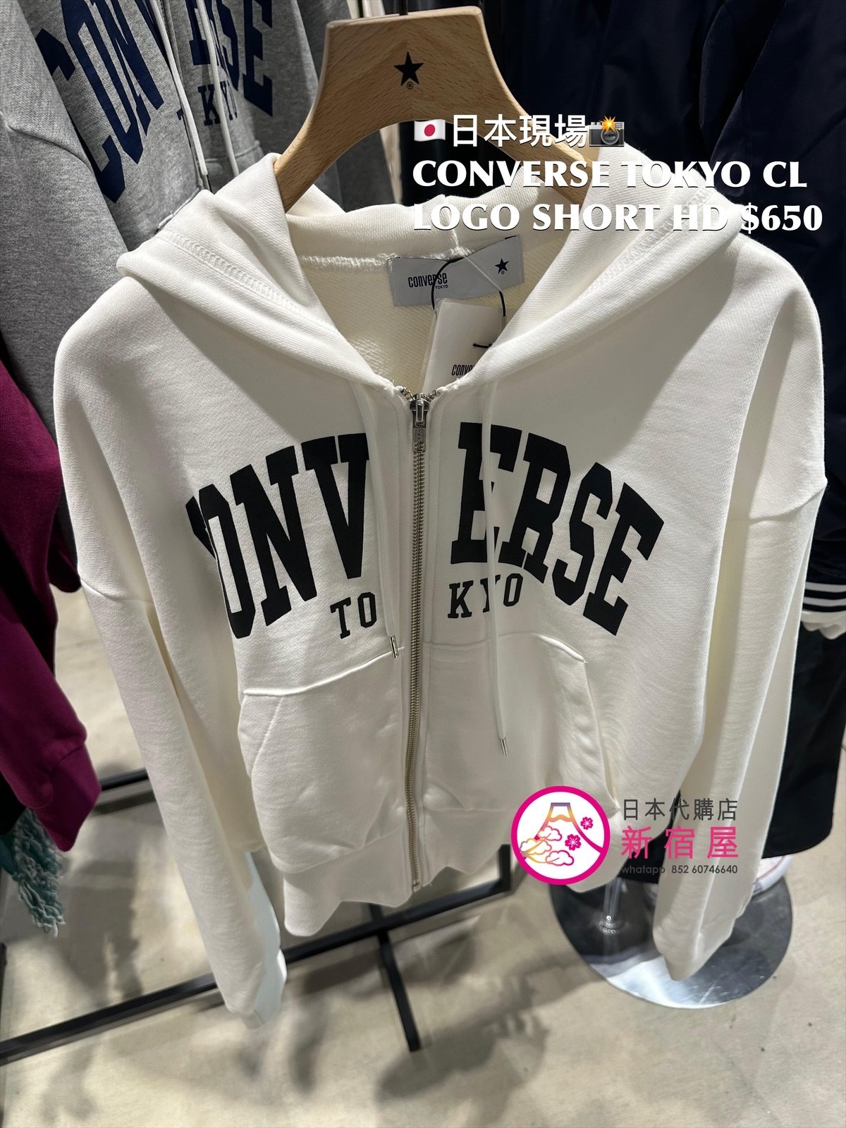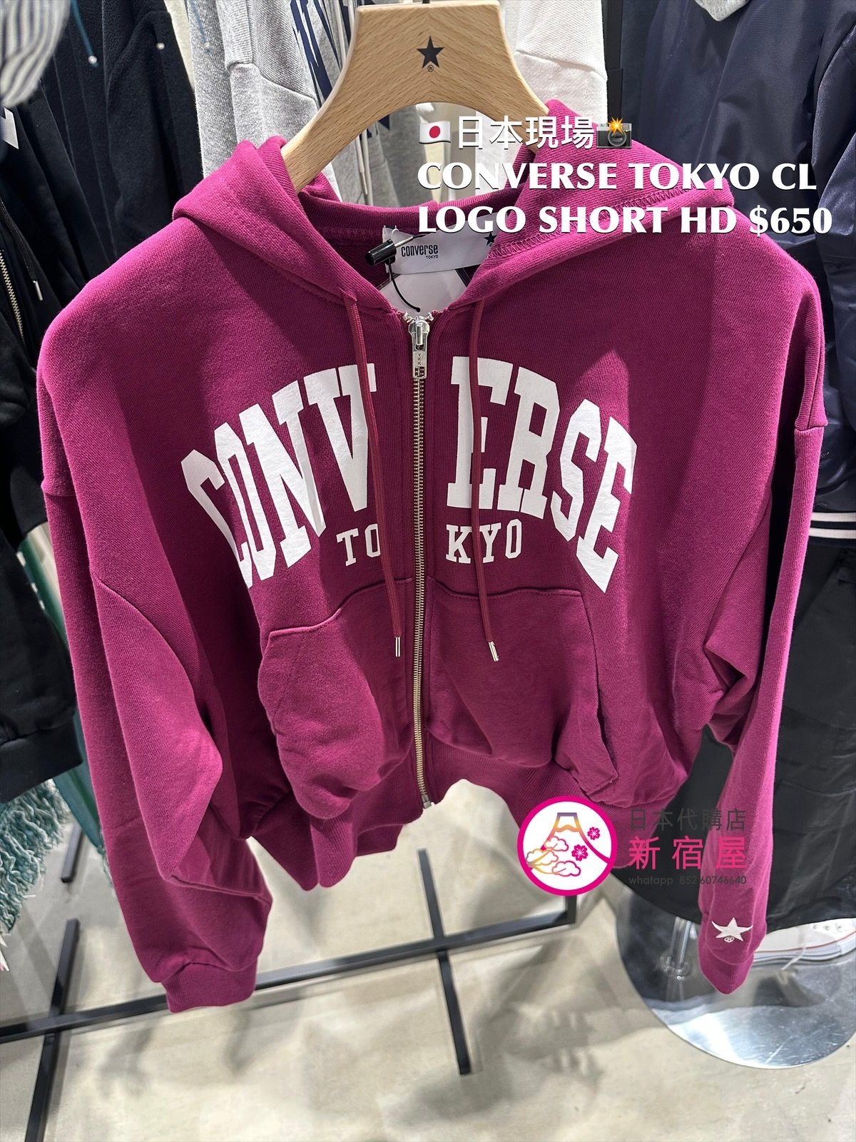 CONVERSE TOKYO COLLEGE LOGO SHORT HOODIE FREE SIZE,BLACK/ WHITE/ HEATHER GRAY/ BORDEAUX,$650 👚參考尺寸 FREE SIZE: 身幅 57 著丈 49cm