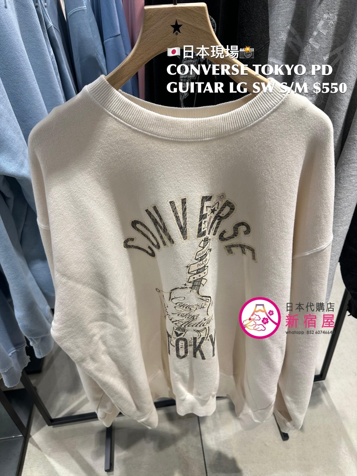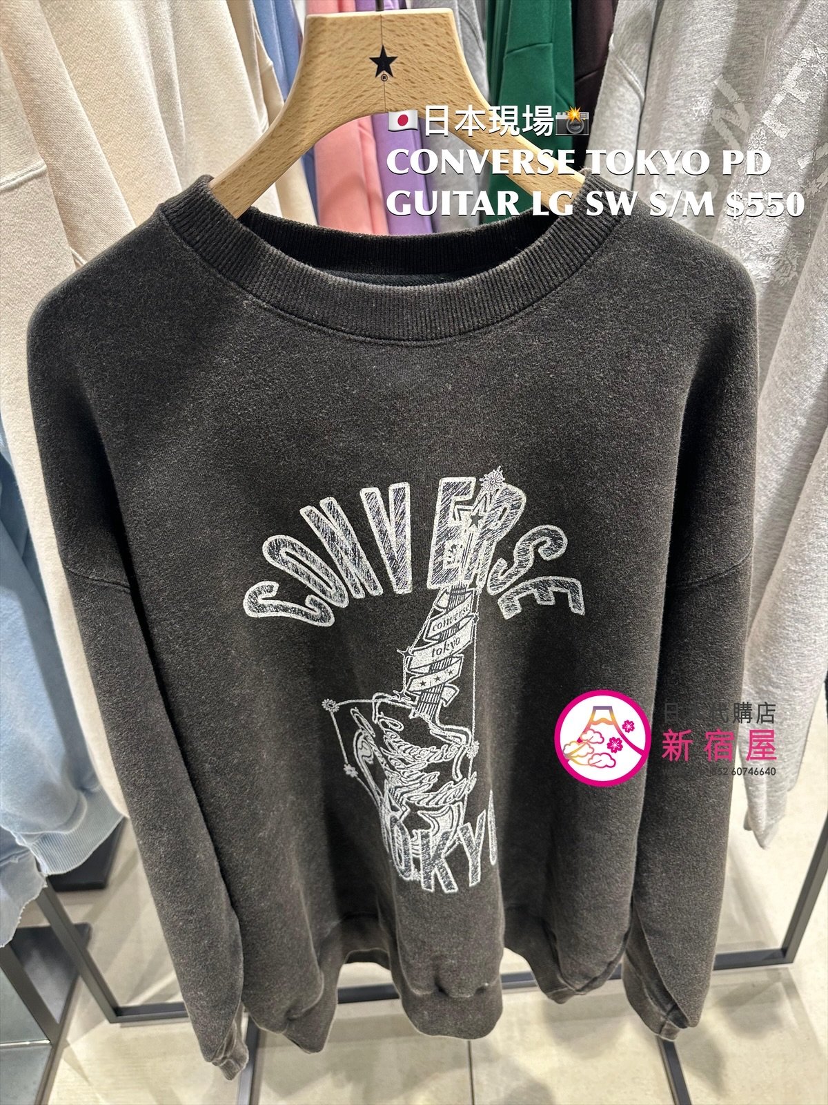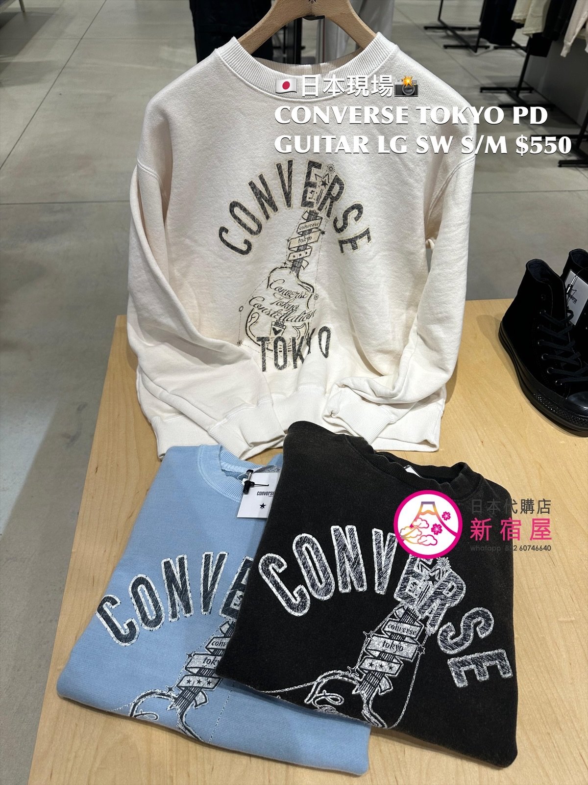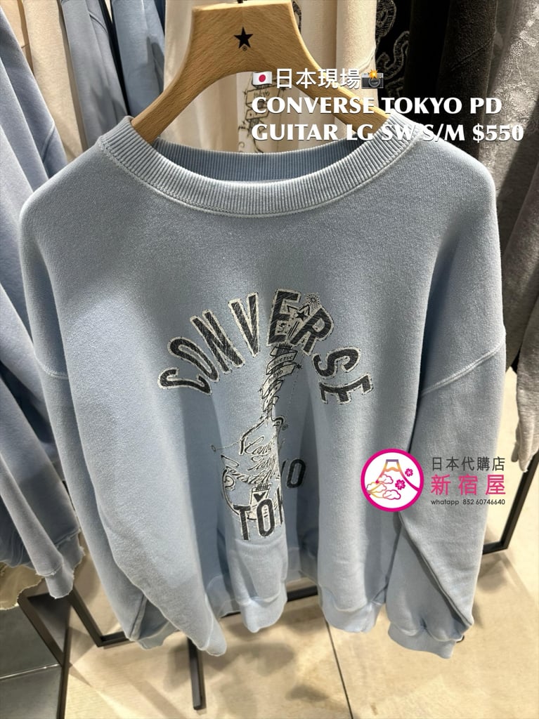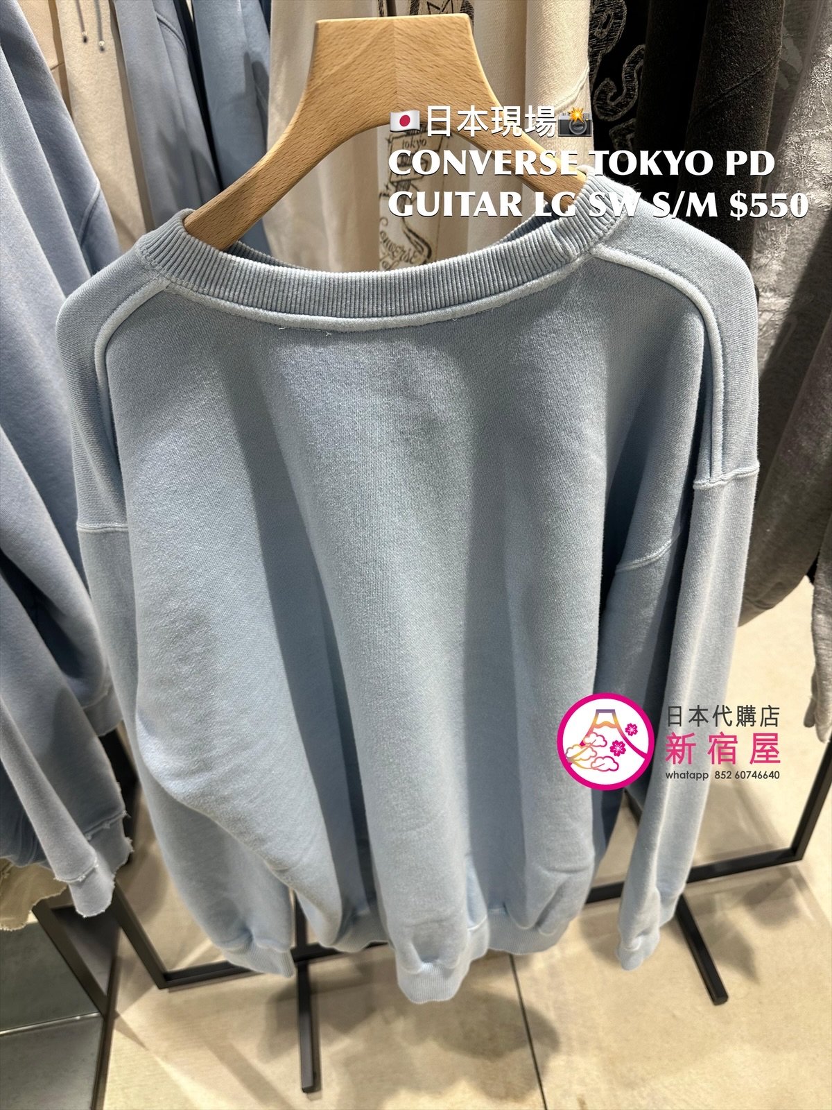 CONVERSE TOKYO PIGMENT DYE GUITAR LOGO SWEAT SIZE S/M,BLACK/ WHITE/ SAX BLUE,$550 👚參考尺寸 SIZE S: 身幅 58 著丈 57cm SIZE M: 身幅 61.5 著丈 65cm